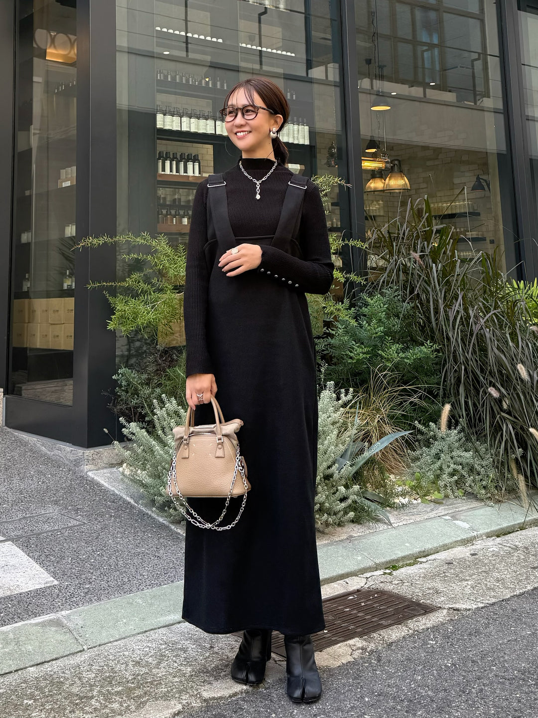 【予約】[SET] ウールライクVネックジャンパースカート / ブラック + 袖ボタンハイネックニット / ブラック(12月上旬発送予定)