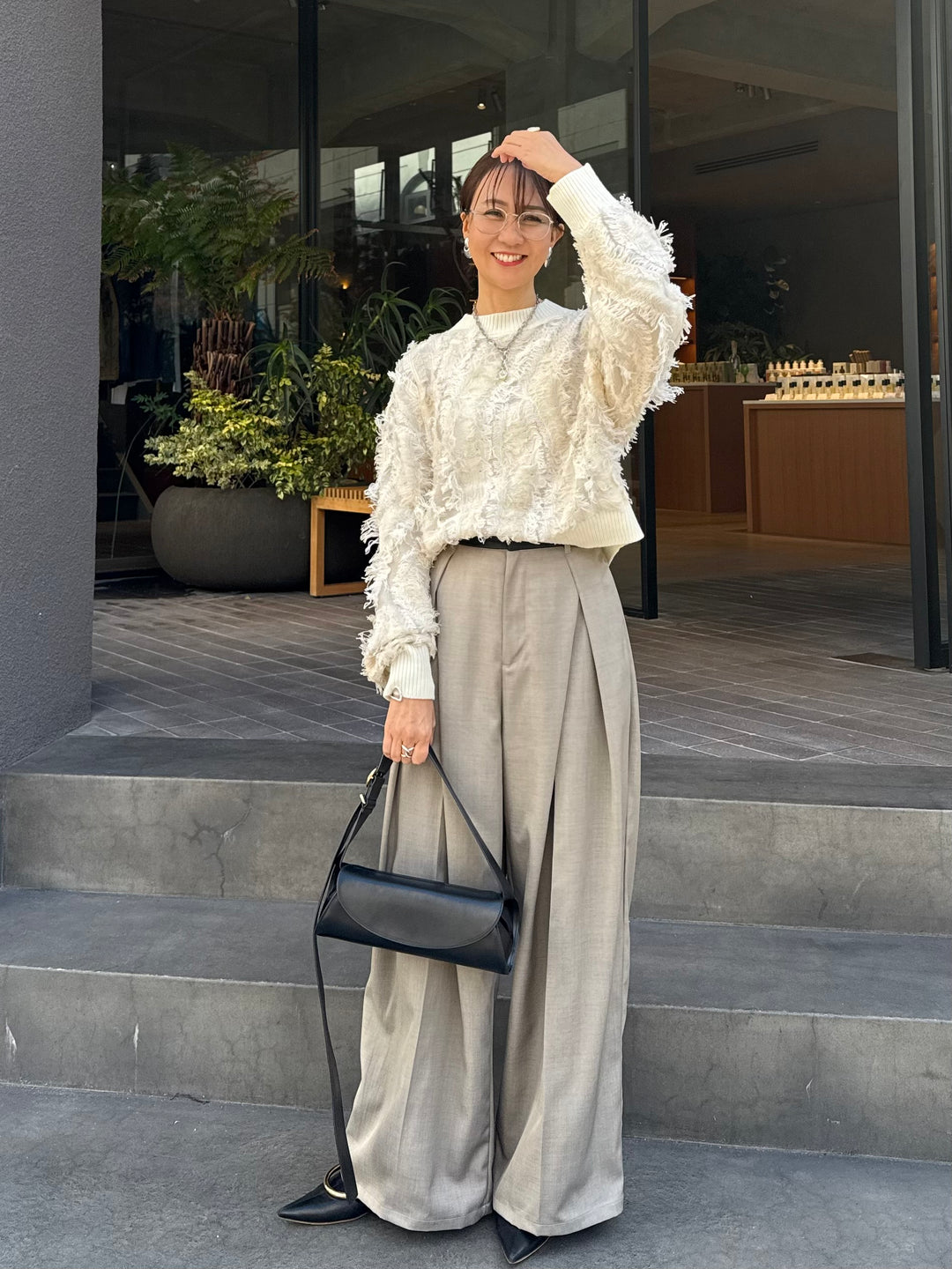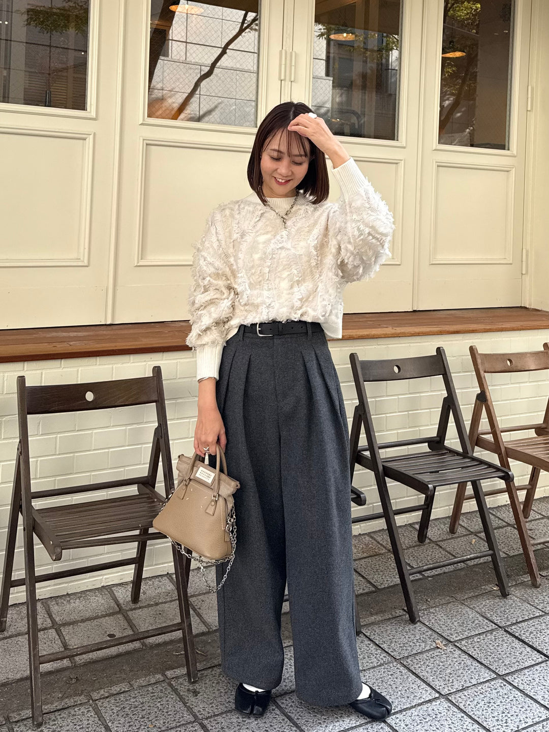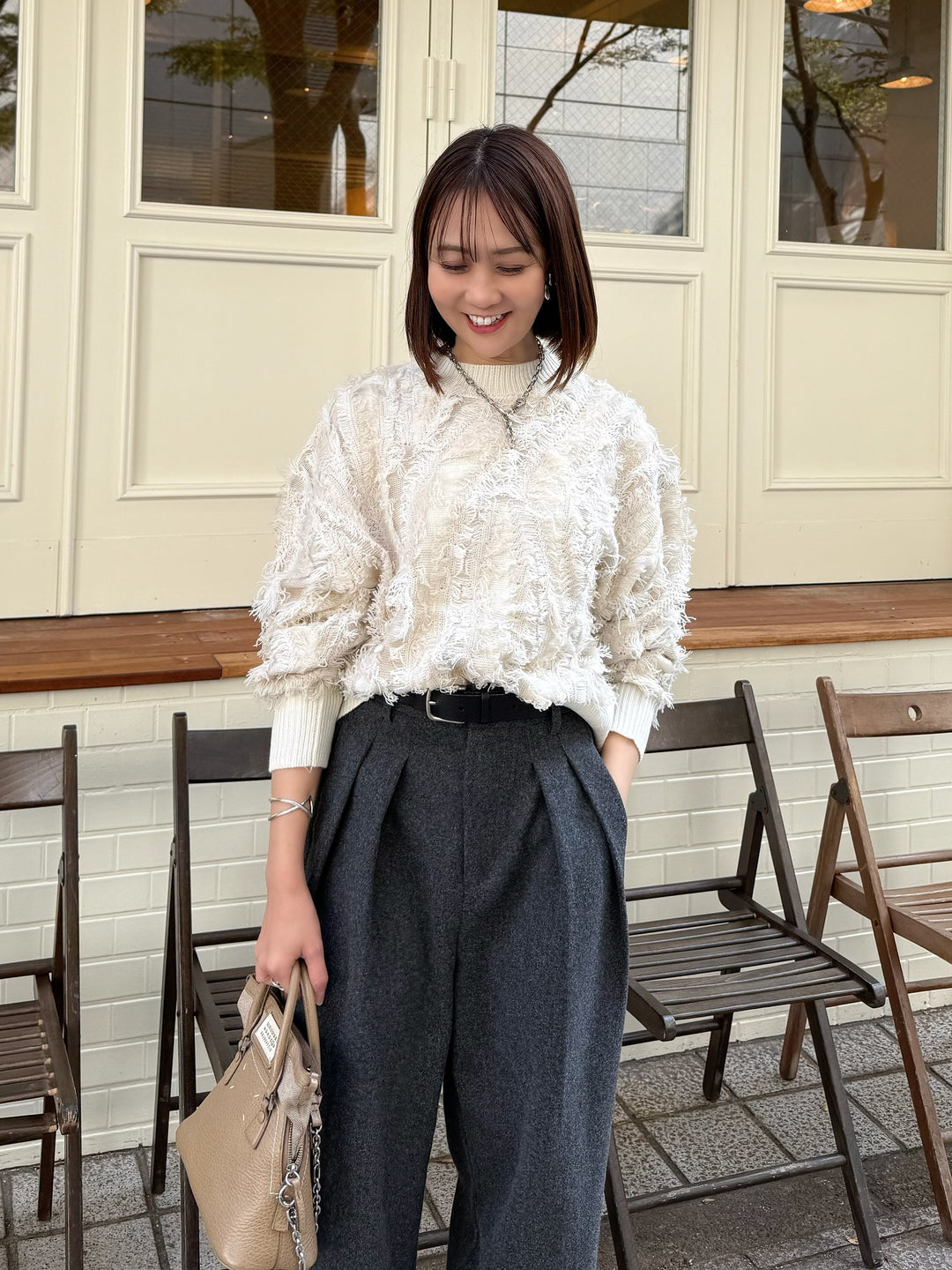 【予約】 [SET] フリンジニットプルオーパー / アイボリー + ウールライクタックワイドパンツ / チャコール(11月下旬発送予定)