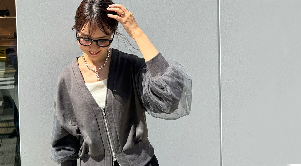 【予約】袖チュールカーディガン / ブラック (11月下旬発送予定)
