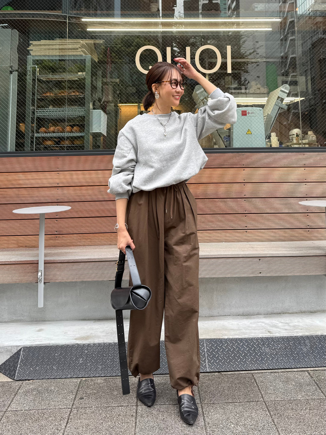 [SET] 裏起毛バルーンプルオーバー / グレー + タックイージーパンツ / ブラウン
