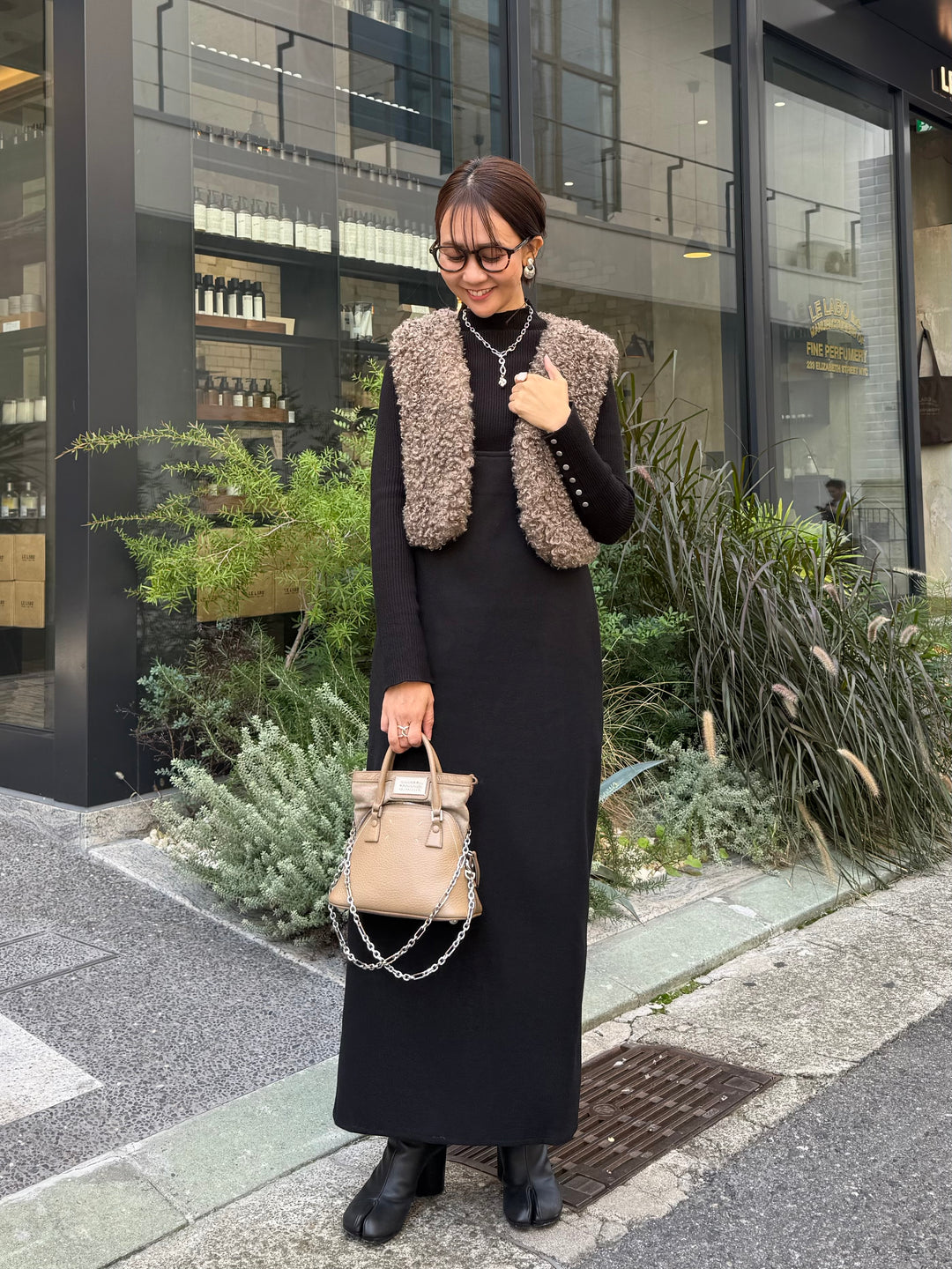 【予約】[3点SET] ウールライクVネックジャンパースカート / ブラック + プードルジレ / ブラウン + 袖ボタンハイネックニット / ブラック(12月上旬発送予定)