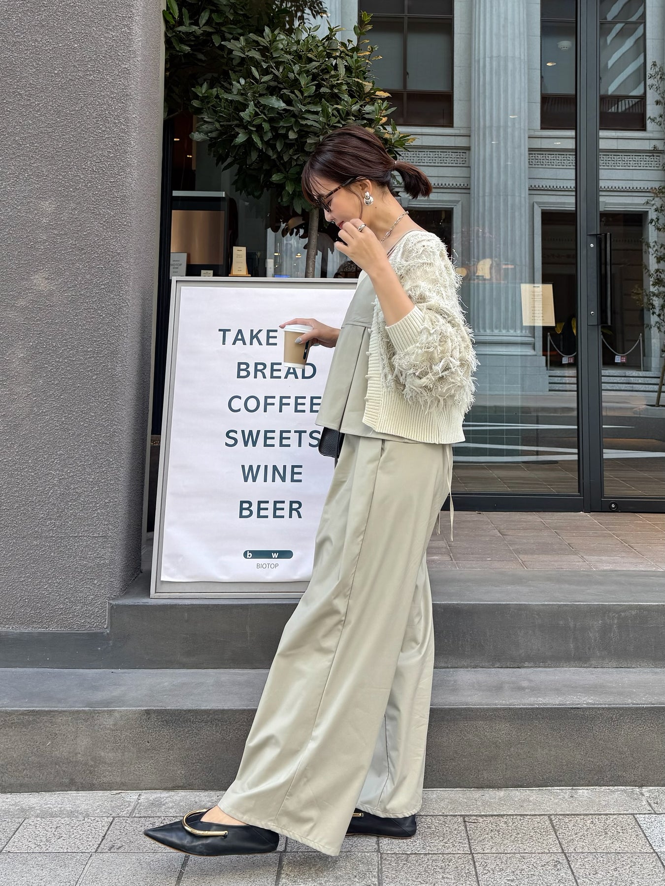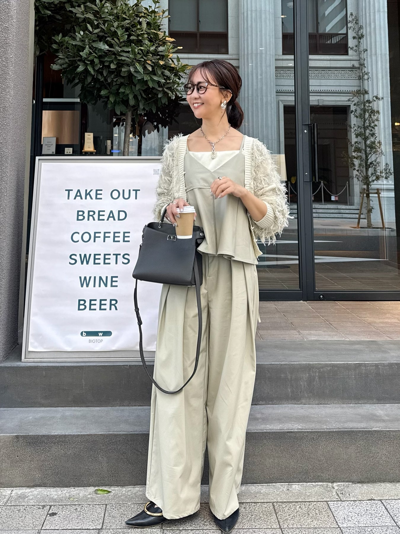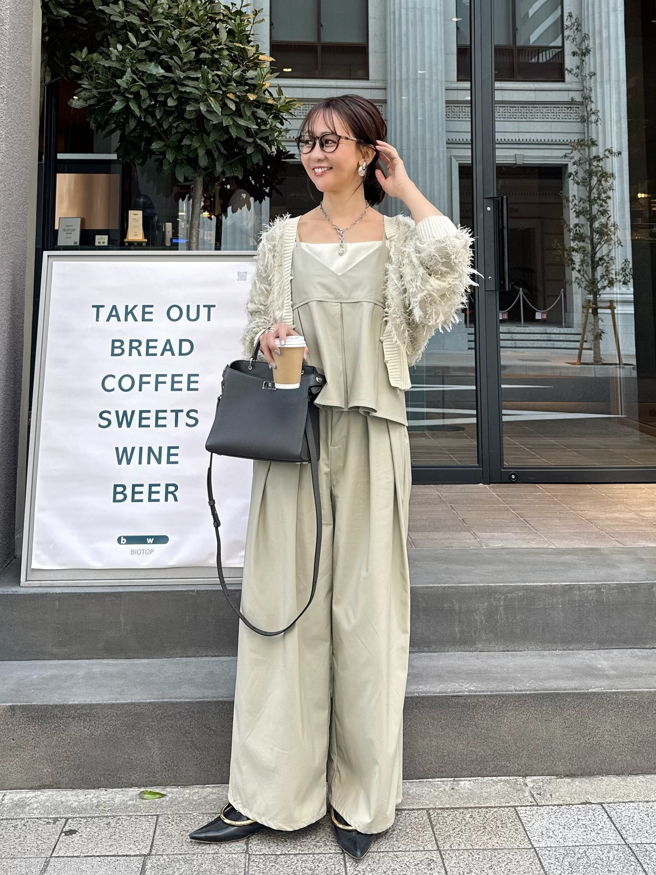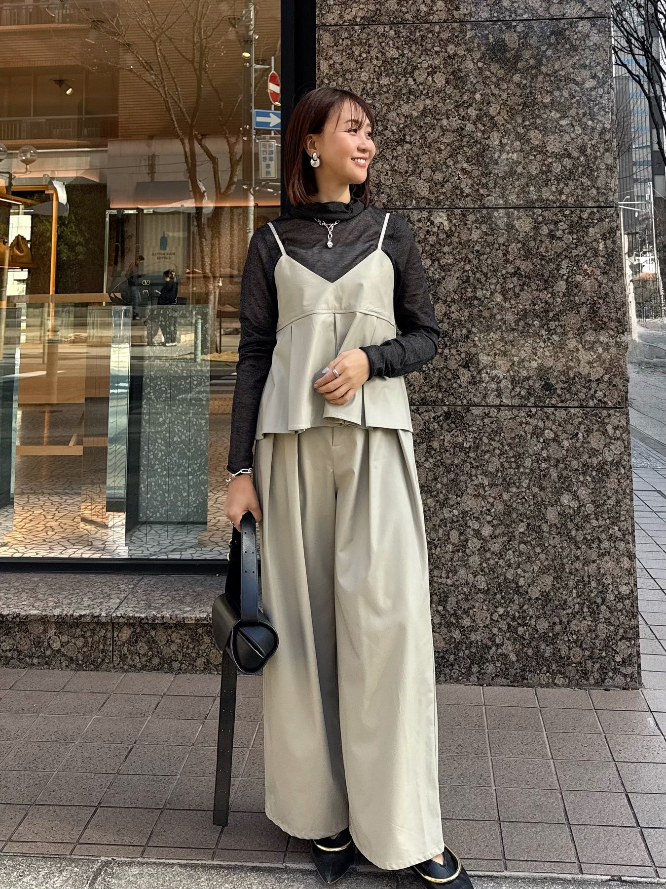 同素材のキャミソールとのセットアップスタイルもおすすめです