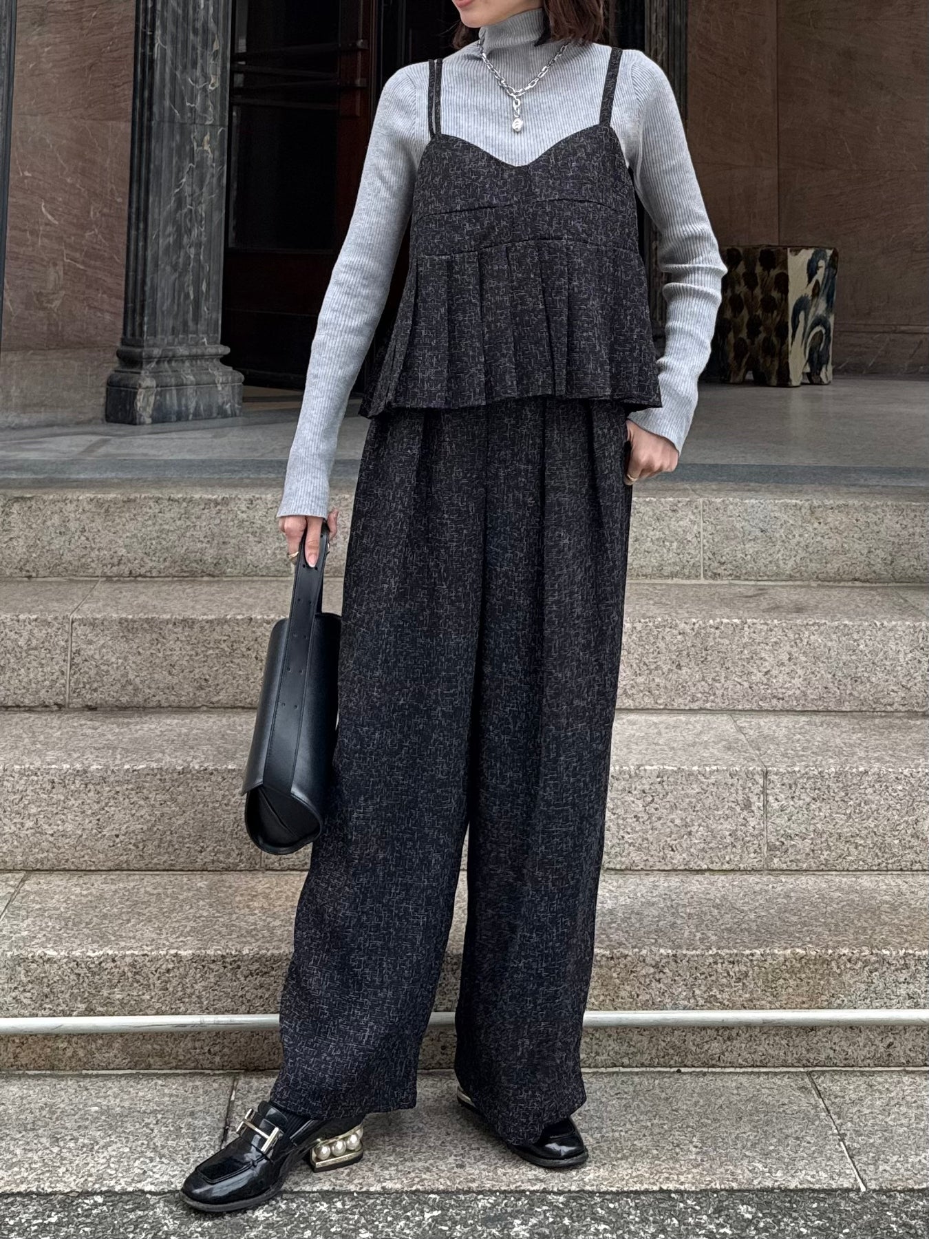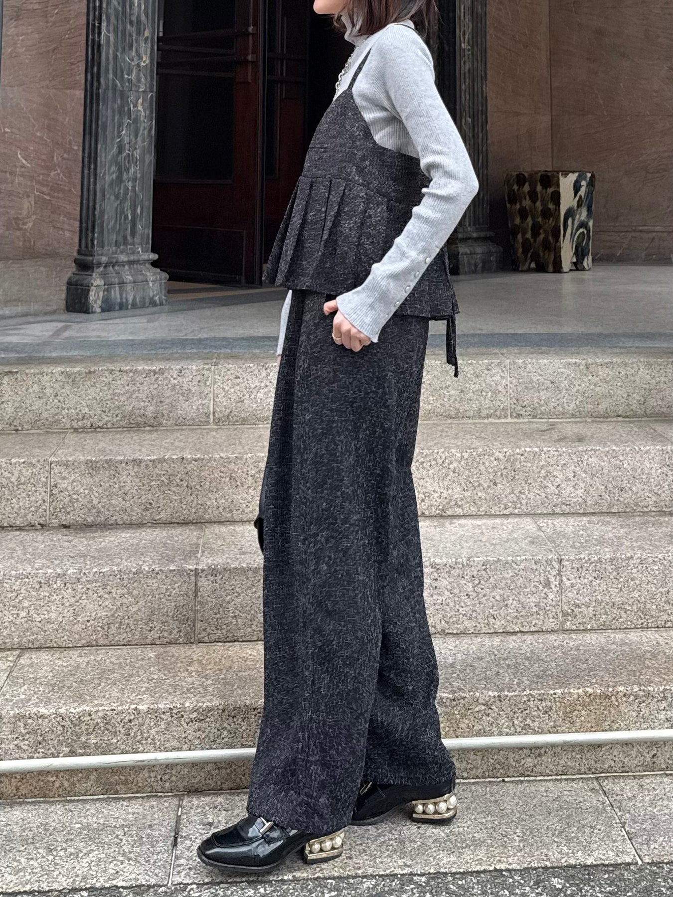 【予約】サマーツイードタックパンツ / ブラック(2月中旬頃発送予定)