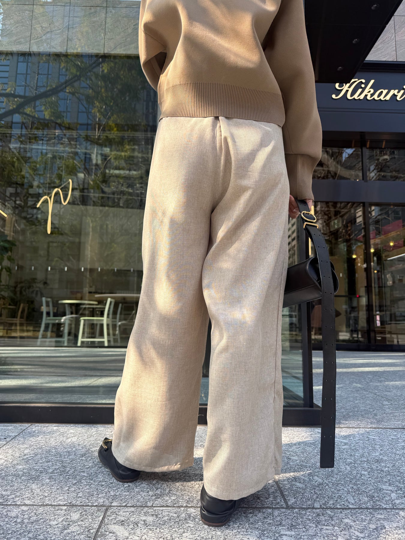 リネンライクなさらりとした素材感が心地よい、ストレートワイドパンツ。