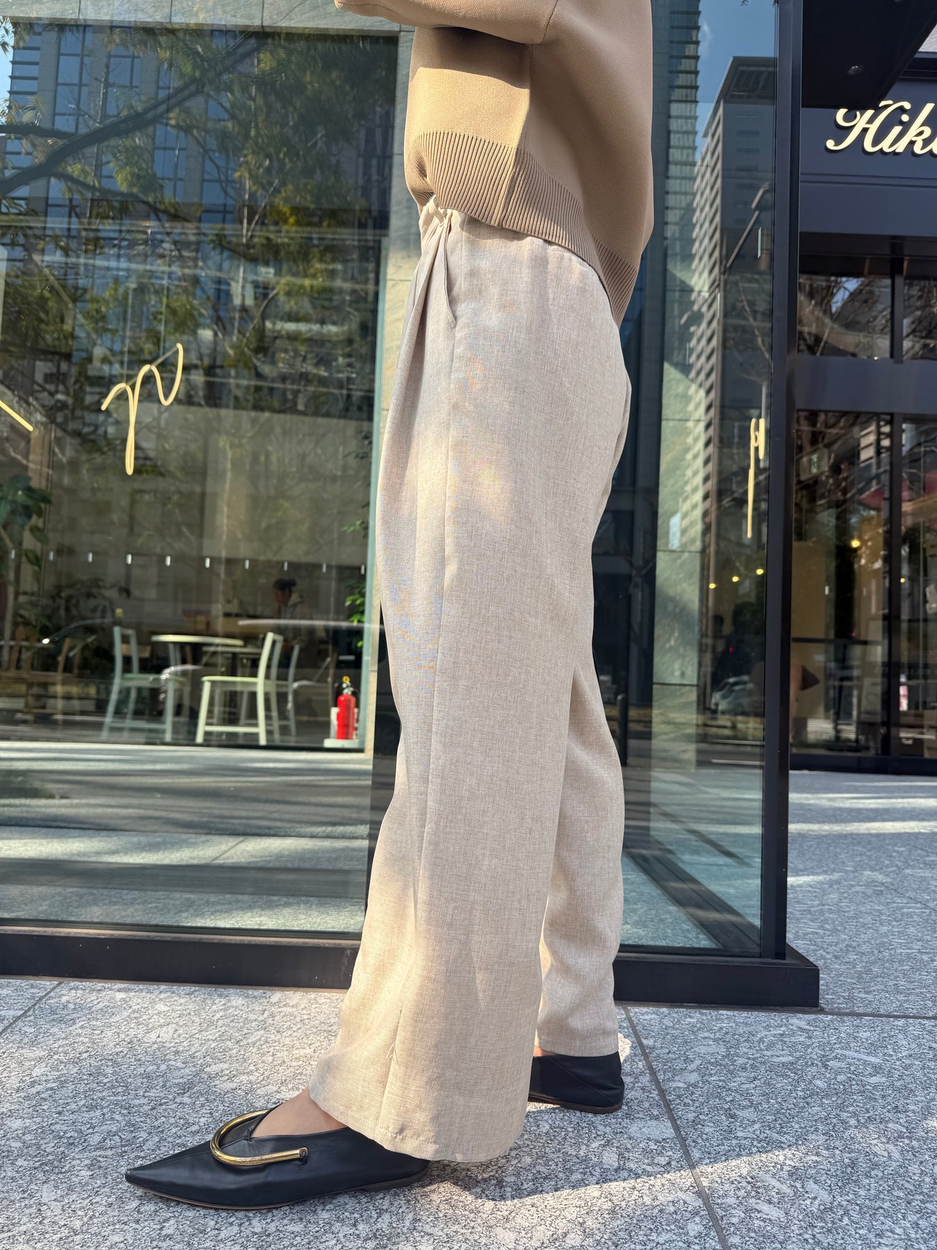 ストンと落ちるシルエットはボディラインを拾いにくく、リラックス感のある穿き心地ながら、美脚効果も期待できる一本です。