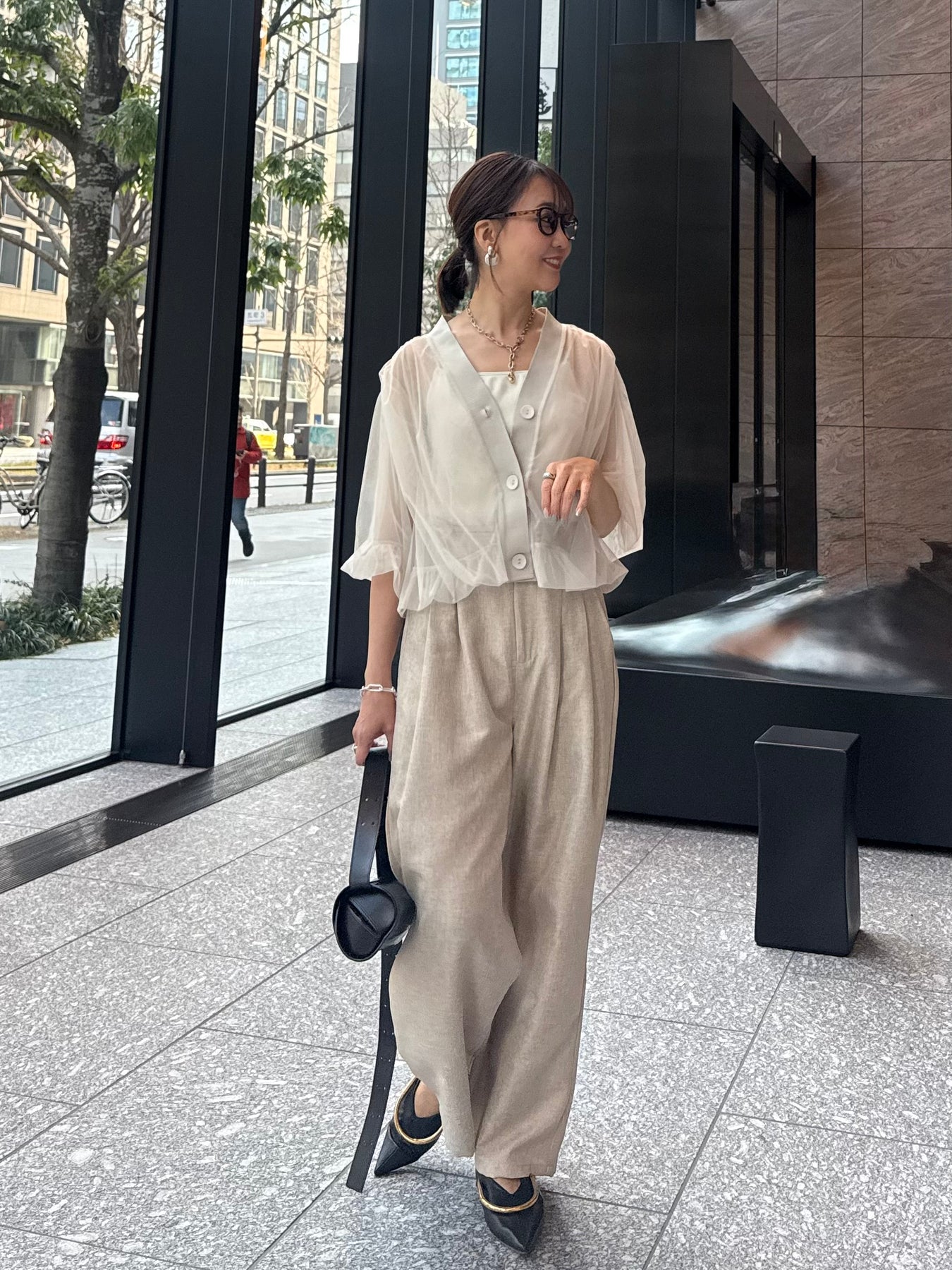 きれいめにもカジュアルにも合わせやすく、デイリーに活躍するアイテムです。