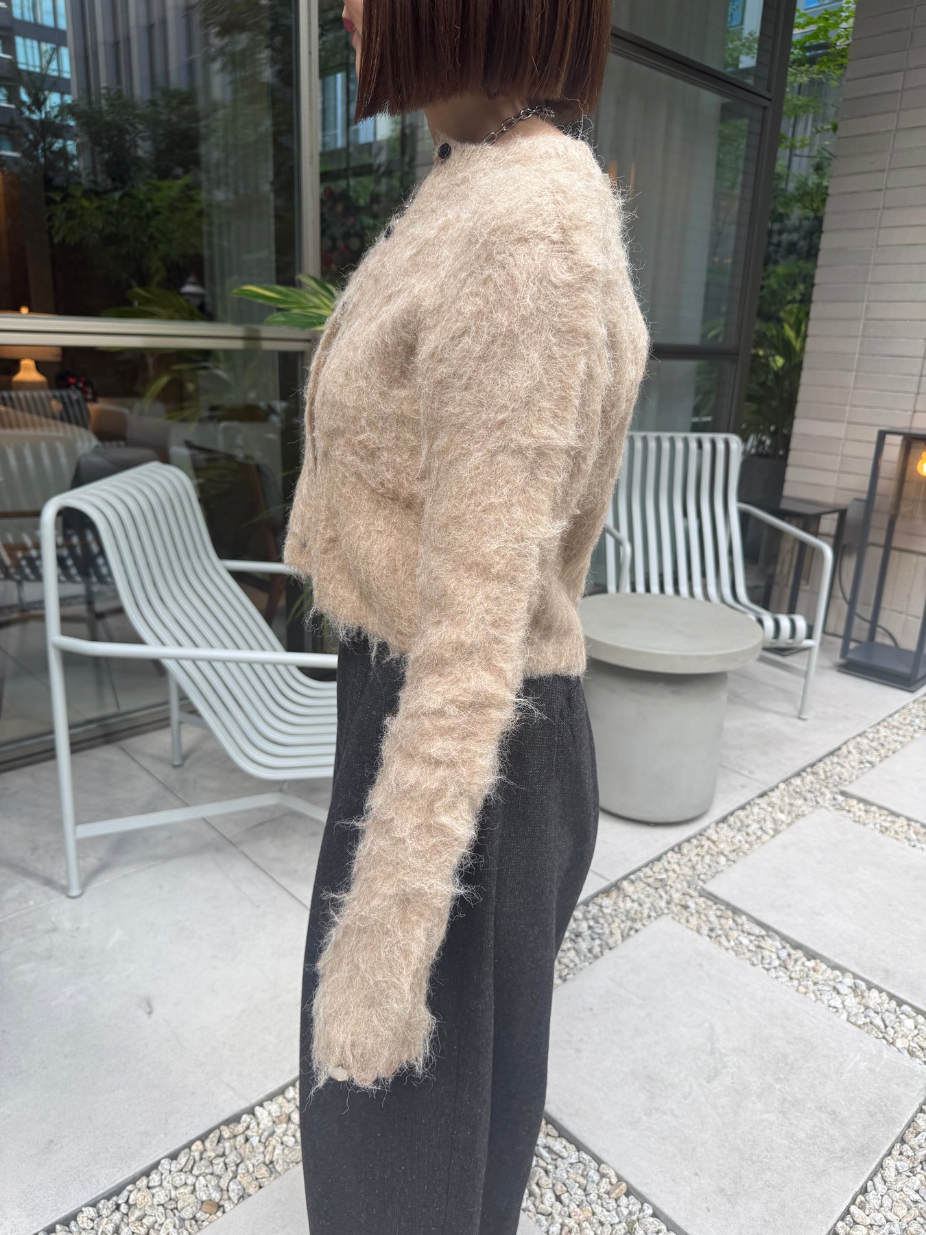 モヘアタッチクロップドカーディガン / ベージュ