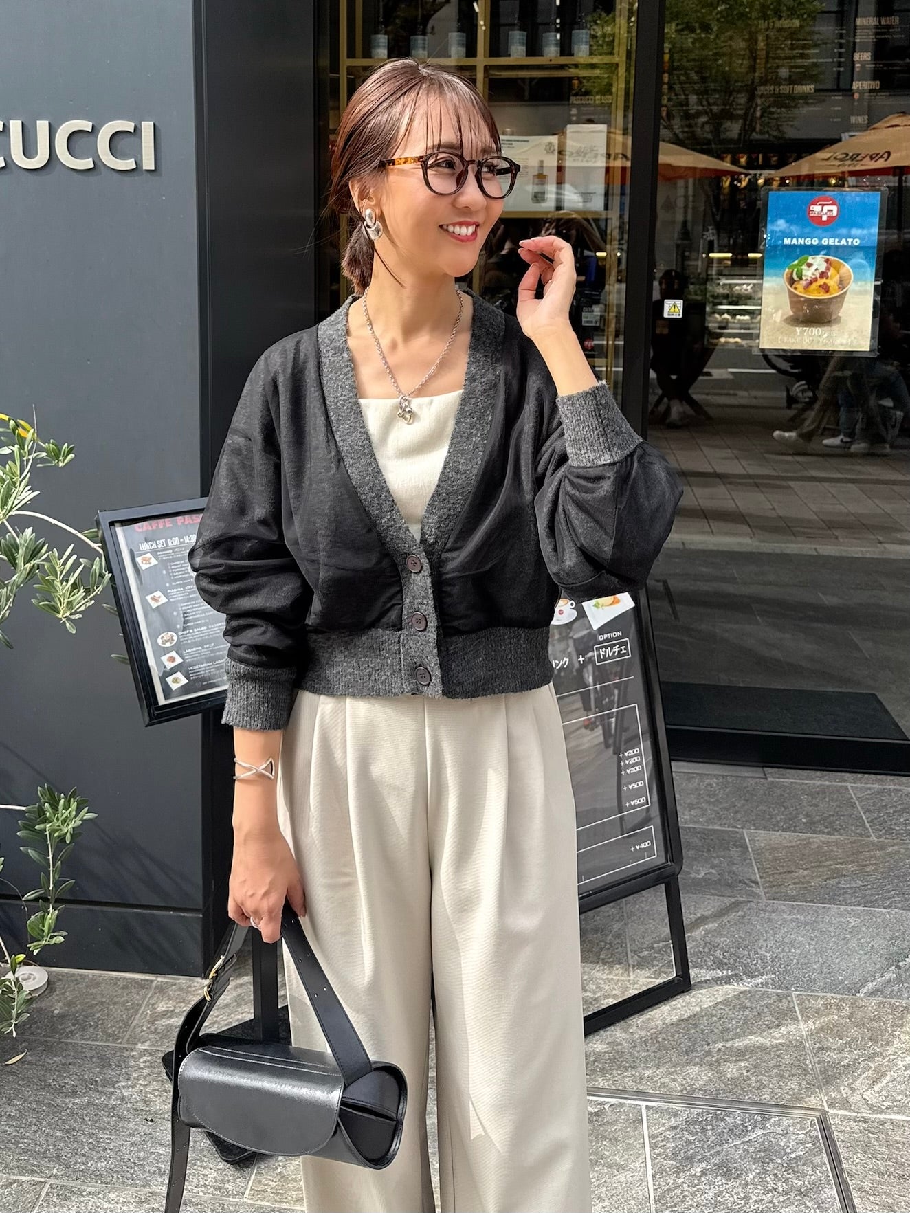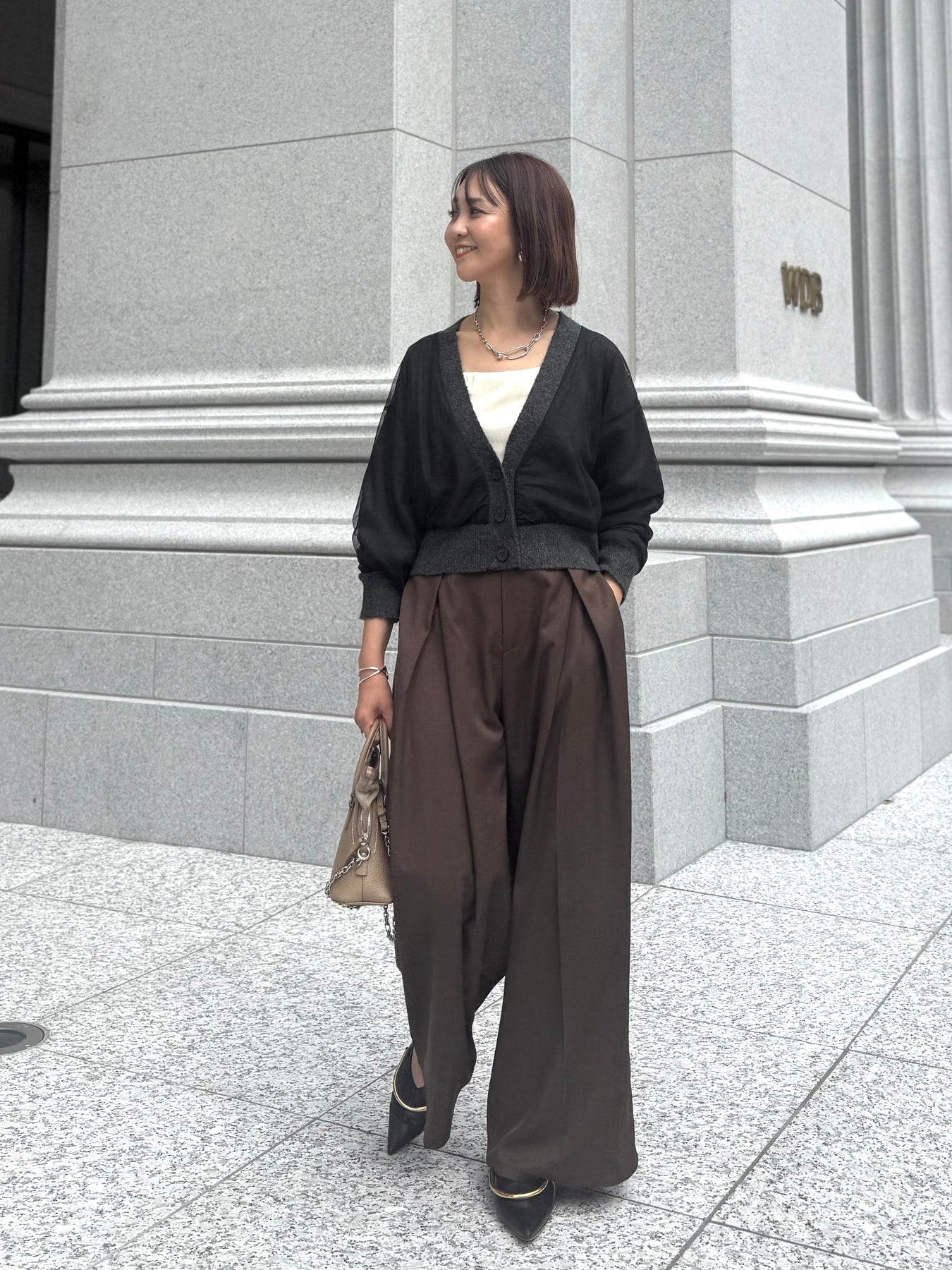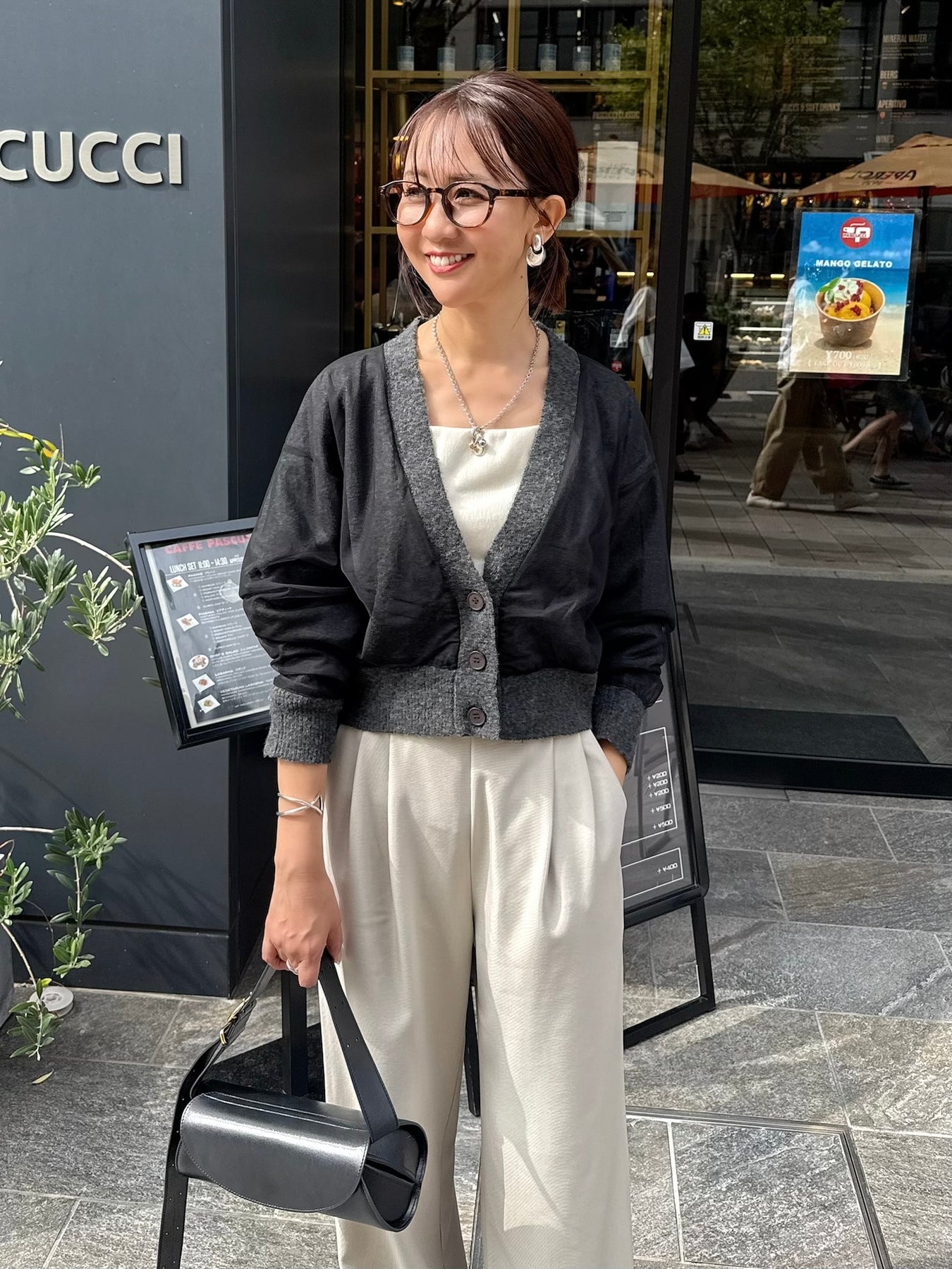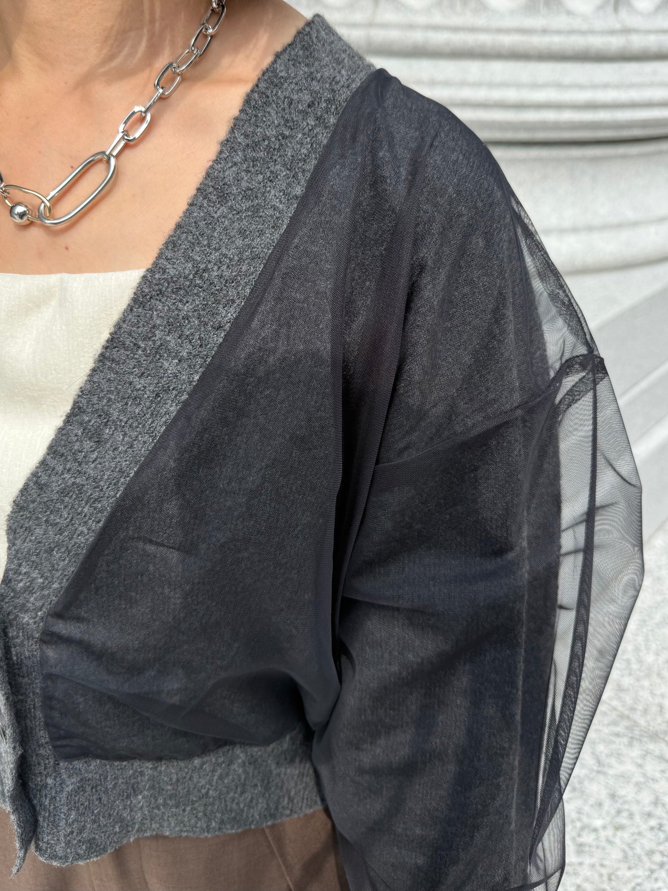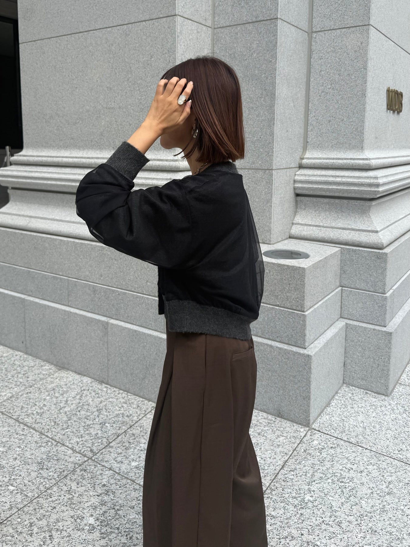 身頃全体にチュールと暖かみのあるニットをレイヤードしたデザインが、女性らしいカーディガン。クロップド丈なので、脚長効果もあり、ボトムとのバランスも取りやすい1枚。深めのVネックが顔周りをすっきりとみせてくれます。
