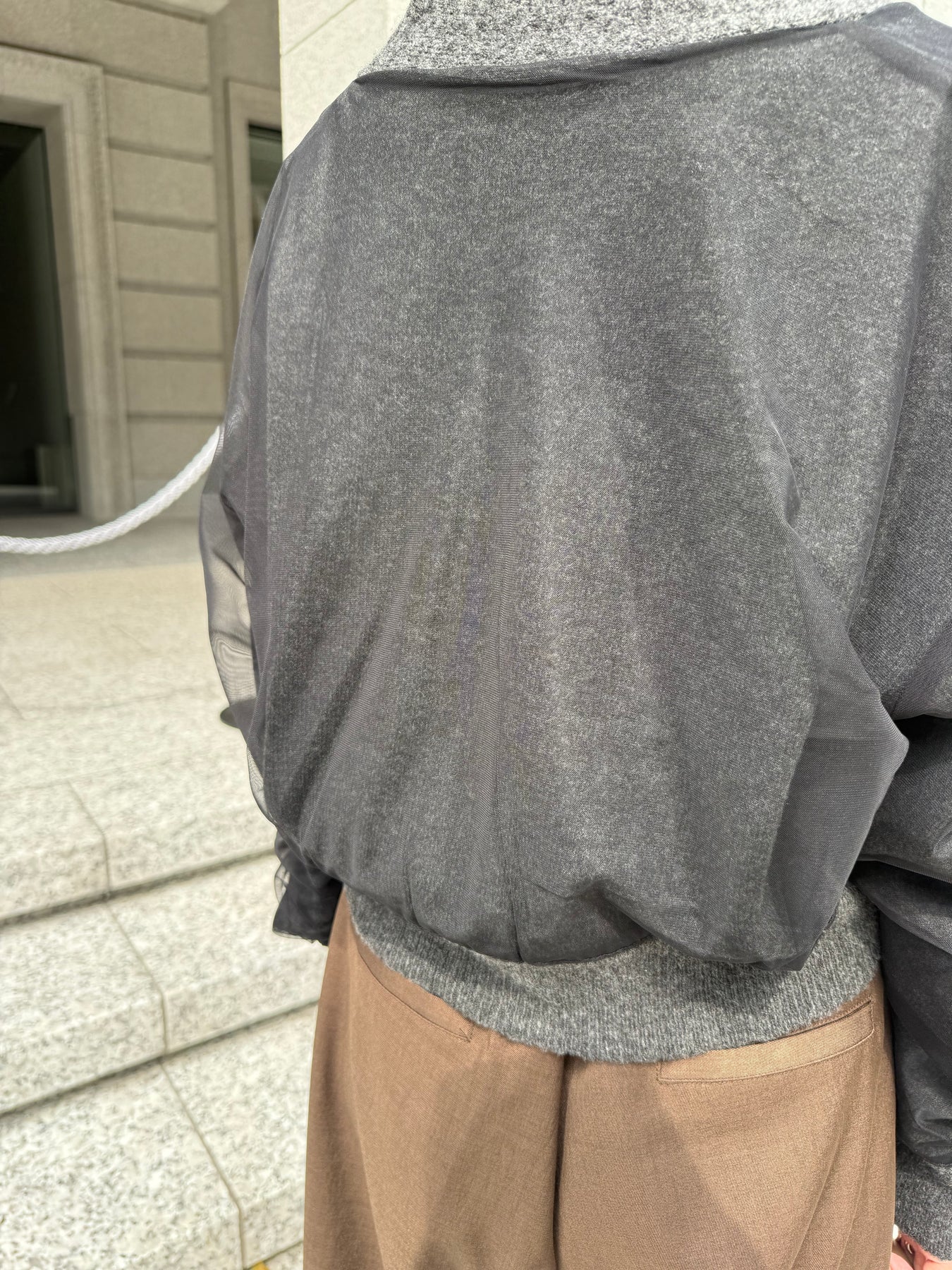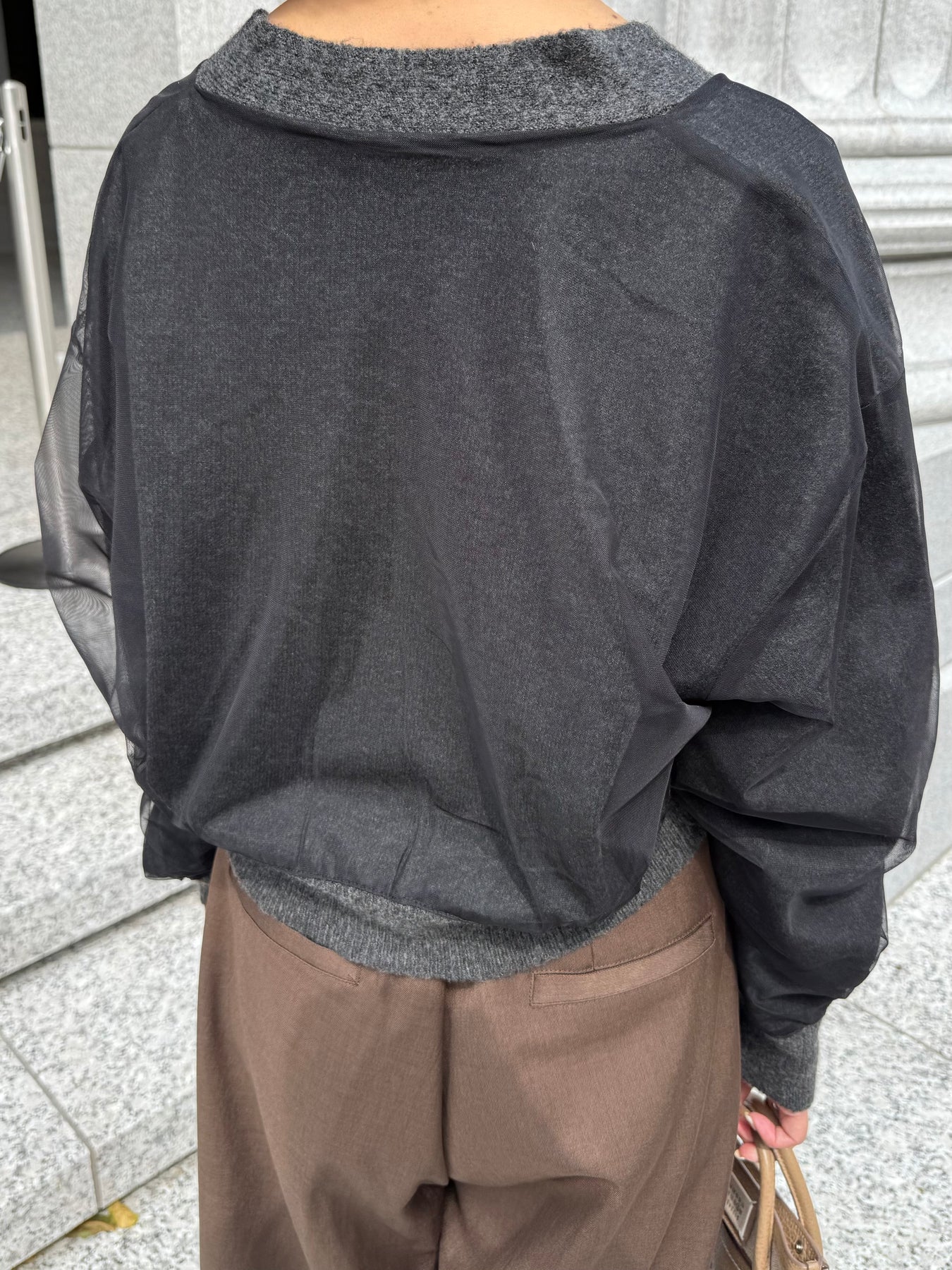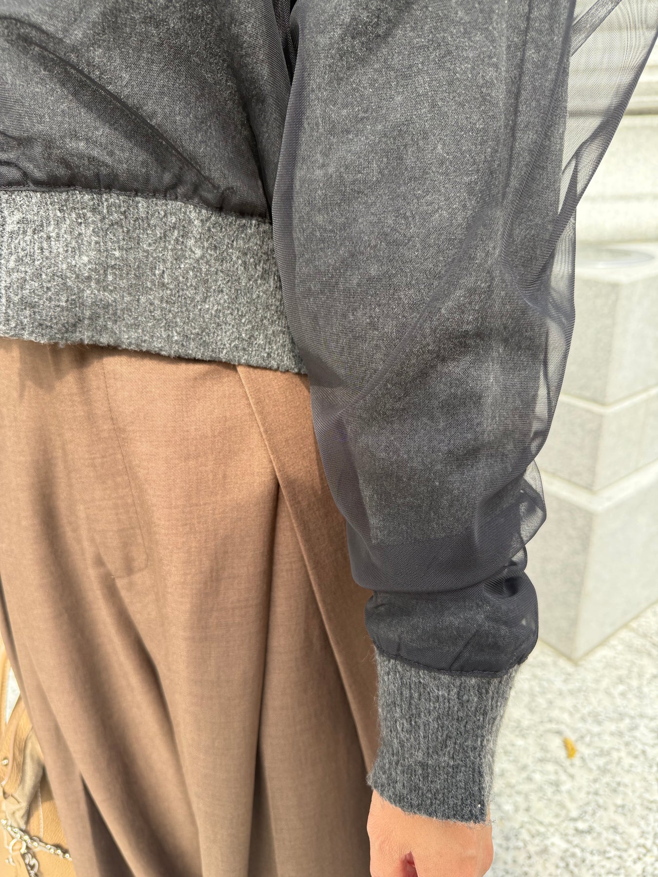 素材 : 暖かみのあるニットとチュールのドッキング素材
