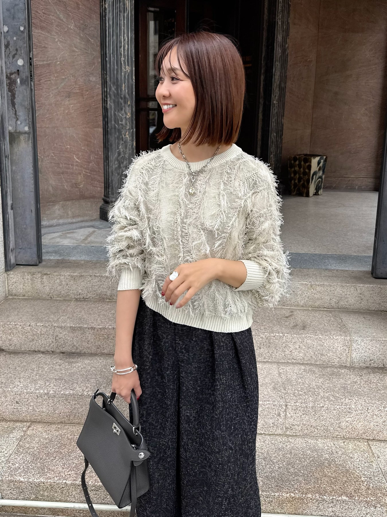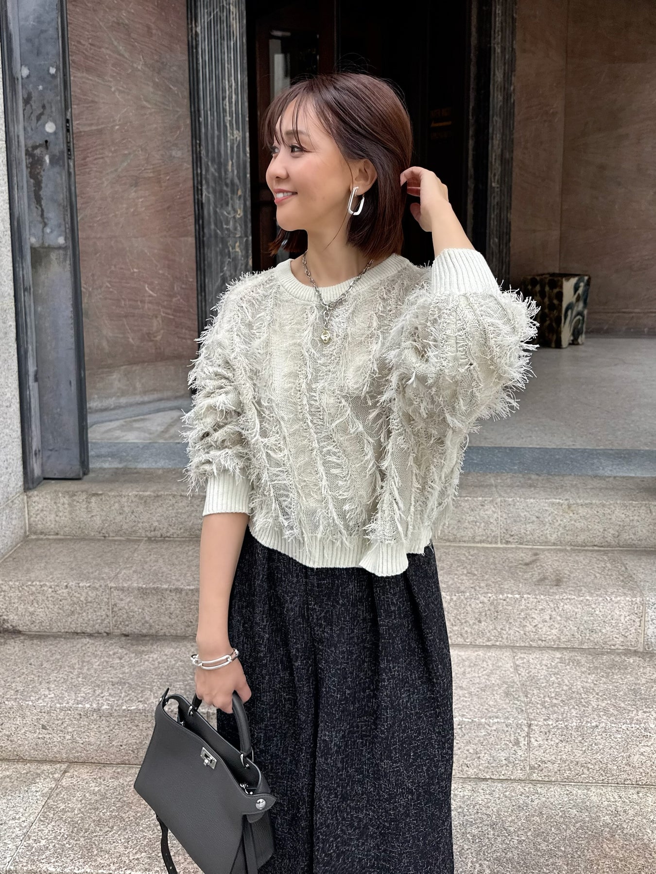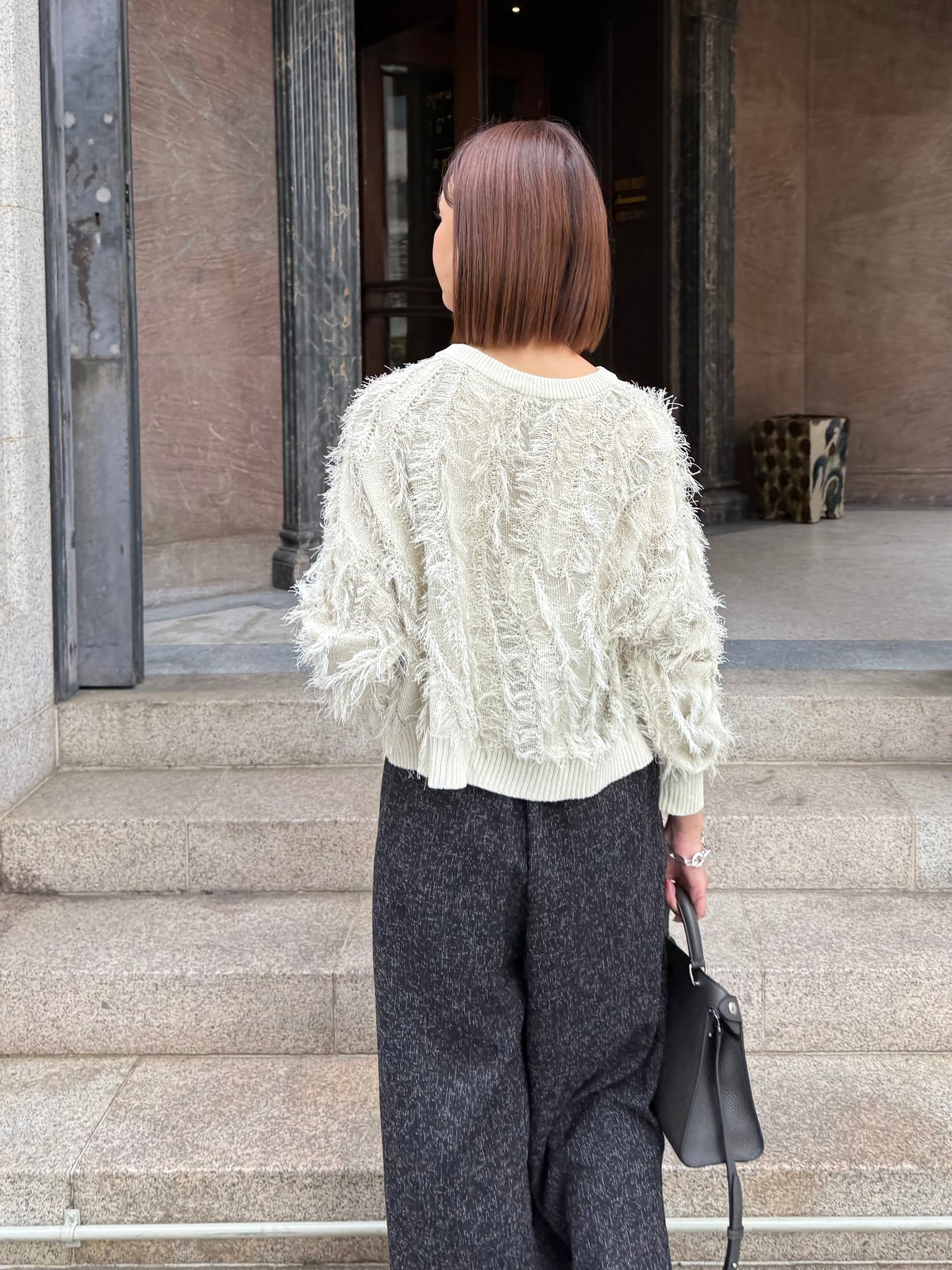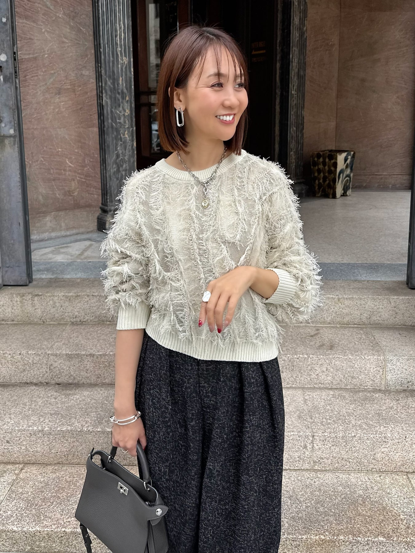 素材 : 麻タッチのフリンジニット素材