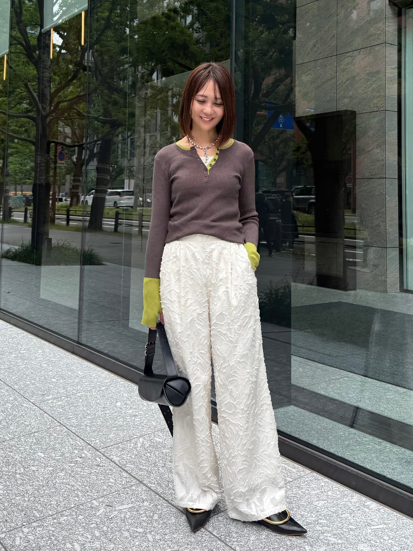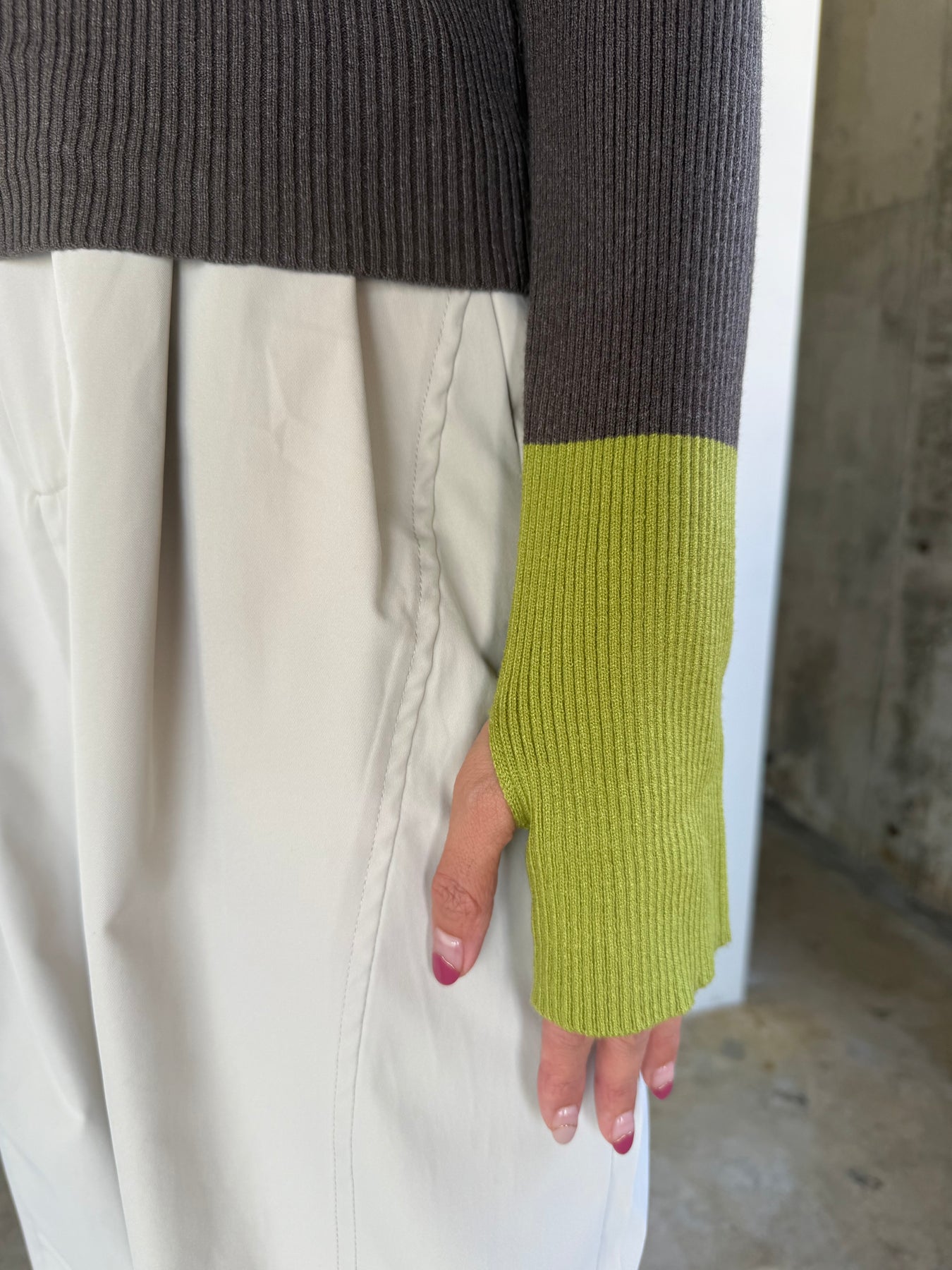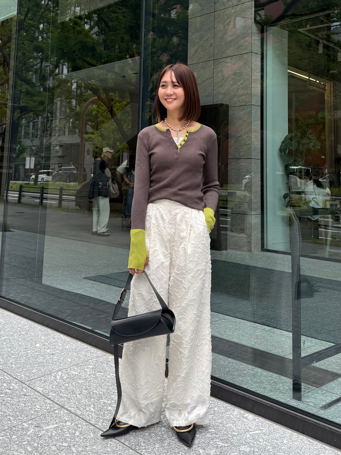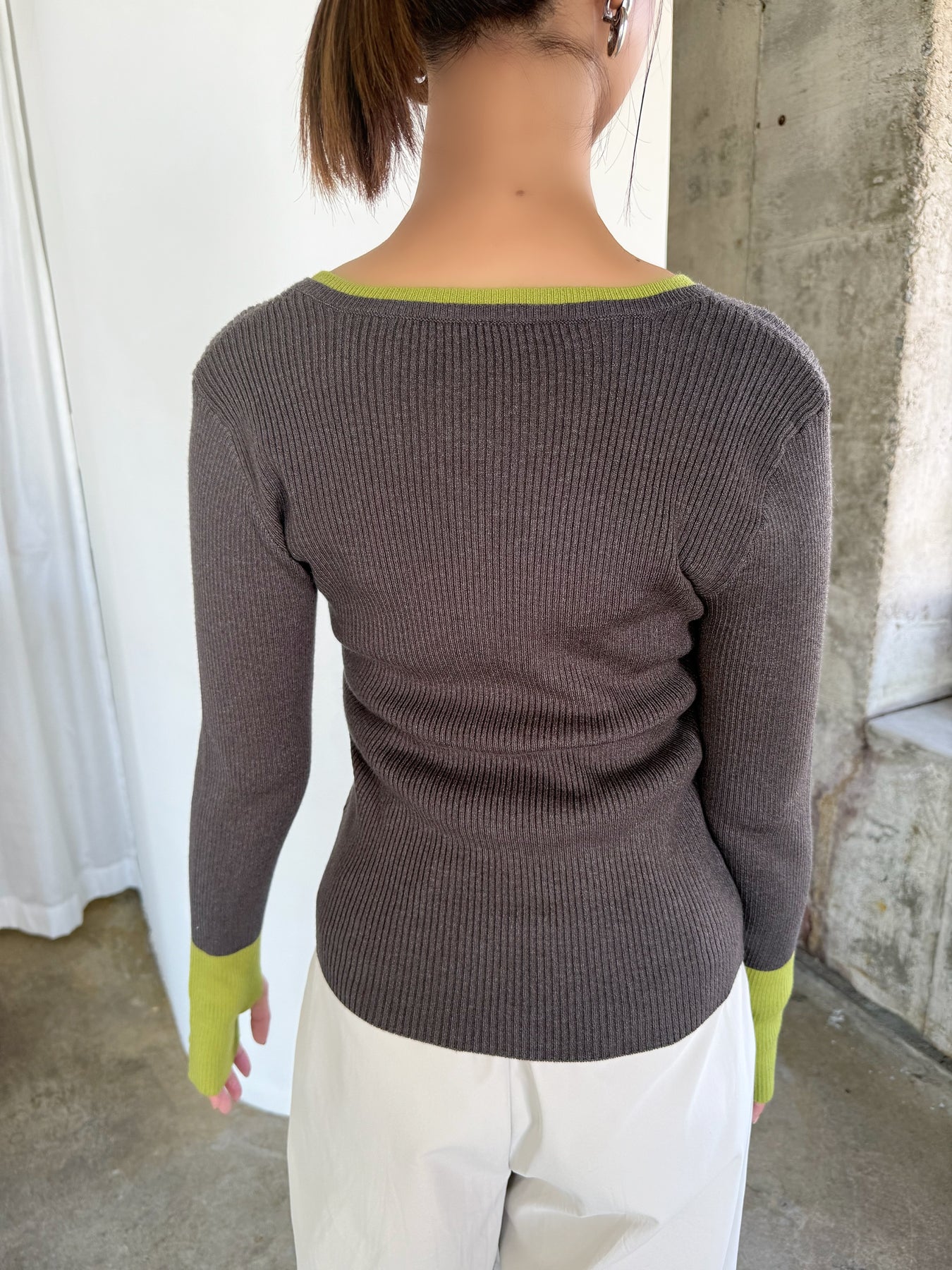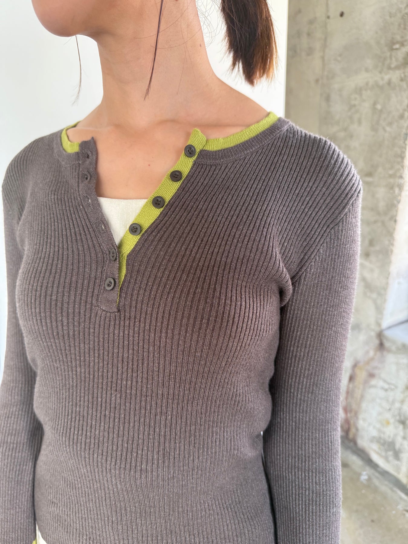 首周りと袖の配色デザインがトレンド感のあるリブニット。程よく体にフィットするサイズ感は華奢見えを叶えてくれます。ヘンリーネックのデザインは顔周りをすっきりとみせてくれます。1枚着はもちろん、インナーとしても大活躍してくれる1枚。素材は、伸縮性があるのでストレスフリーに着用可能。袖口のフィンガーホールの仕様となります。