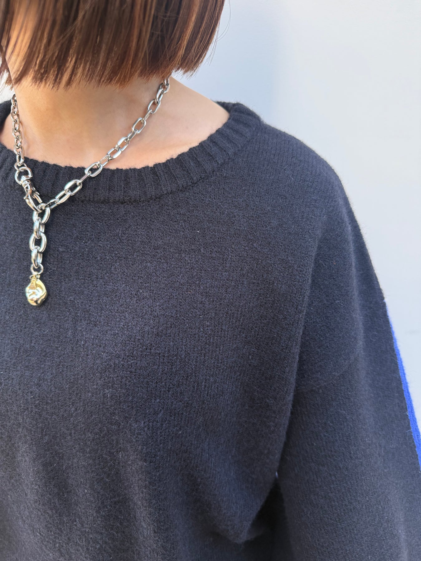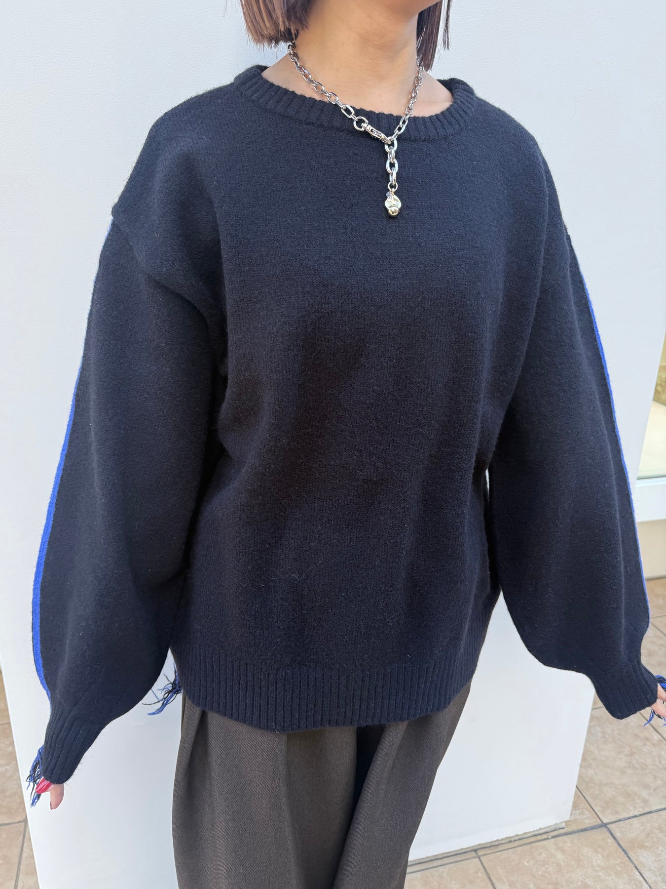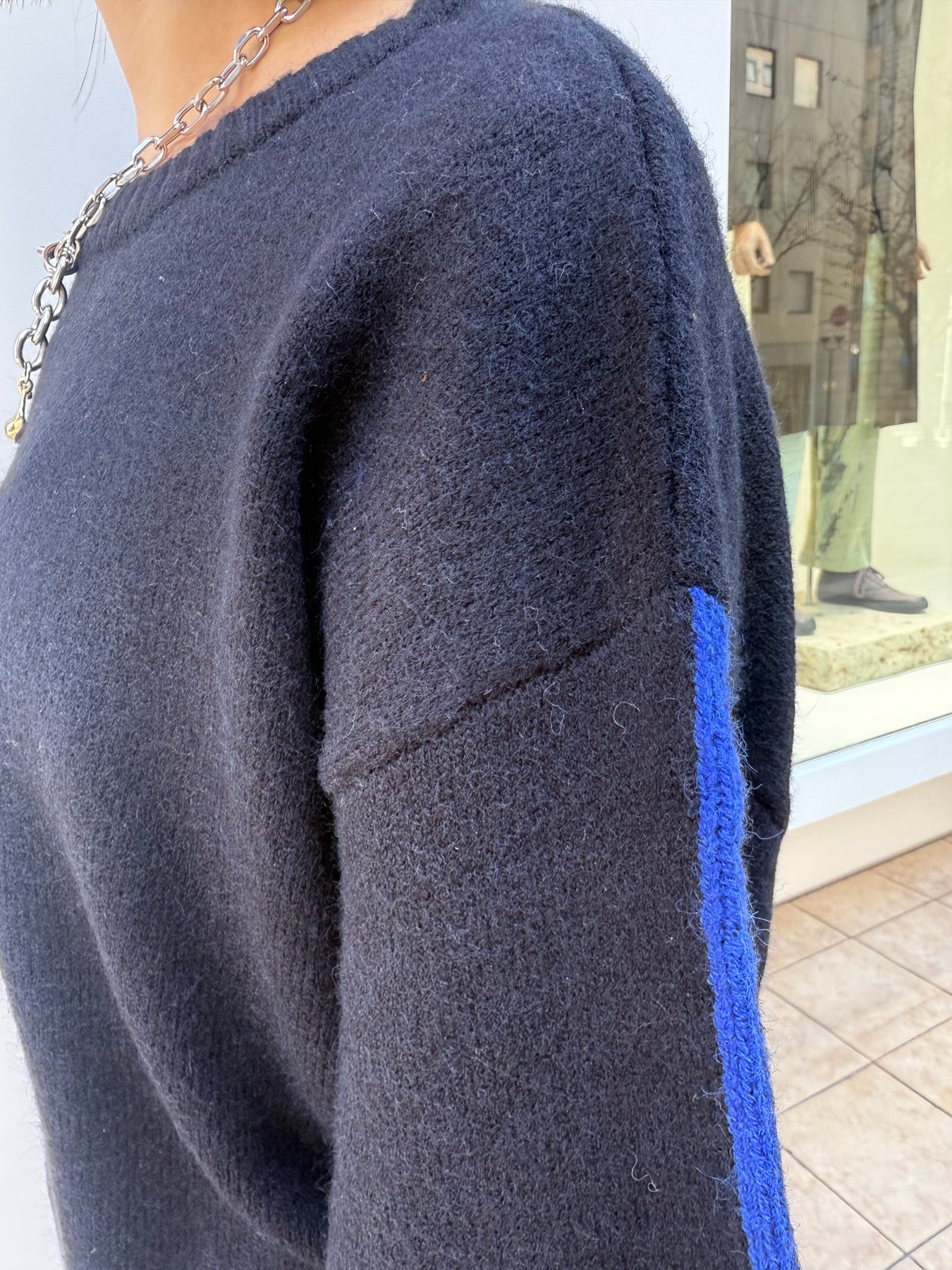 アルパカタッチ配色ラインプルオーバー / ブラック