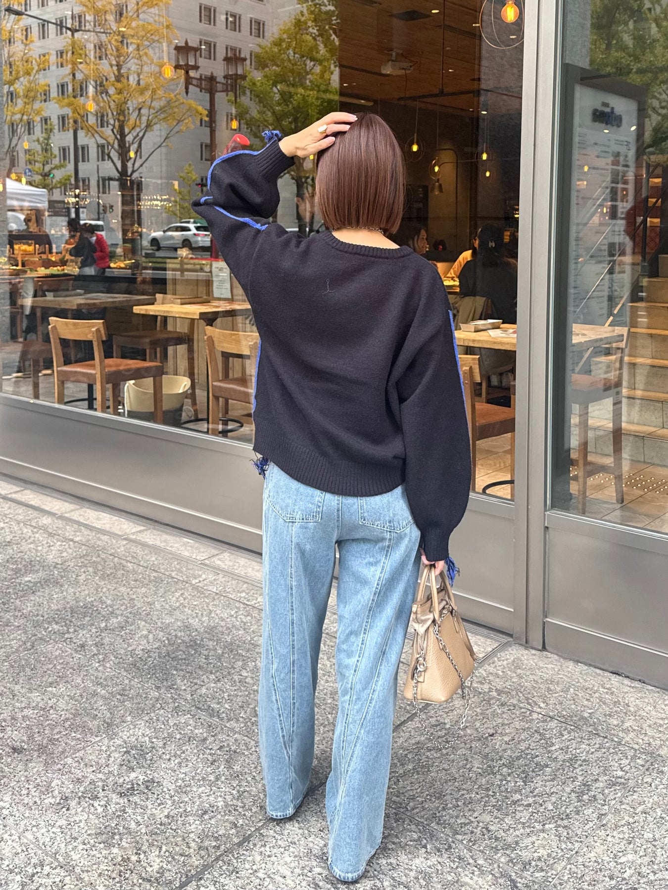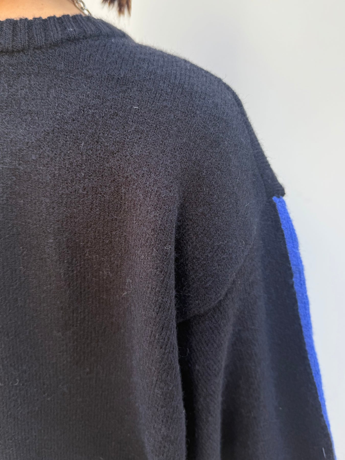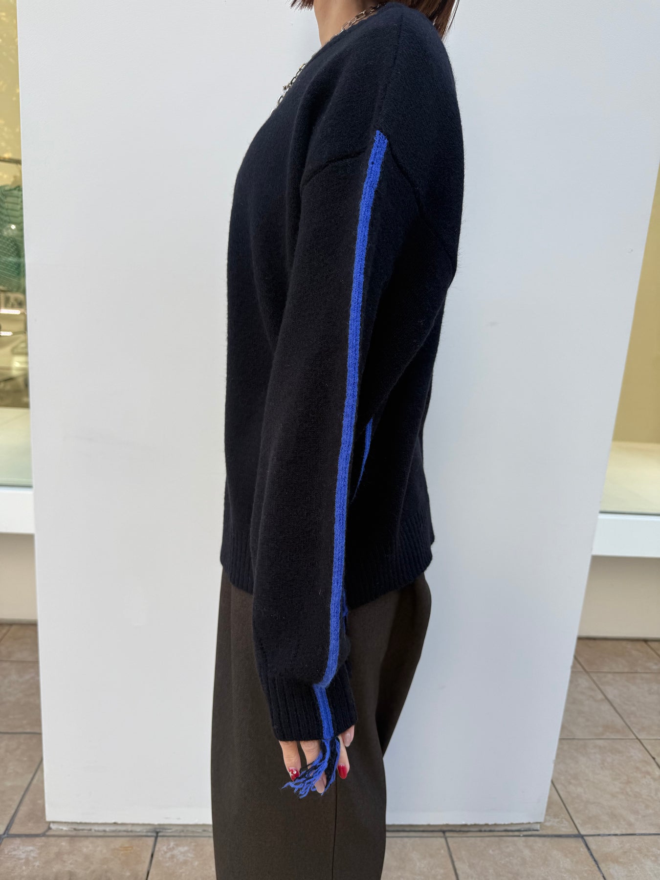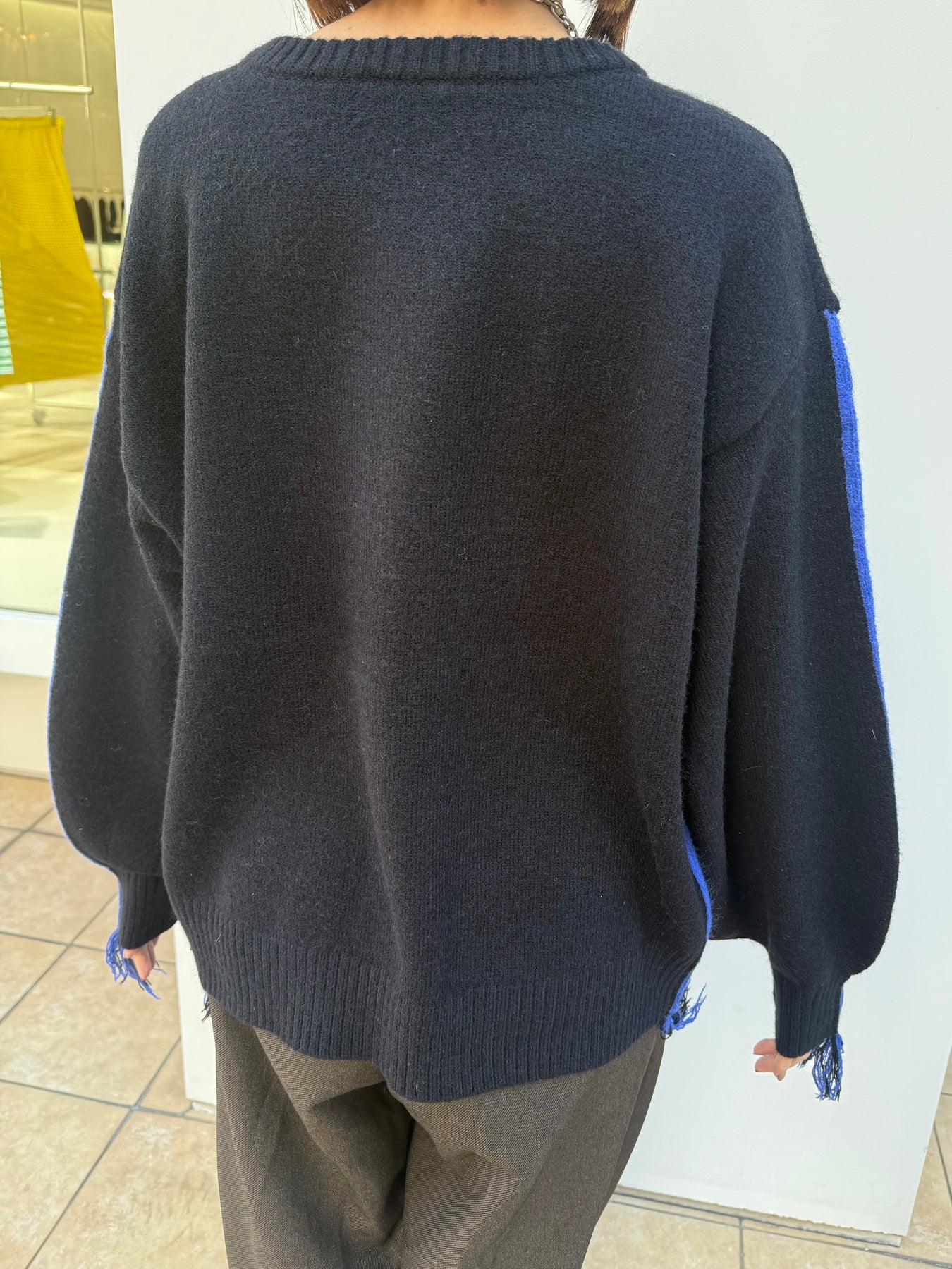 アルパカタッチ配色ラインプルオーバー / ブラック