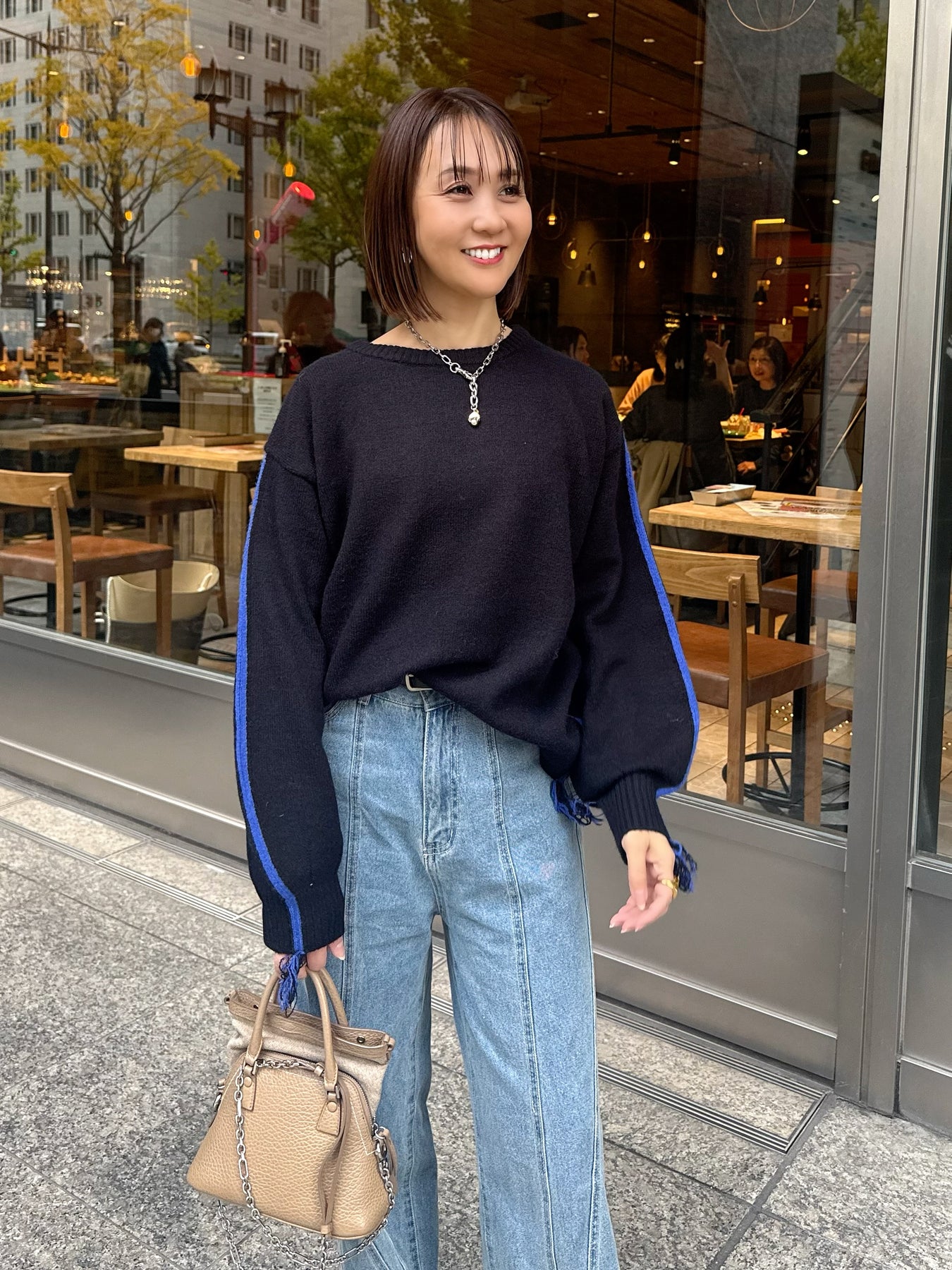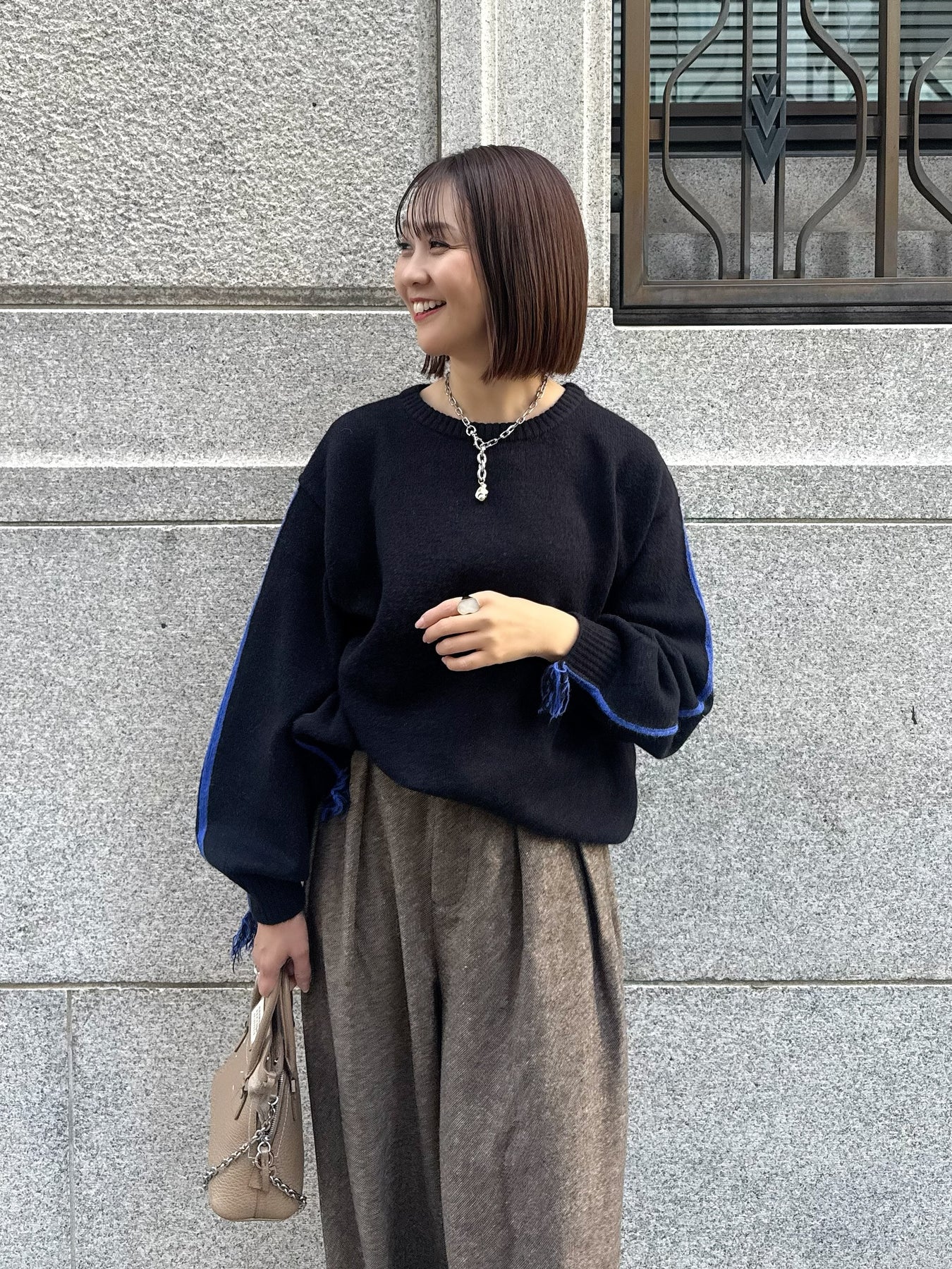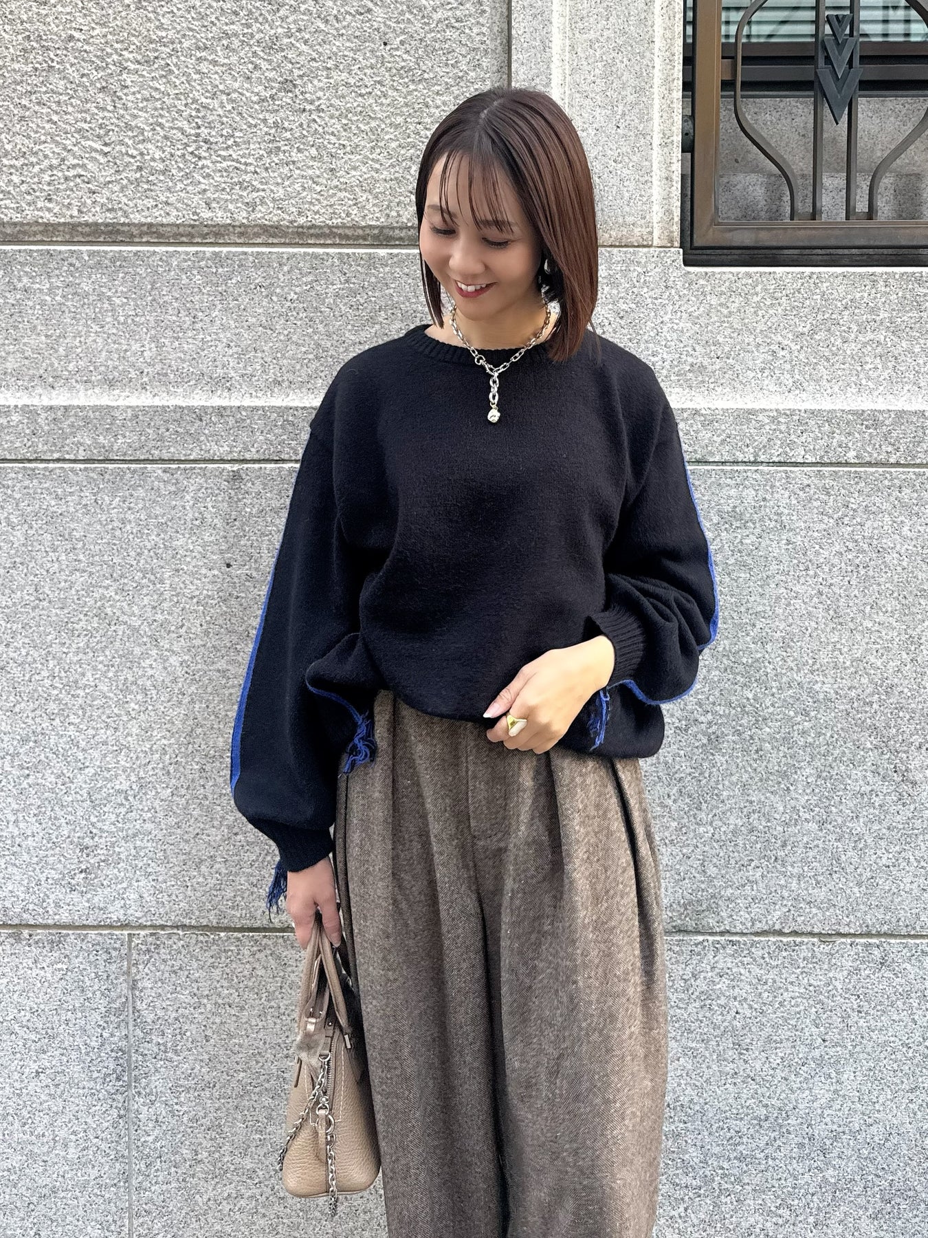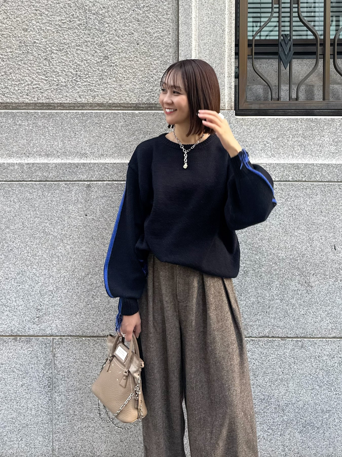 柔らかなアルパカタッチ素材で仕上げた配色ラインが特徴のプルオーバー。両袖に施したラインディテールがアクセントに。程よくゆったりとしたシルエットでリラックス感がありながら、配色のアクセントがスタイリングをぐっと引き締め、大人っぽい印象に。色々なボトムと合わせやすいので大活躍する1枚です。