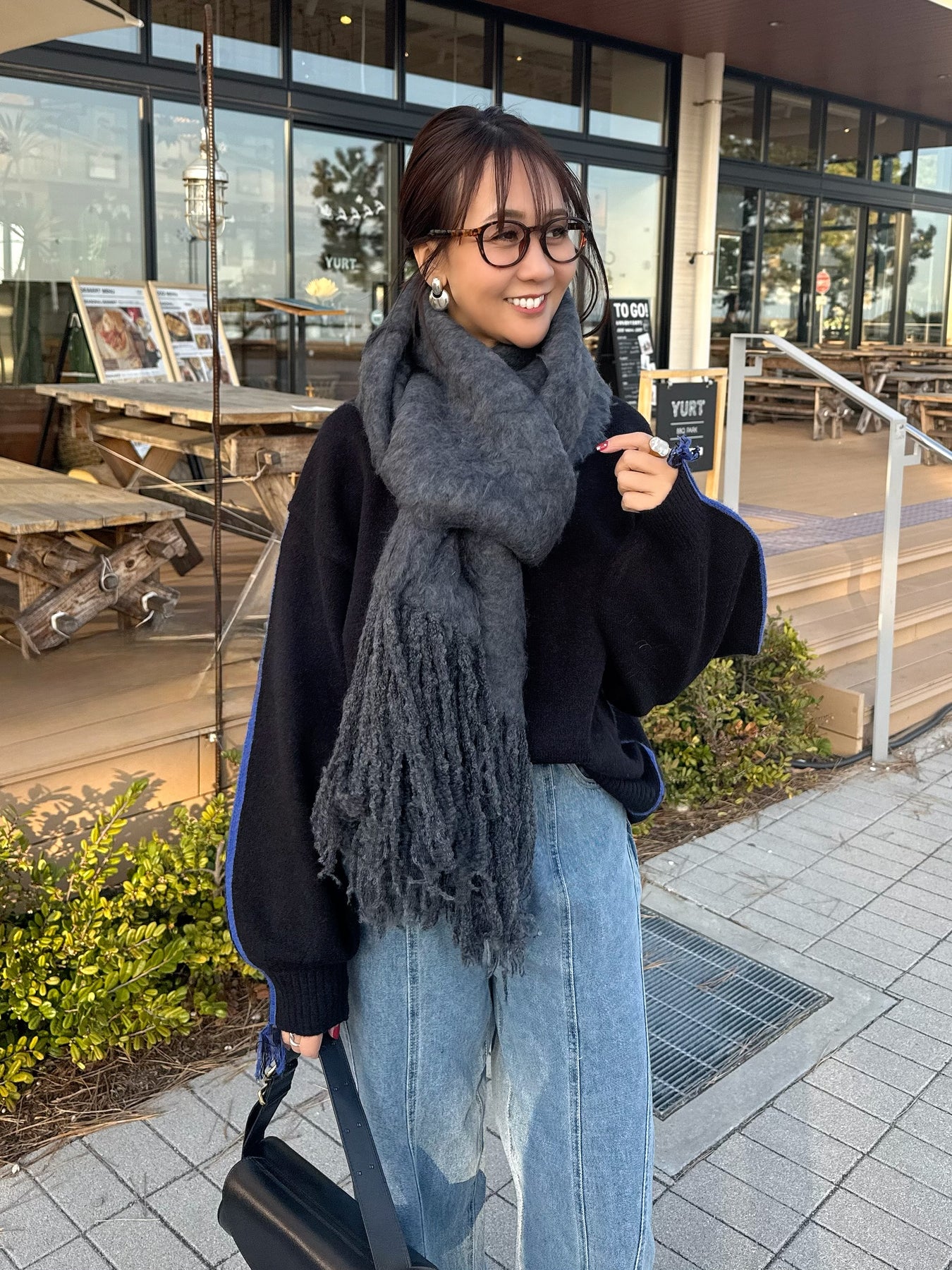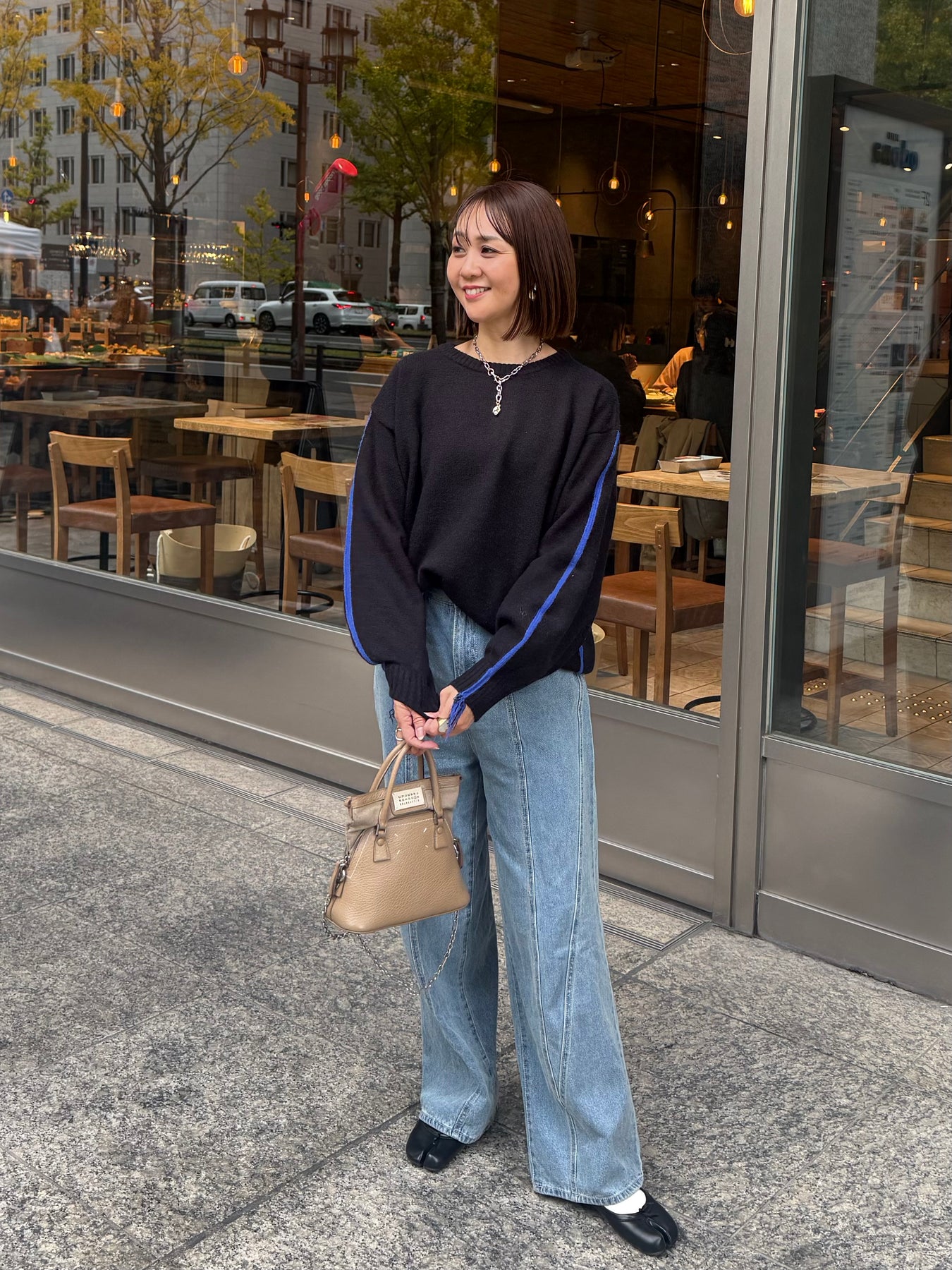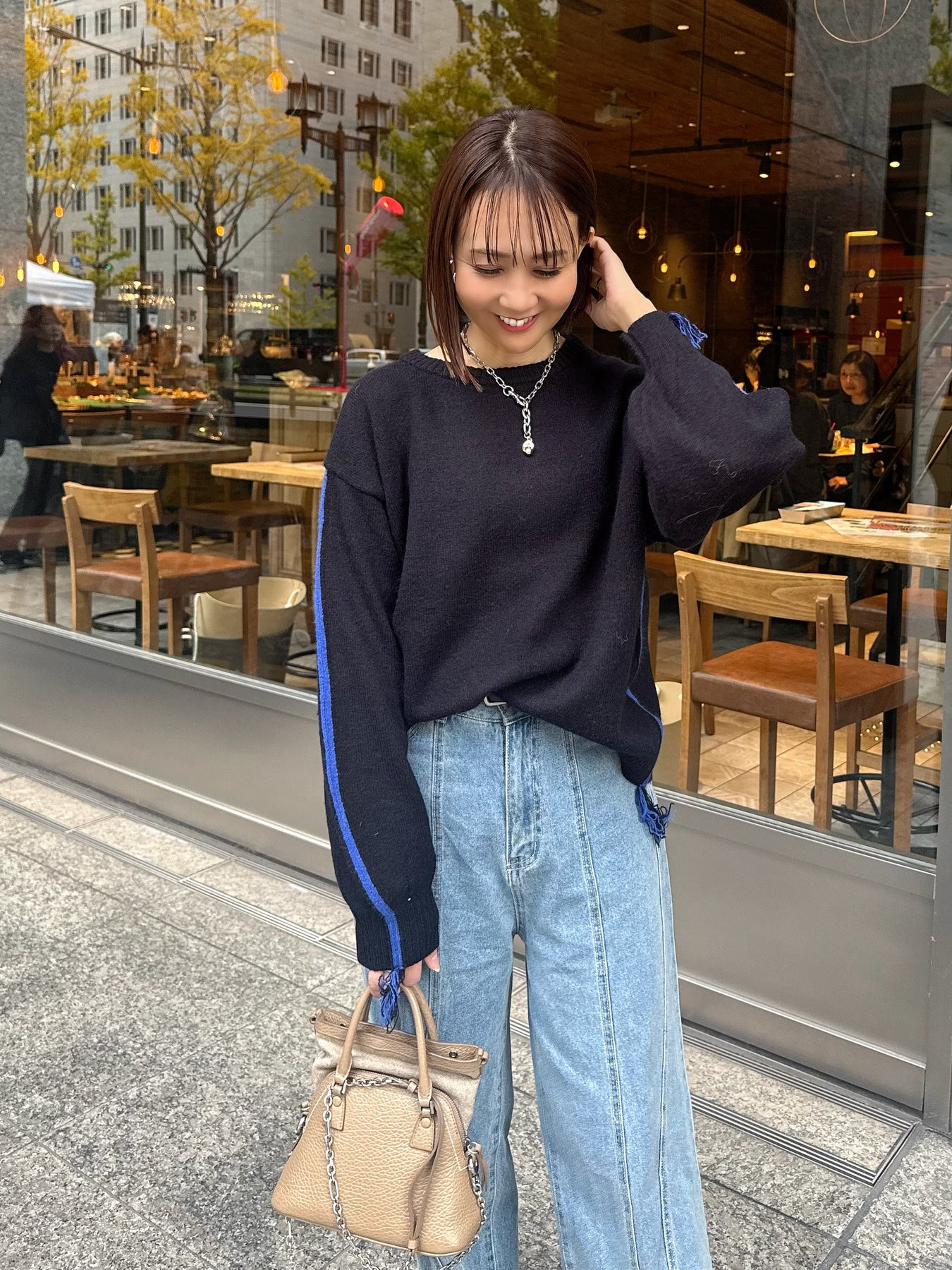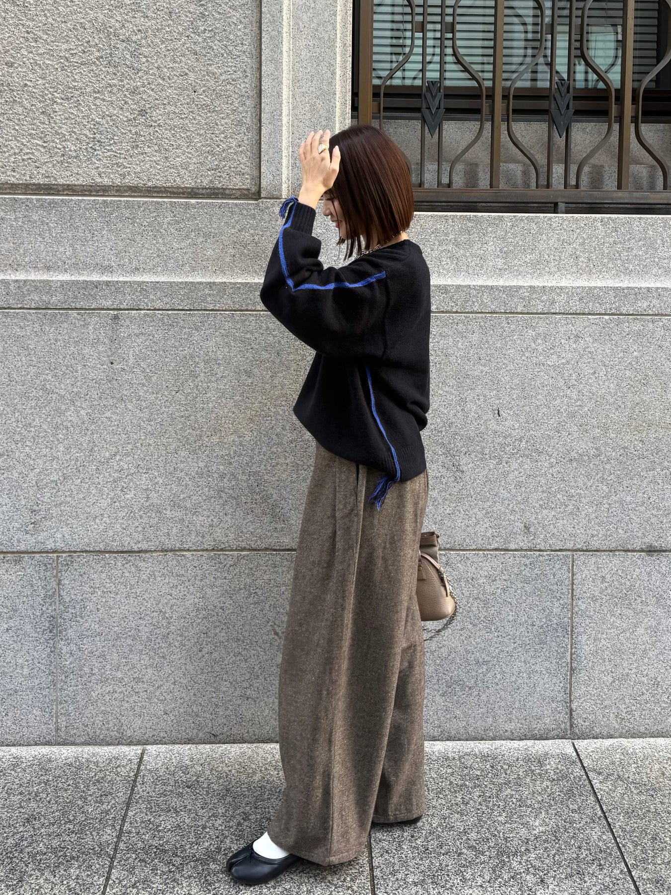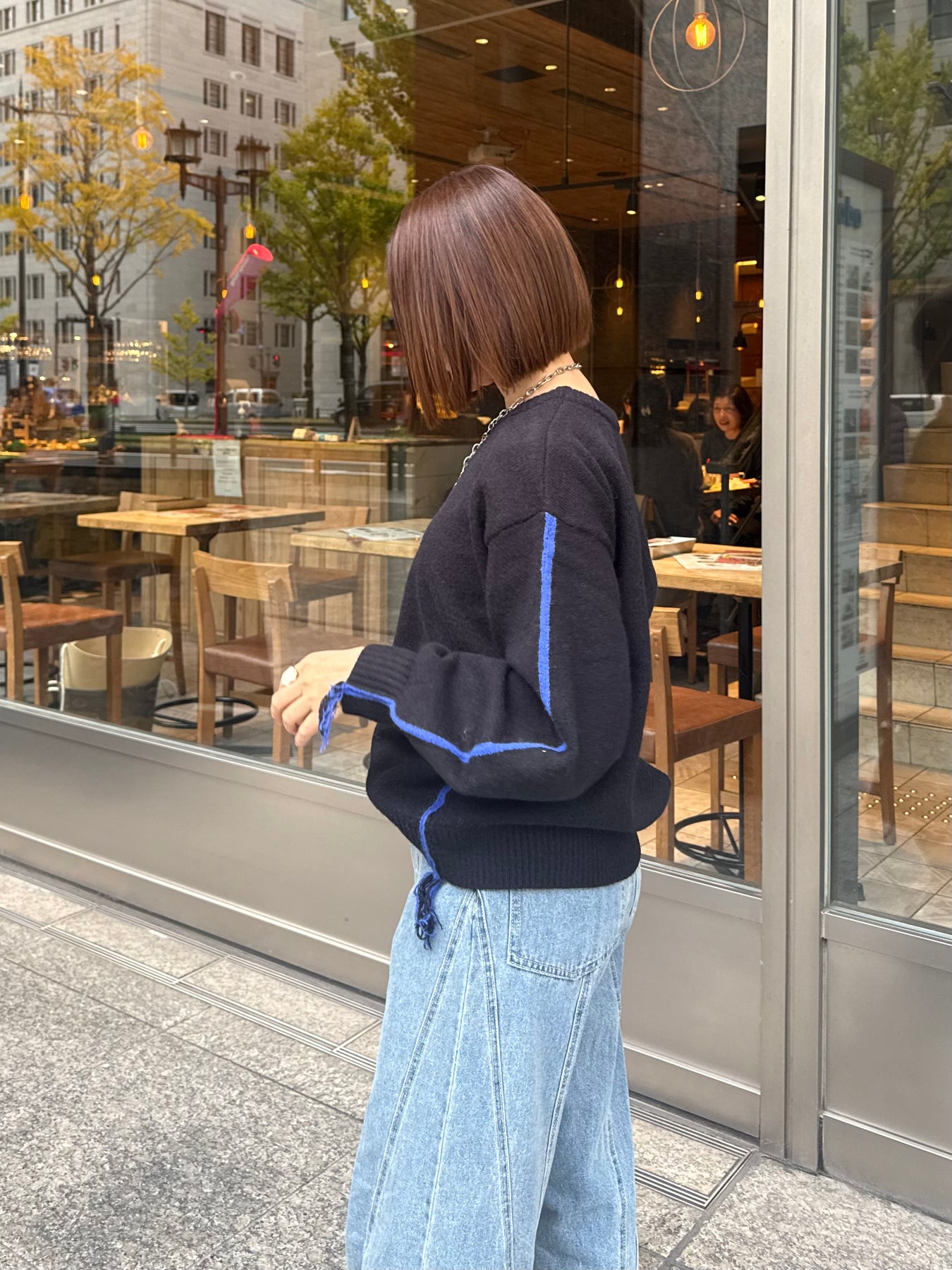 柔らかなアルパカタッチ素材で仕上げた配色ラインが特徴のプルオーバー。両袖に施したラインディテールがアクセントに。程よくゆったりとしたシルエットでリラックス感がありながら、配色のアクセントがスタイリングをぐっと引き締め、大人っぽい印象に。色々なボトムと合わせやすいので大活躍する1枚です。