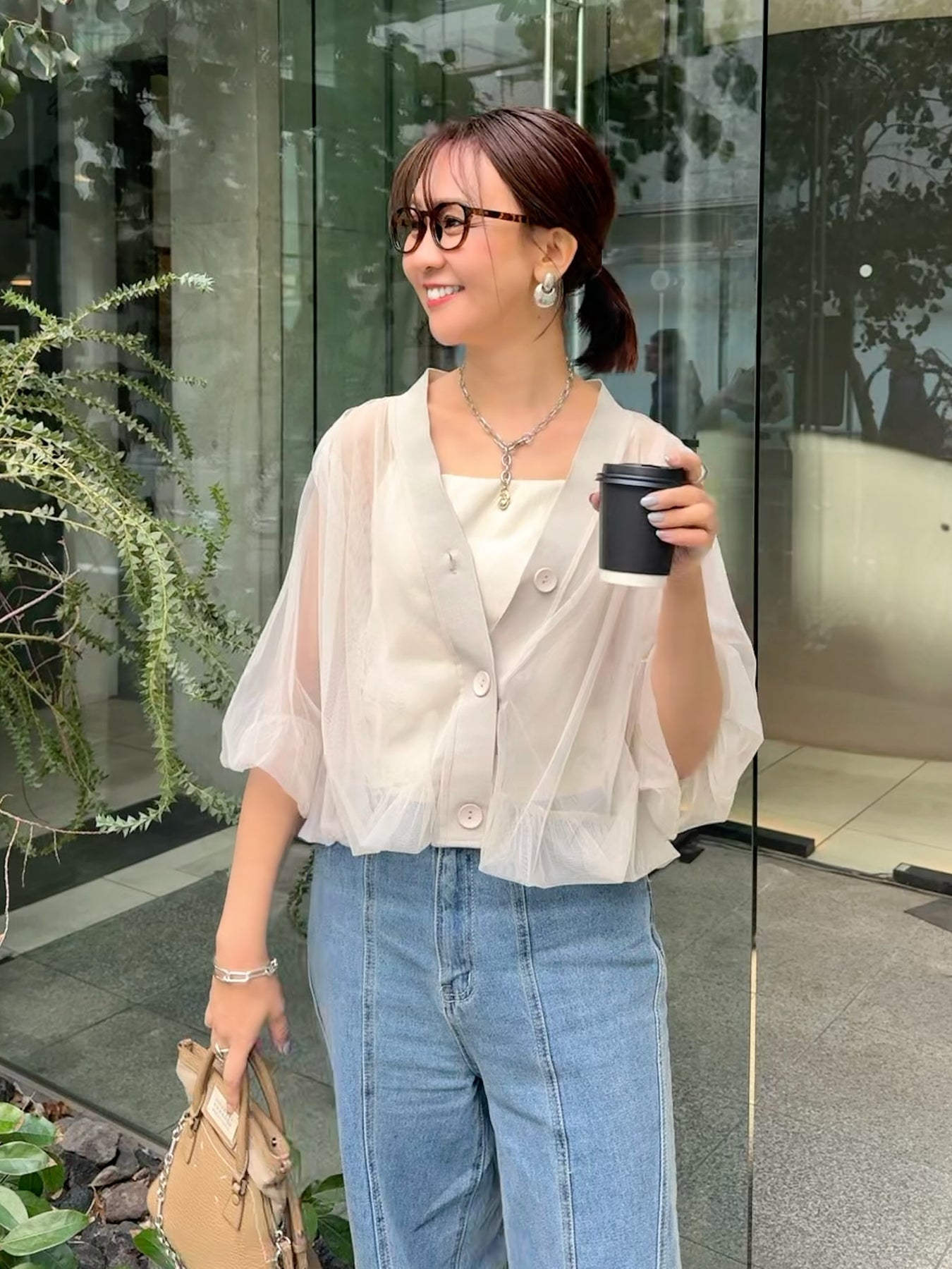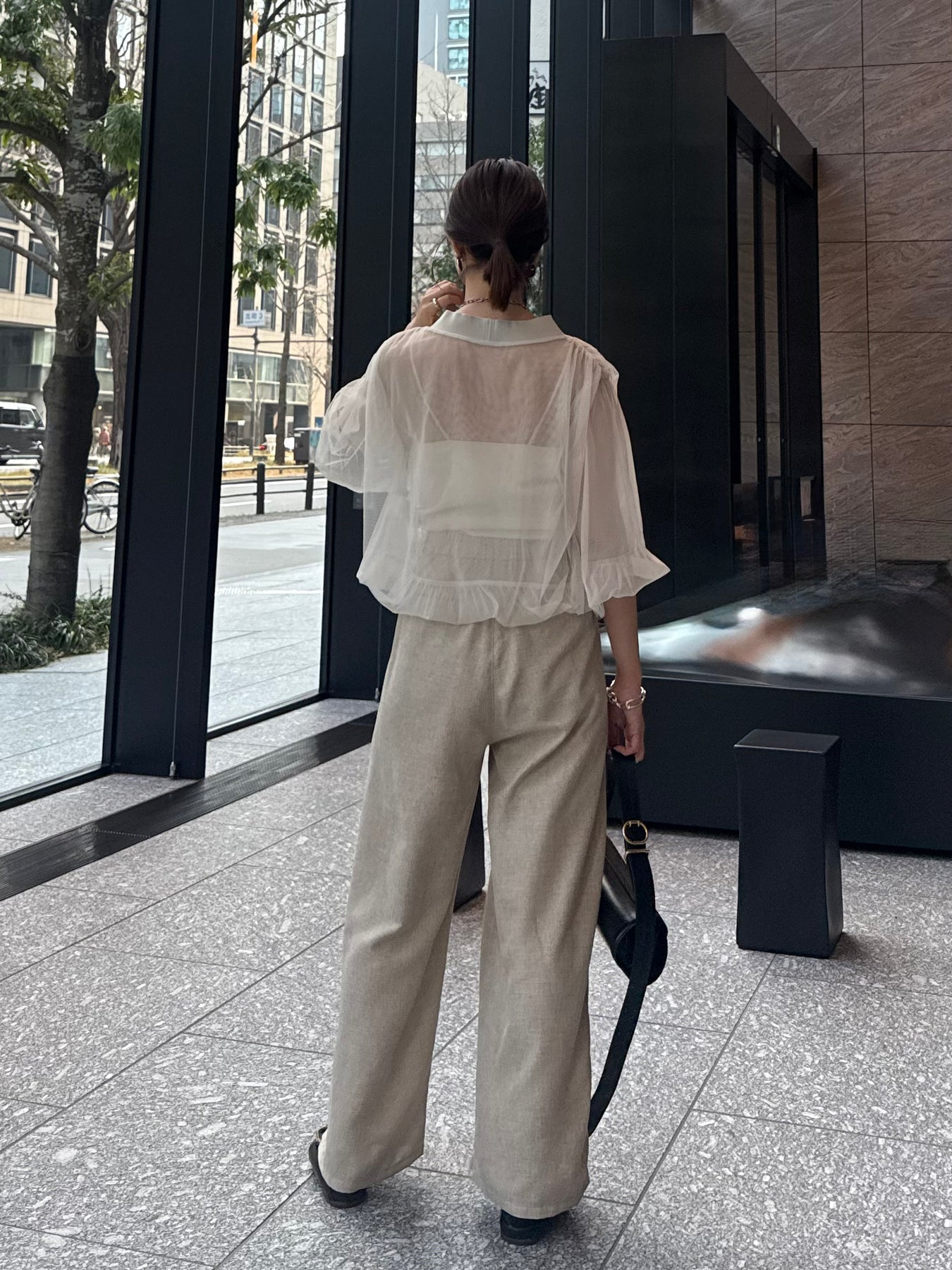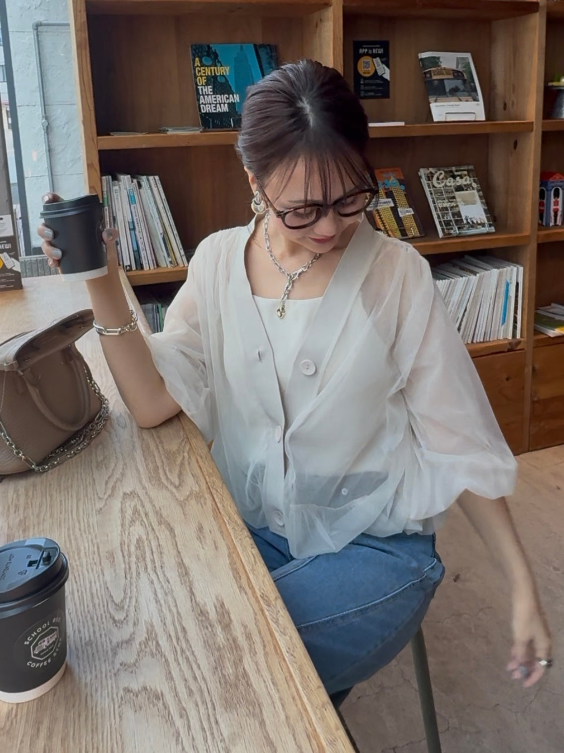 着丈は短めなので、色々なボトムと合わせていただけます。これからの夏の季節の羽織りにぴったりなアイテム。