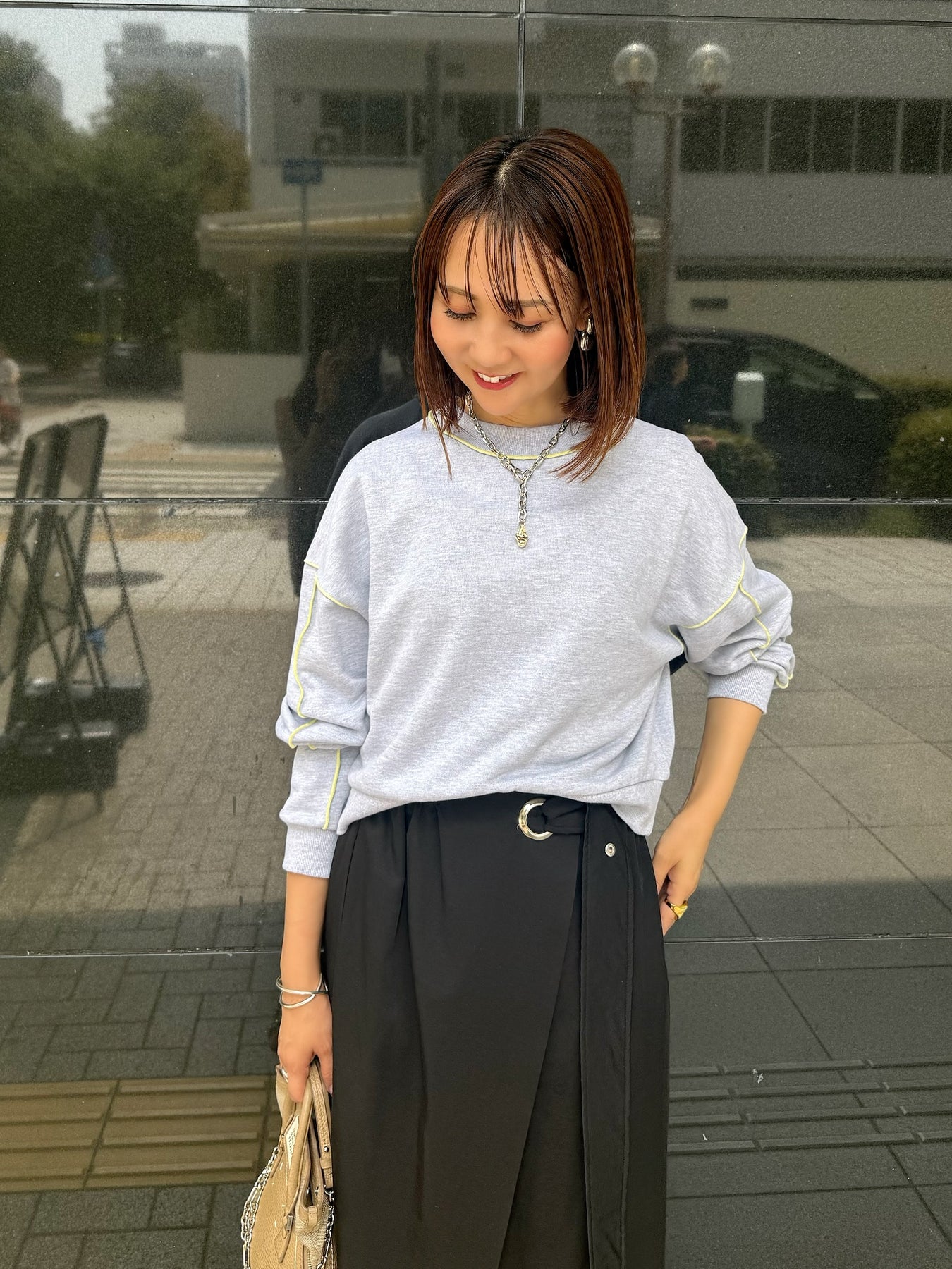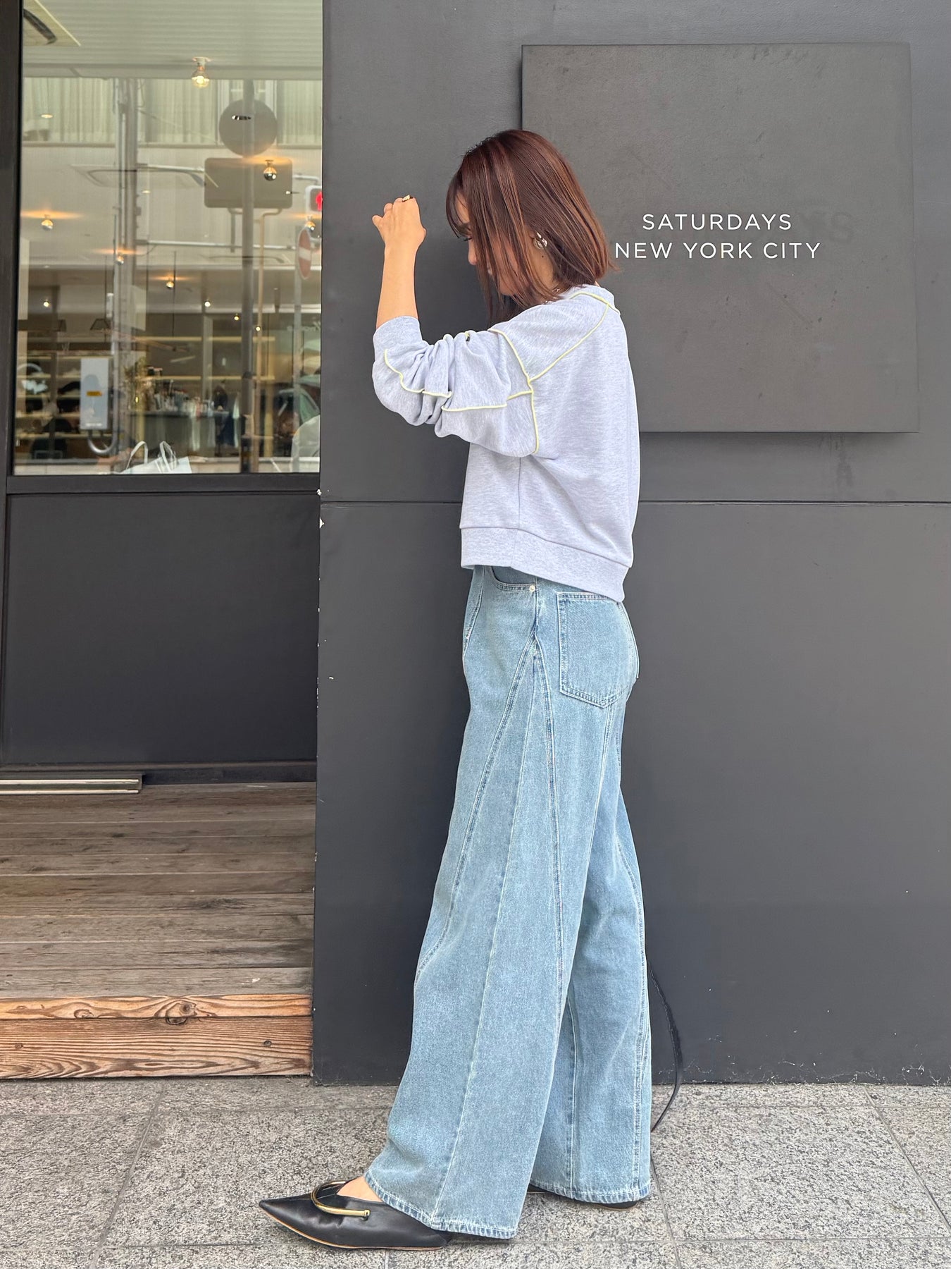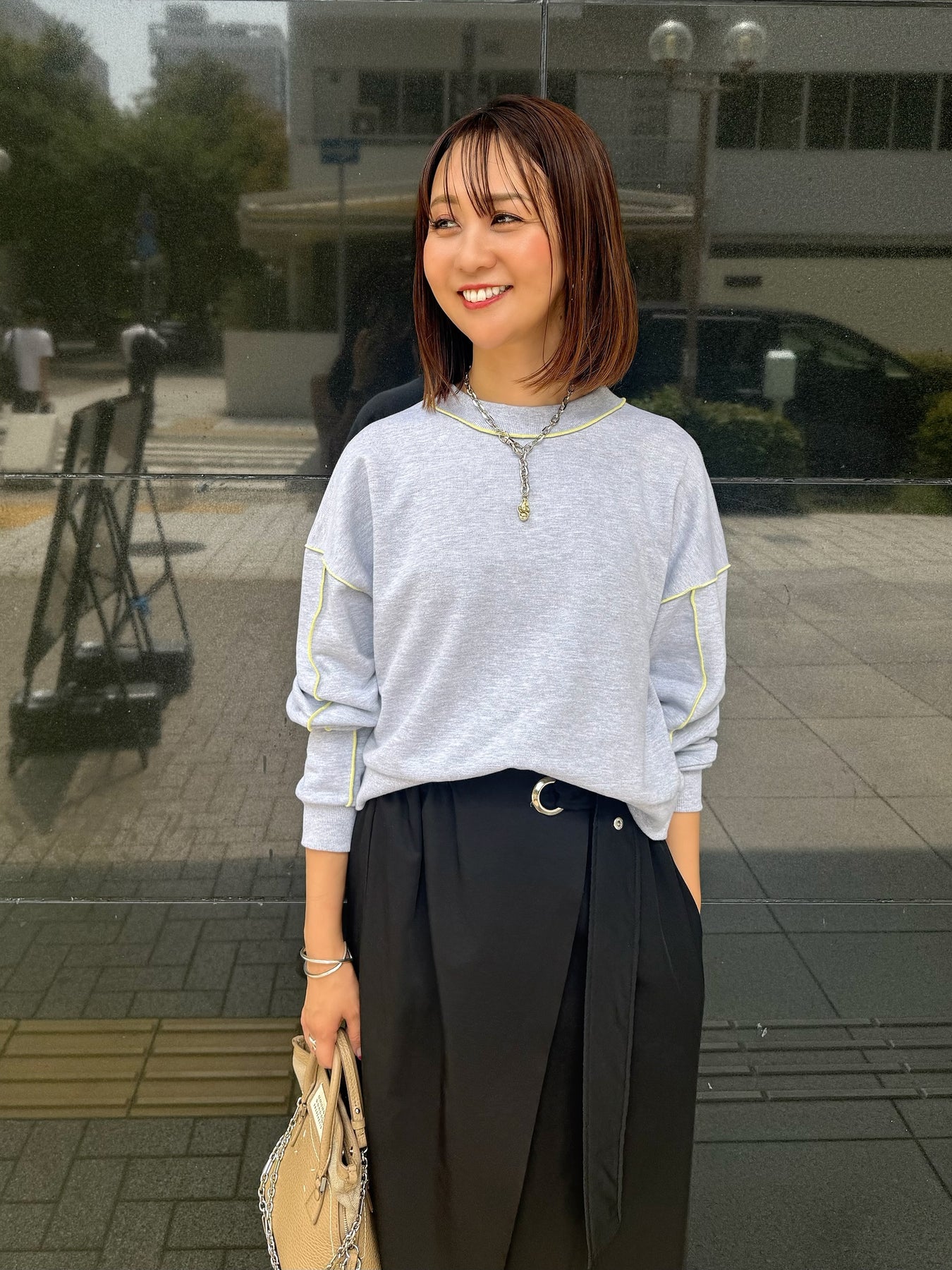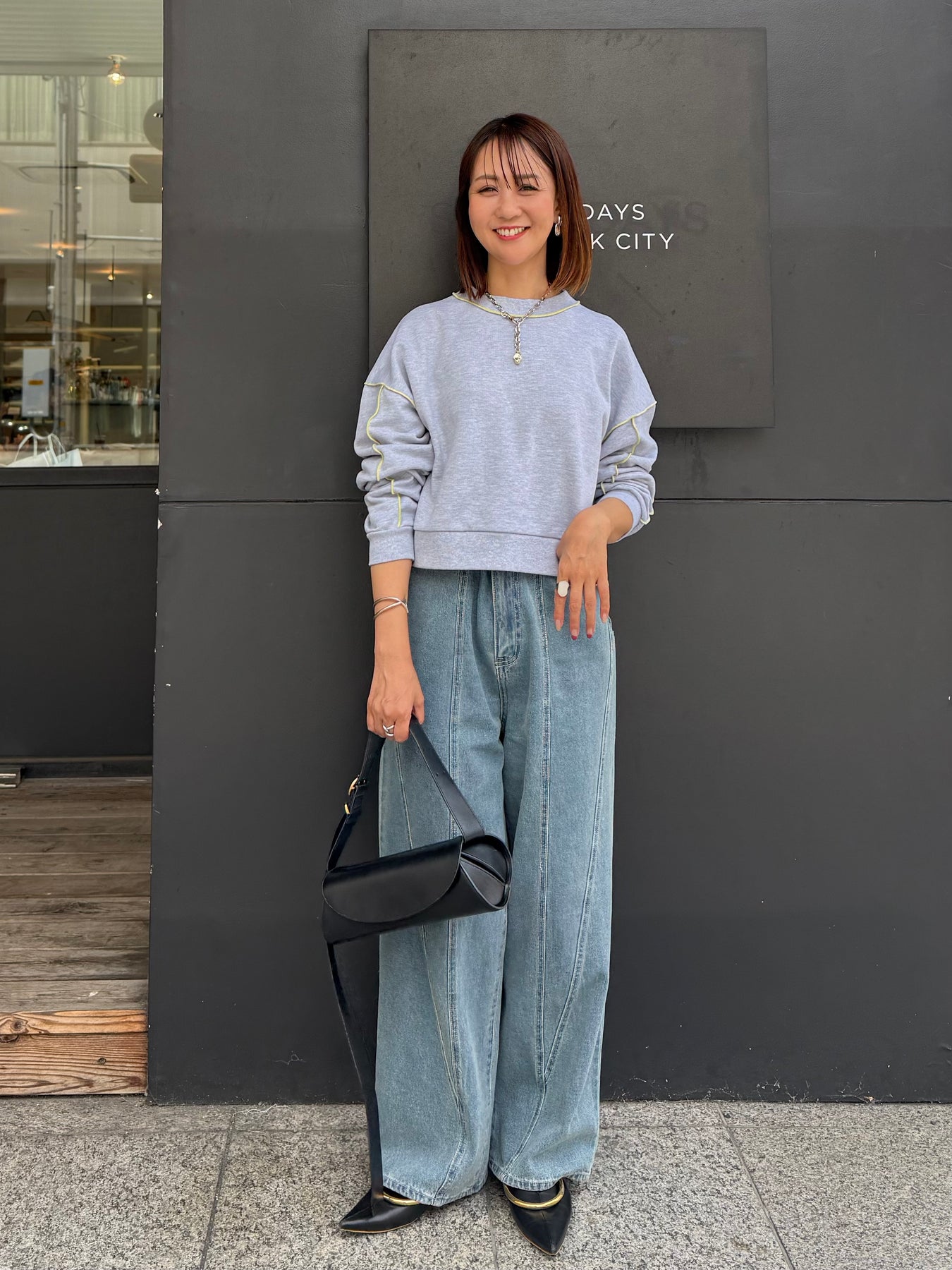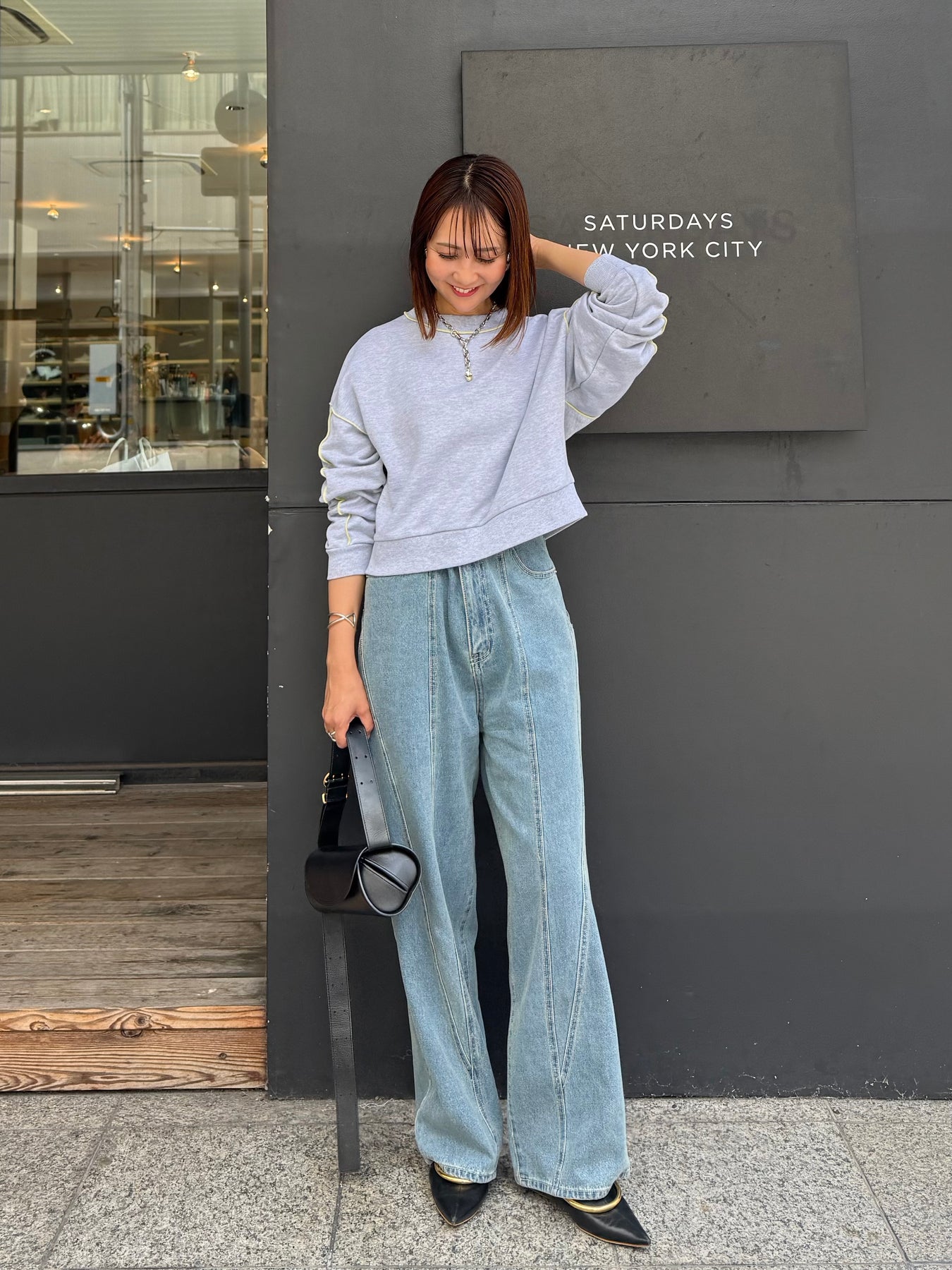配色メローデザインが目を引く、クロップド丈のスウェット。すっきりとしたショート丈のシルエットは、どんなボトムにも合わせやすく、足が長くみえるようにデザインされています。カジュアルに見えがちなスウェット素材も、綺麗な印象を与えてくれる1枚。程よく肉厚のさらりとした素材感が綺麗めボトムとの相性もバツグンです。