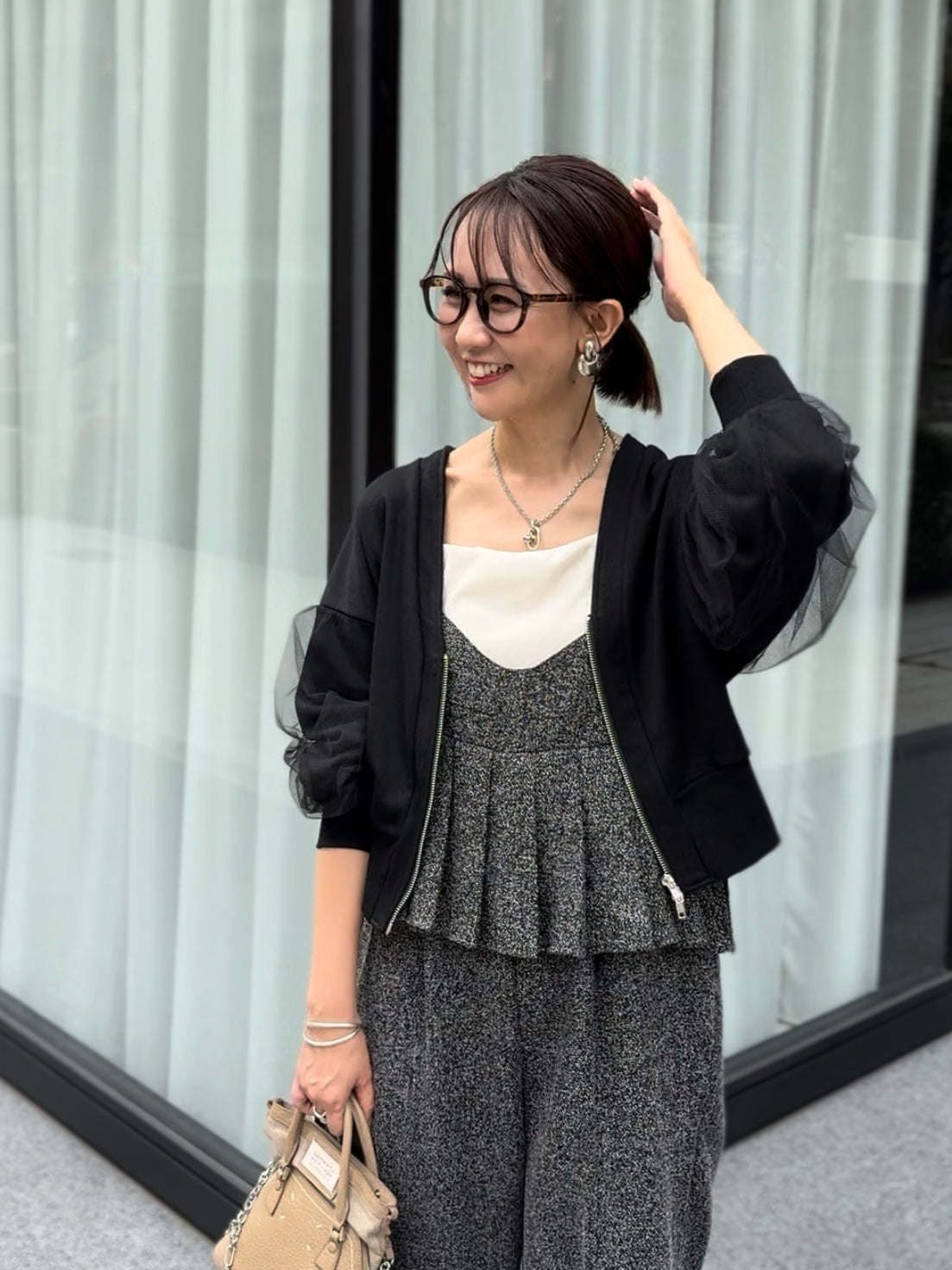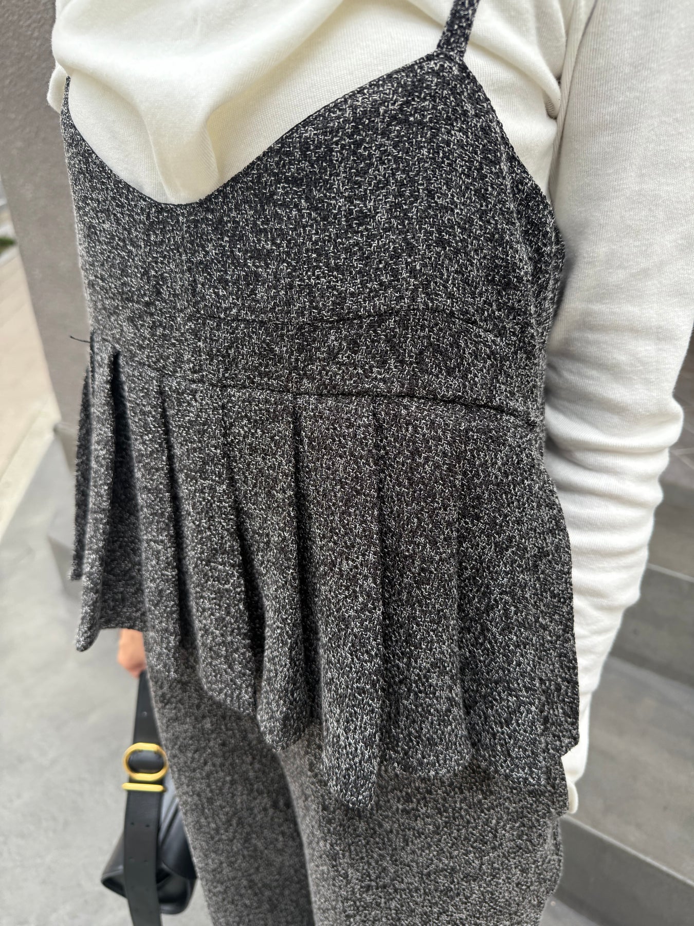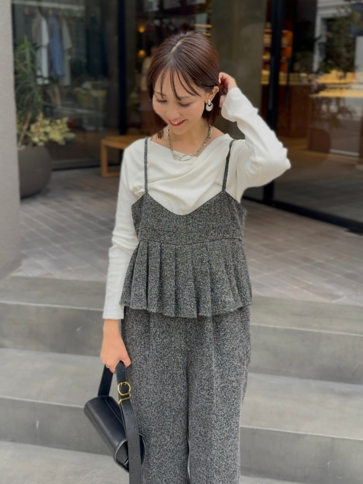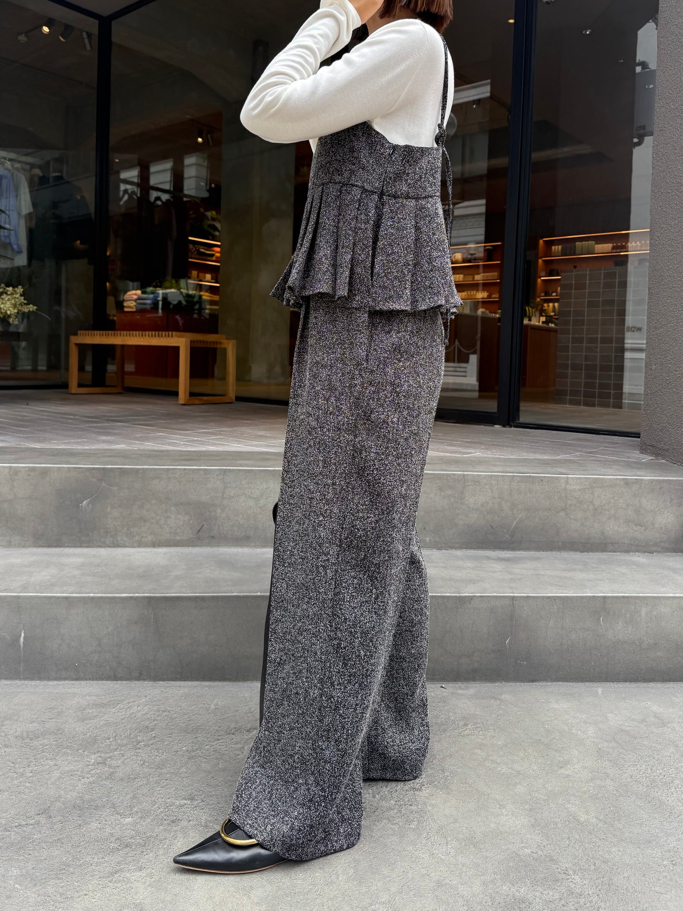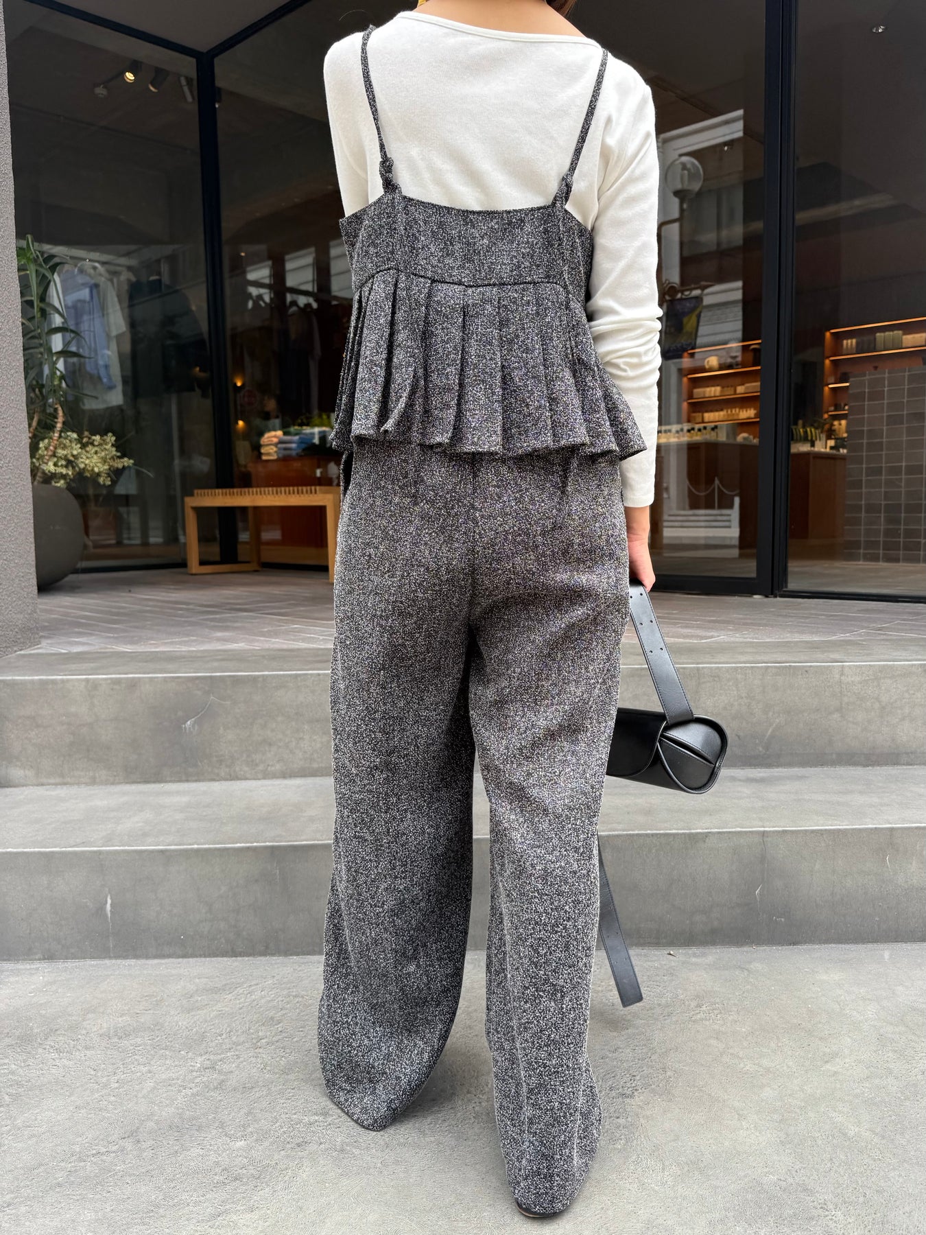 大人気のツイード調プリーツキャミとパンツがセットになったオールインワンが登場。クラシカルなツイード調素材が華やかさと上品さを兼ね備えています。