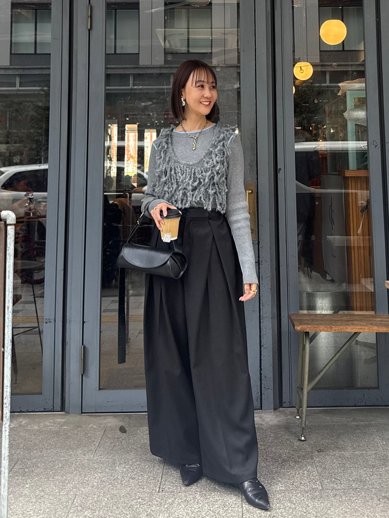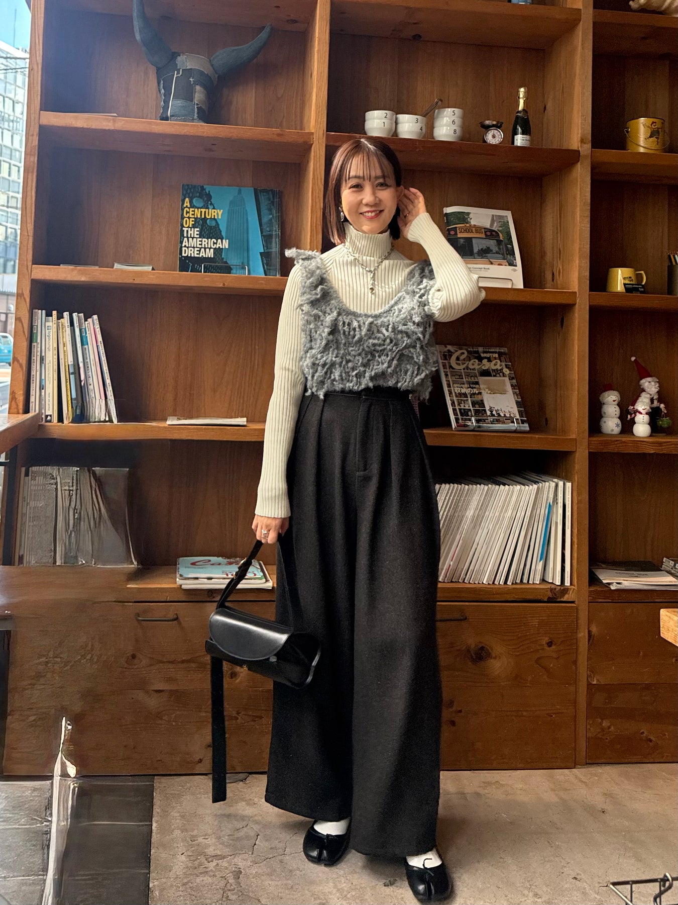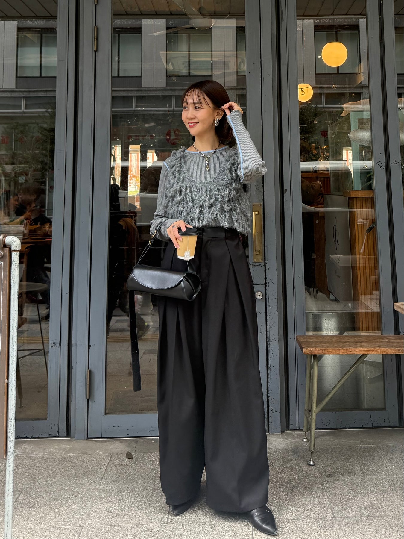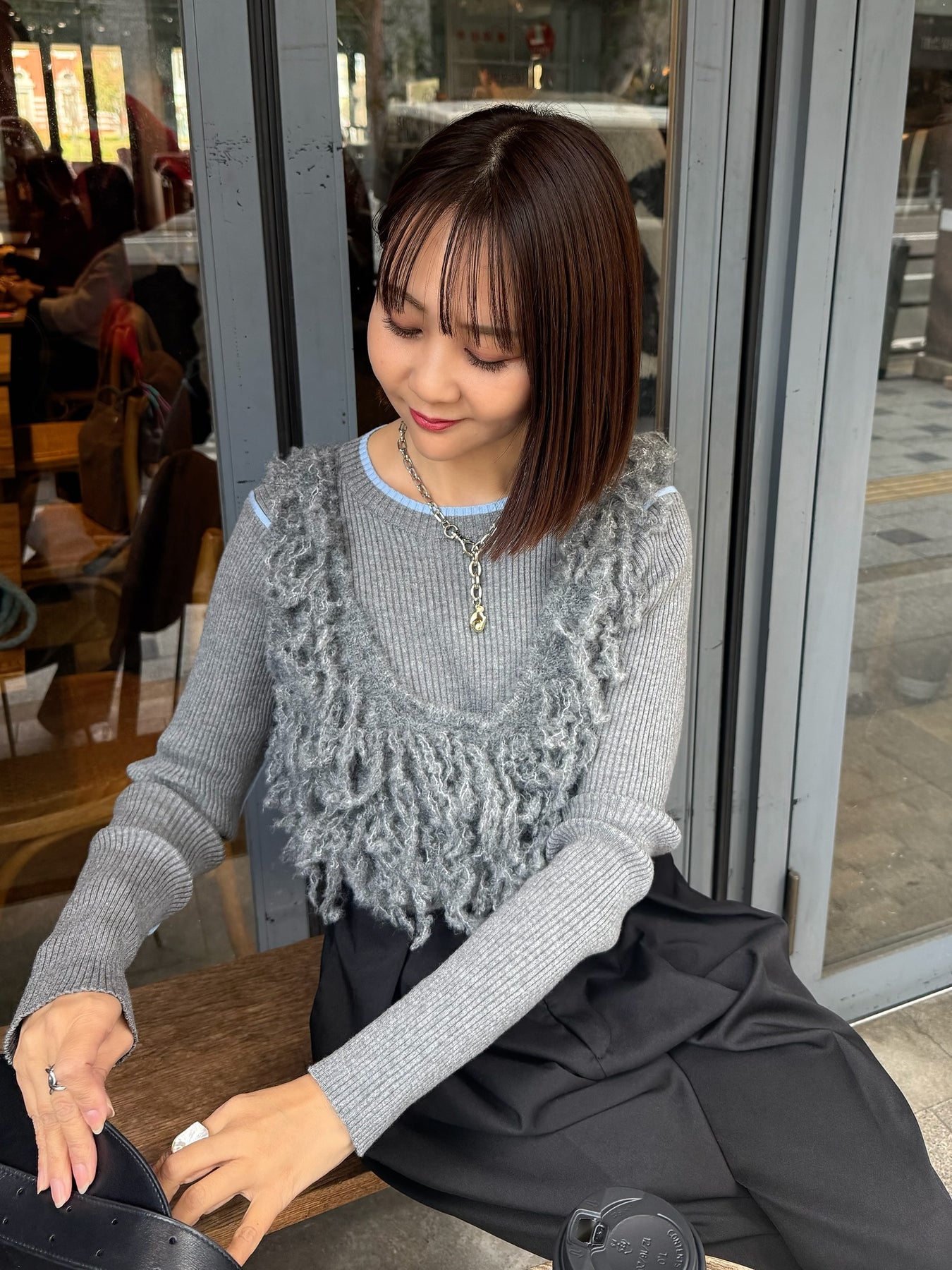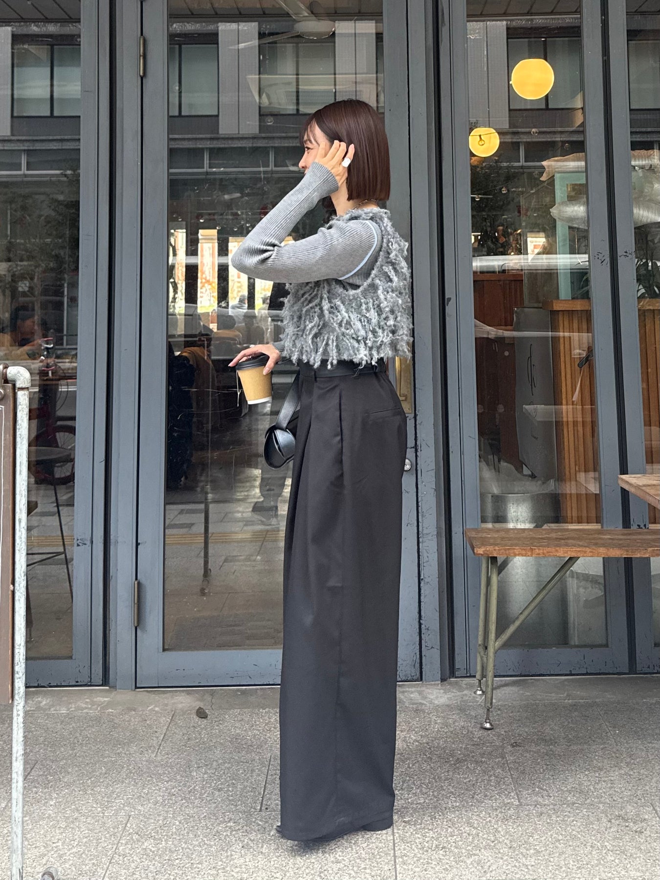 柔らかなブークレー素材で作られたビスチェ。肌触りの良い素材で着心地抜群。シンプルなインナーと合わせるだけでアクセントになるアイテムです。短めの着丈なので、ボトムとの相性も良いアイテムとなります。