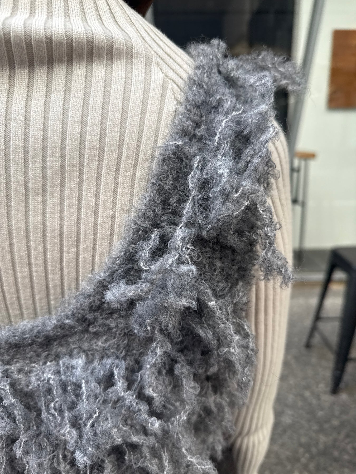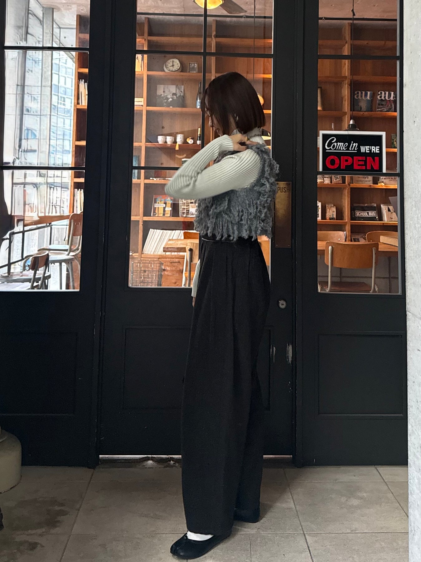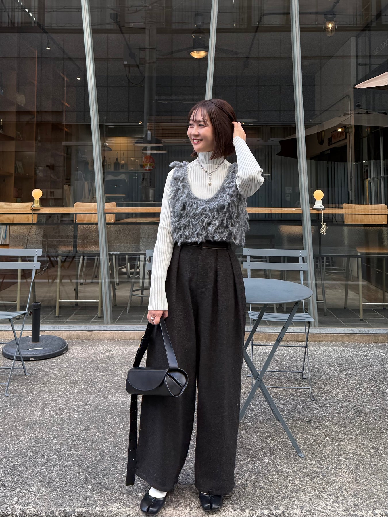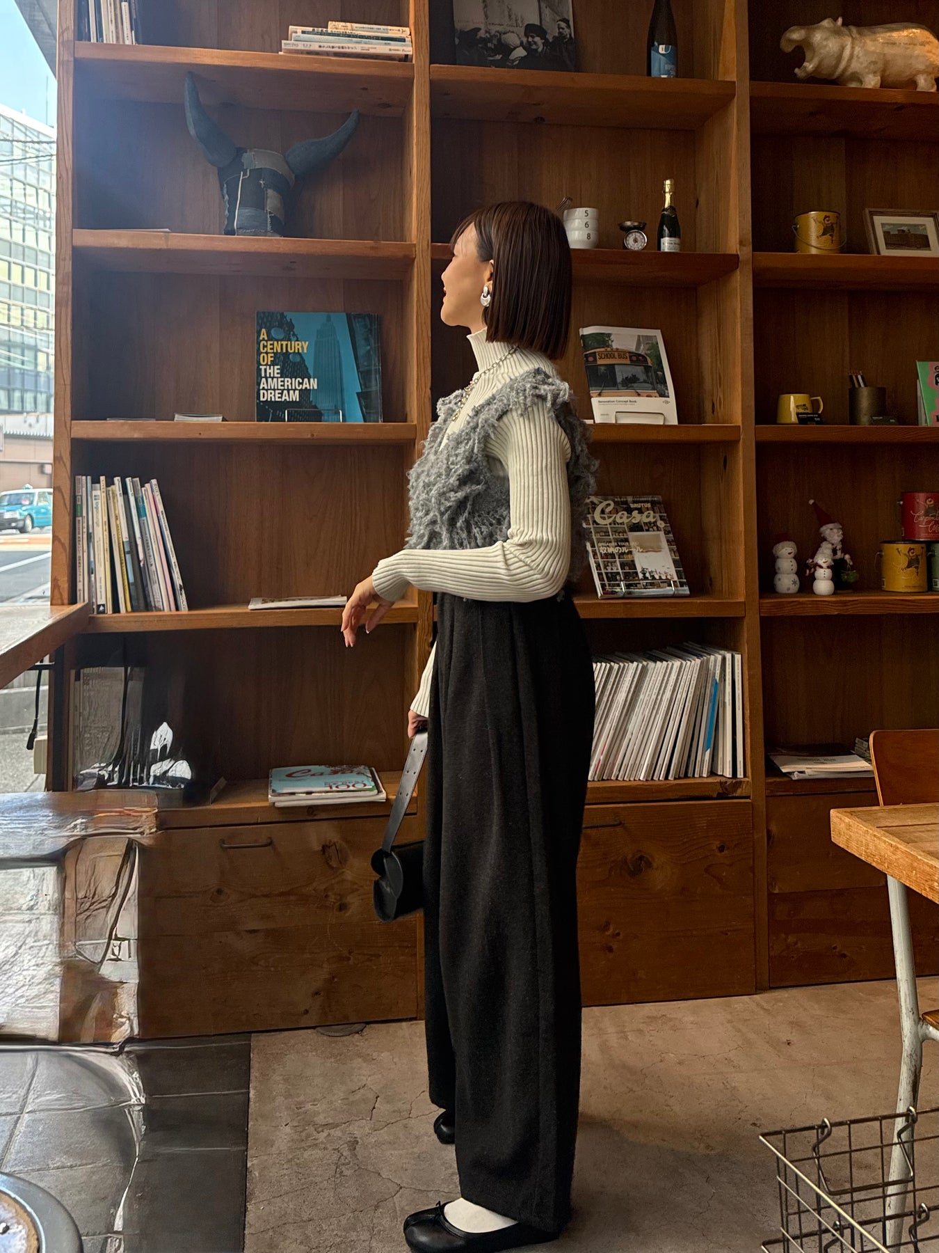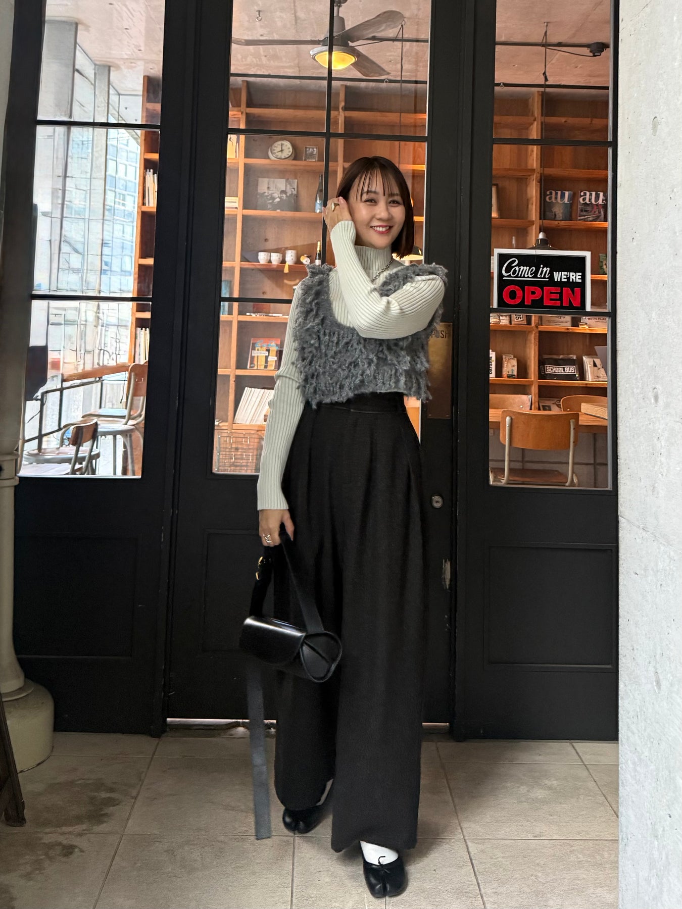 柔らかなブークレー素材で作られたビスチェ。肌触りの良い素材で着心地抜群。シンプルなインナーと合わせるだけでアクセントになるアイテムです。短めの着丈なので、ボトムとの相性も良いアイテムとなります。