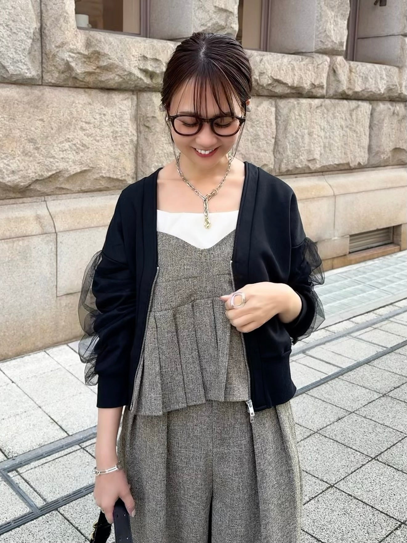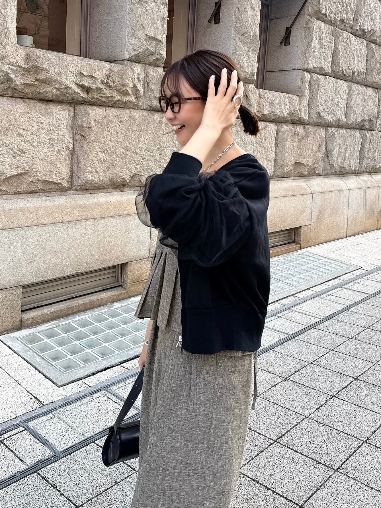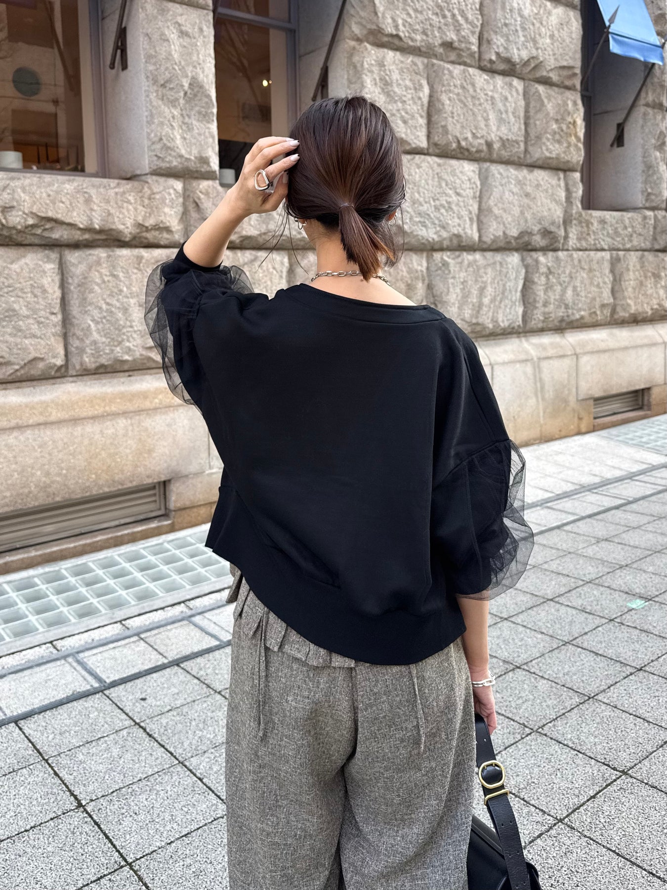 ふんわりとしたチュール素材が女性らしく、腕周りを細くみせてくれます。