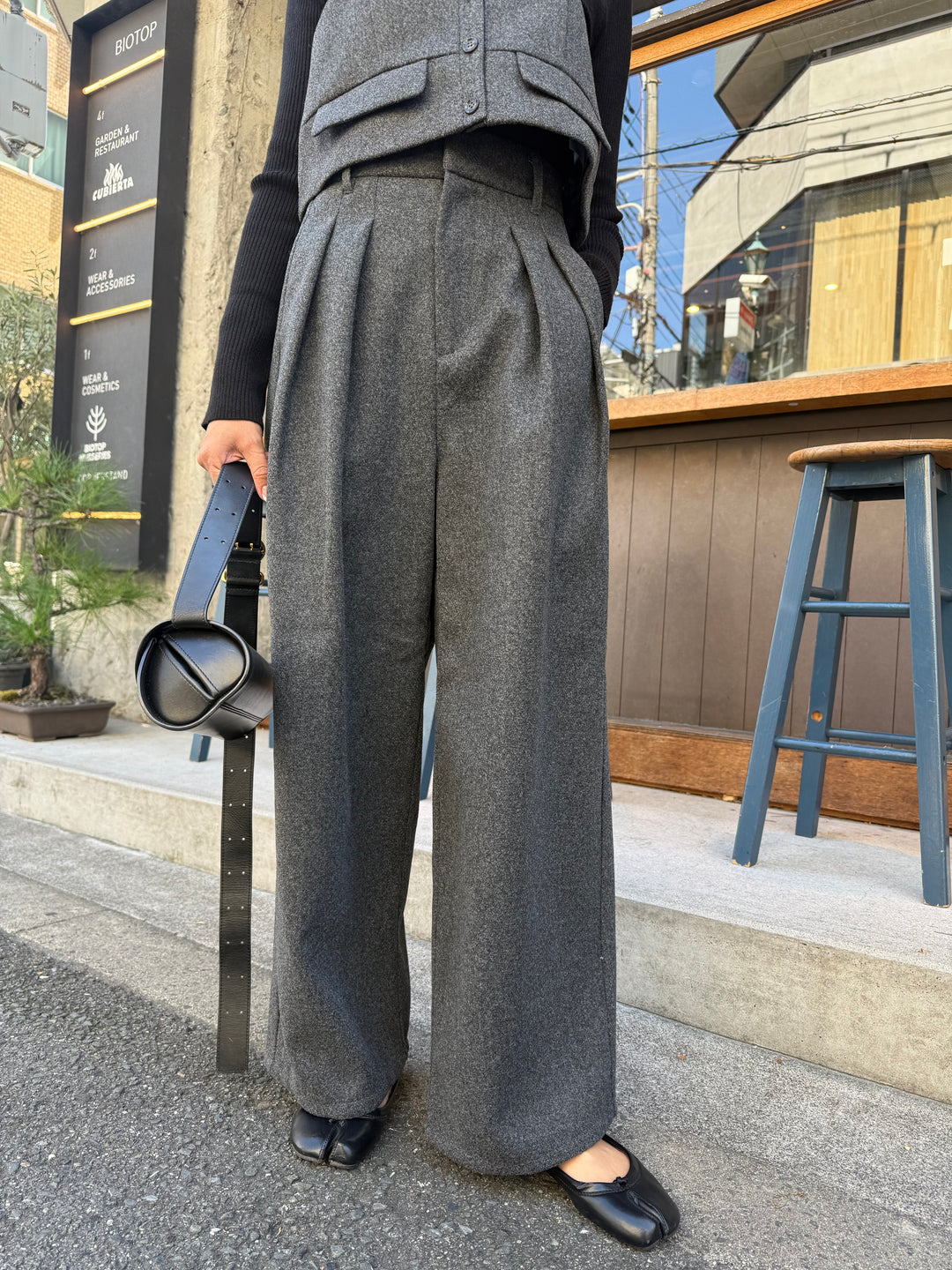 [新作300円OFF] 【予約】ウールライクタックワイドパンツ / チャコール(10月下旬発送予定)