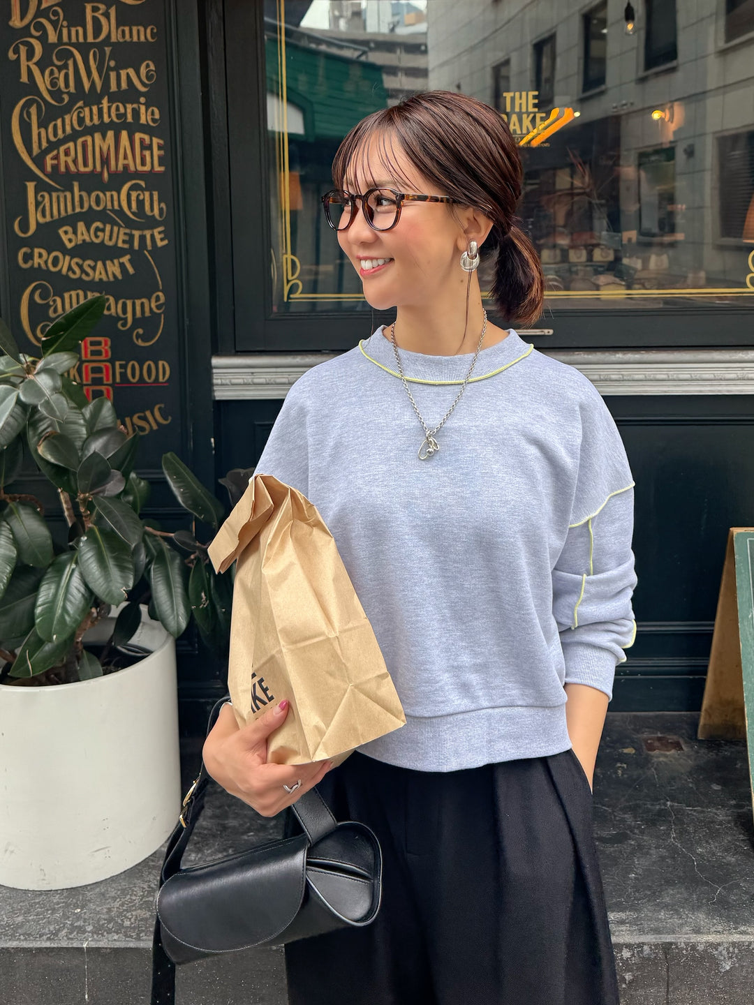 【予約】ウエストパイピングワイドパンツ / ブラック(10月下旬発送予定)