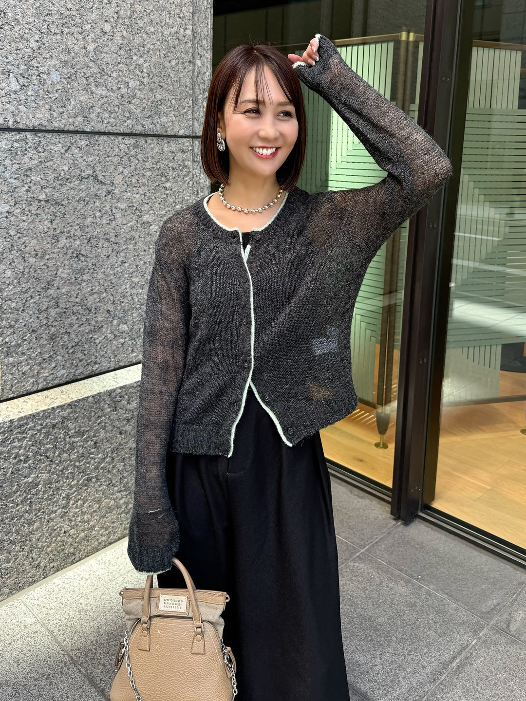 【予約】シアー配色カーディガン / チャコール(10月下旬発送予定)