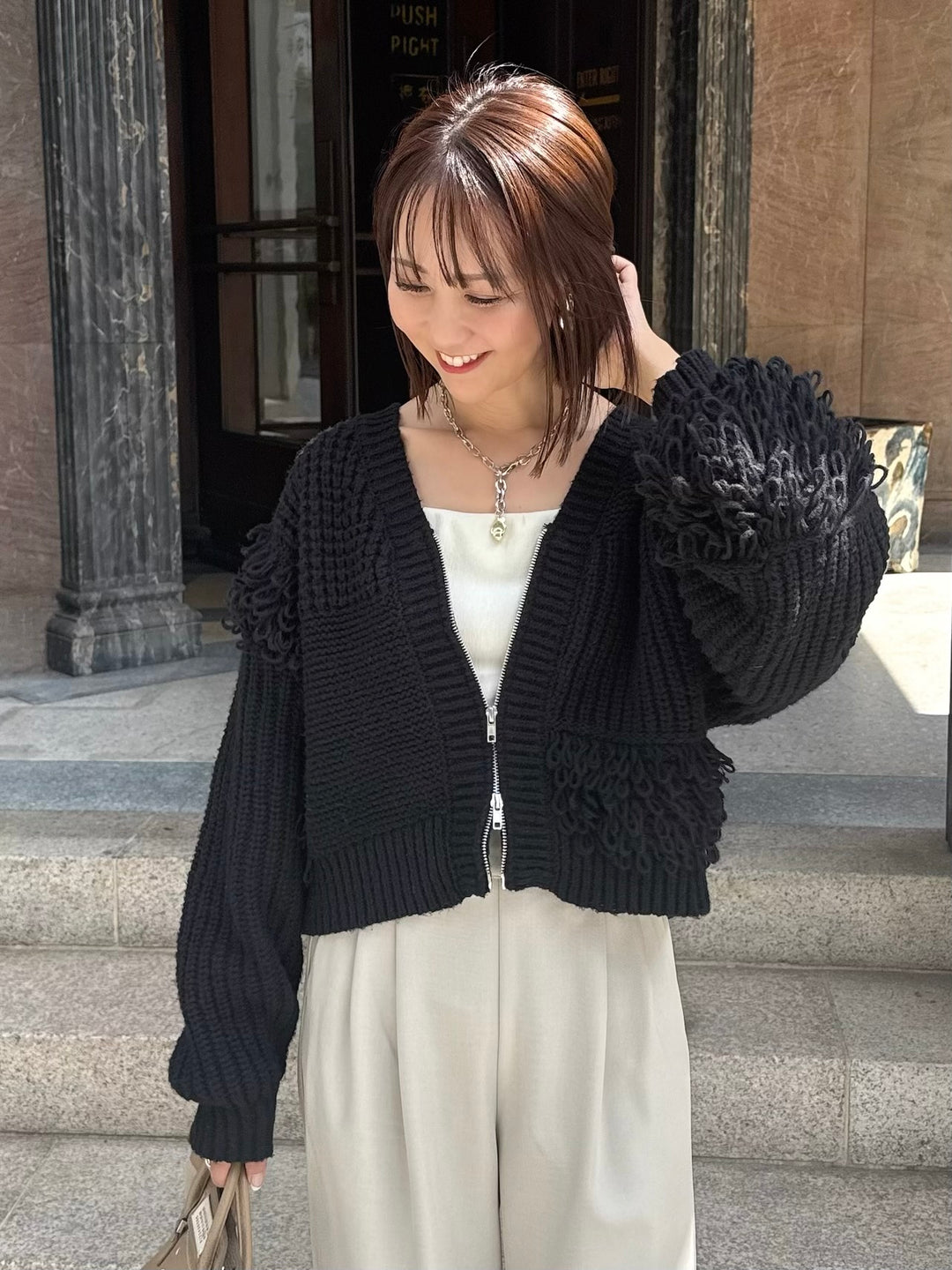 【予約】フリンジジップカーディガン / ブラック(11月上旬発送予定)