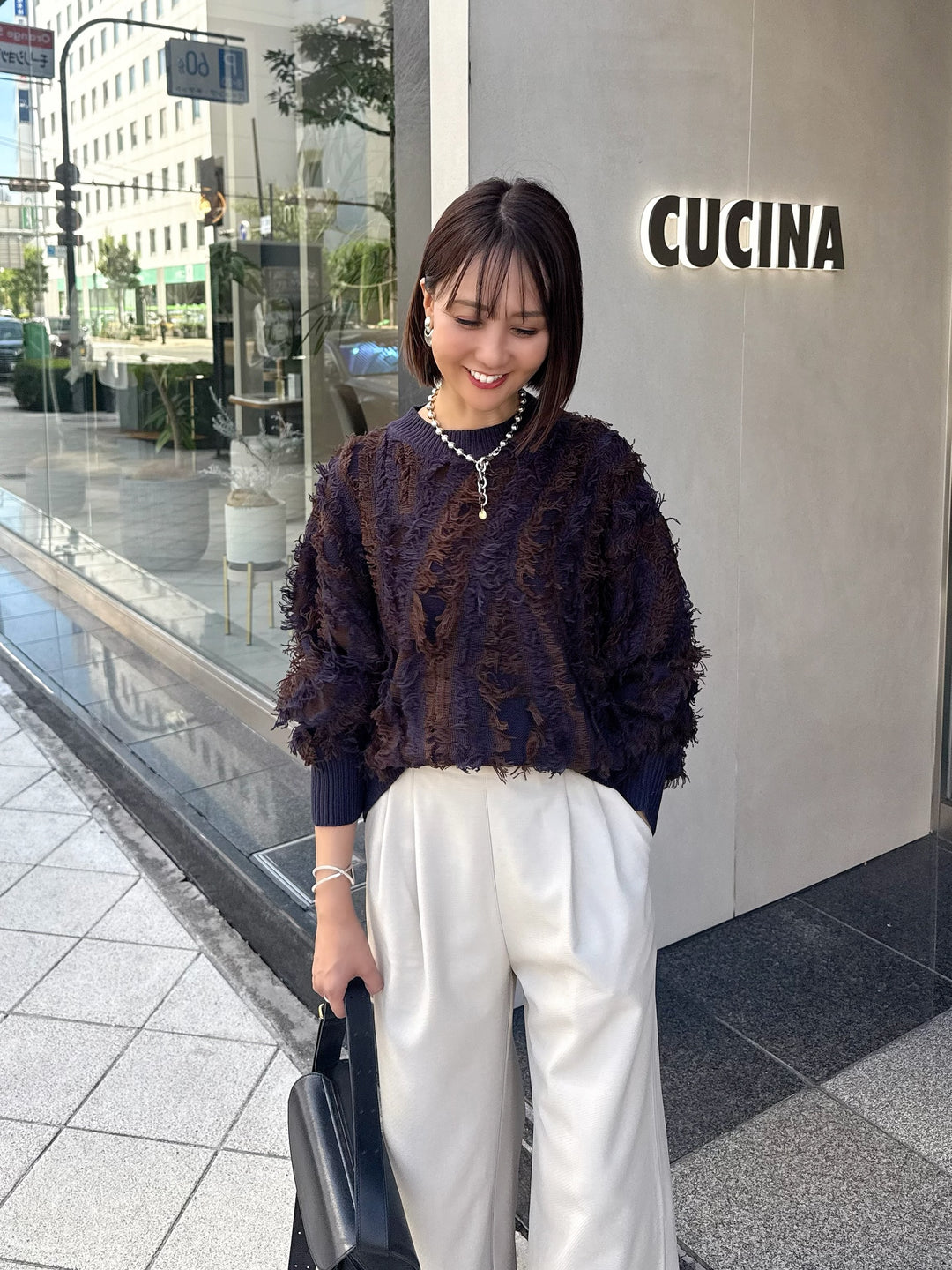 ツイード切替フリンジパンツ / アイボリー