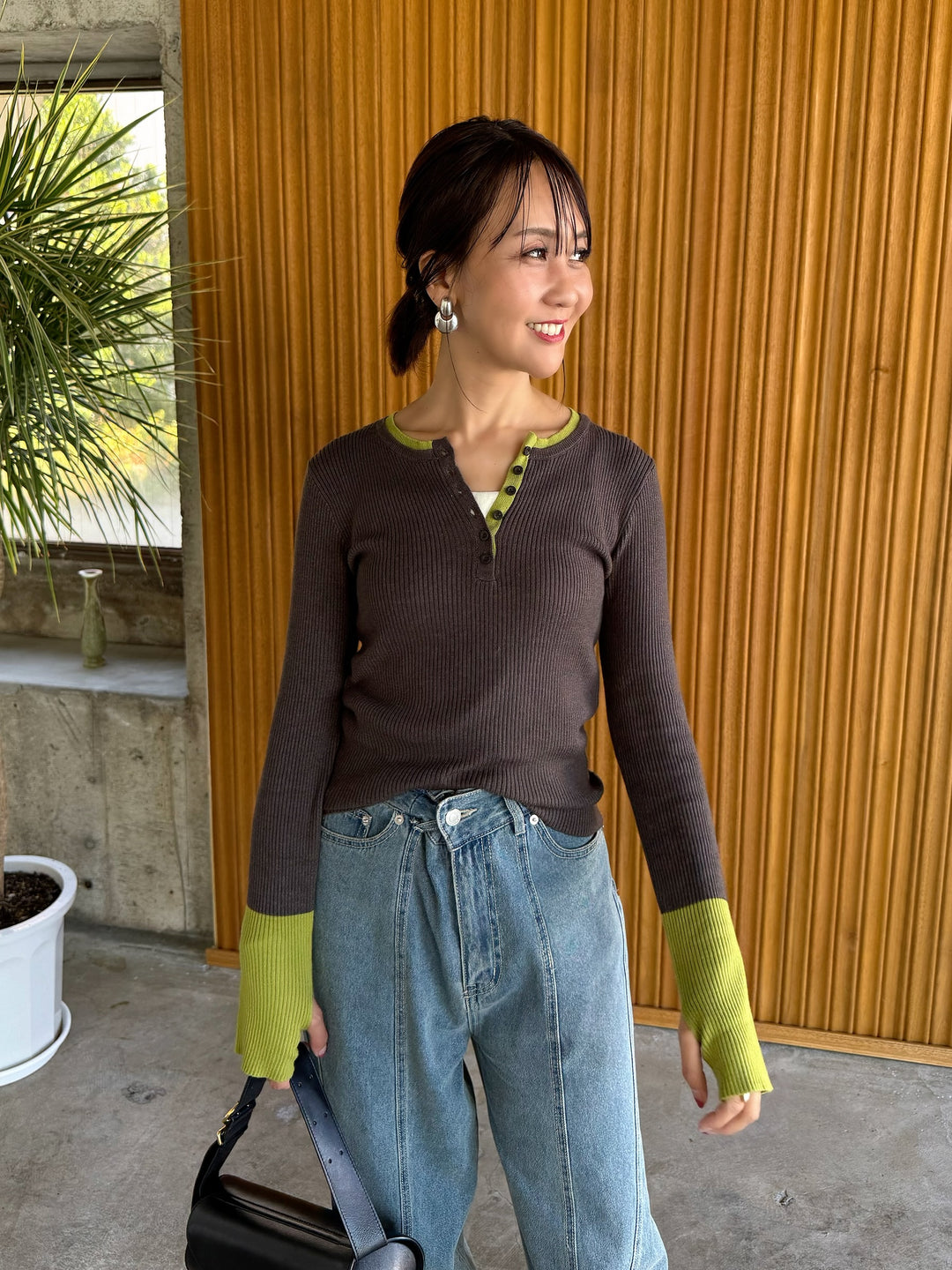 配色キーネックプルオーバー / チャコール