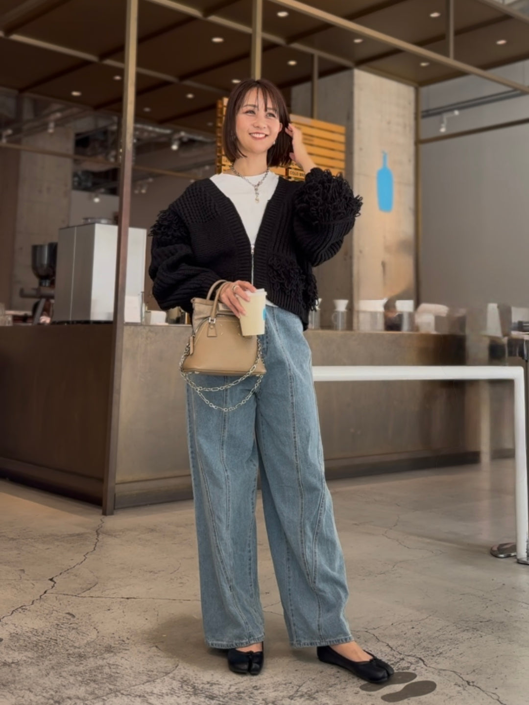 【予約】[SET] フリンジジップカーディガン / ブラック + 切替えストレートデニムパンツ / ブルー(11月中旬発送予定)
