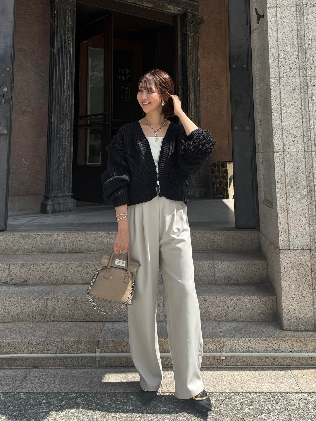 【予約】[SET] フリンジジップカーディガン / ブラック + ツイルタックストレートパンツ / エクリュ(11月上旬発送予定)