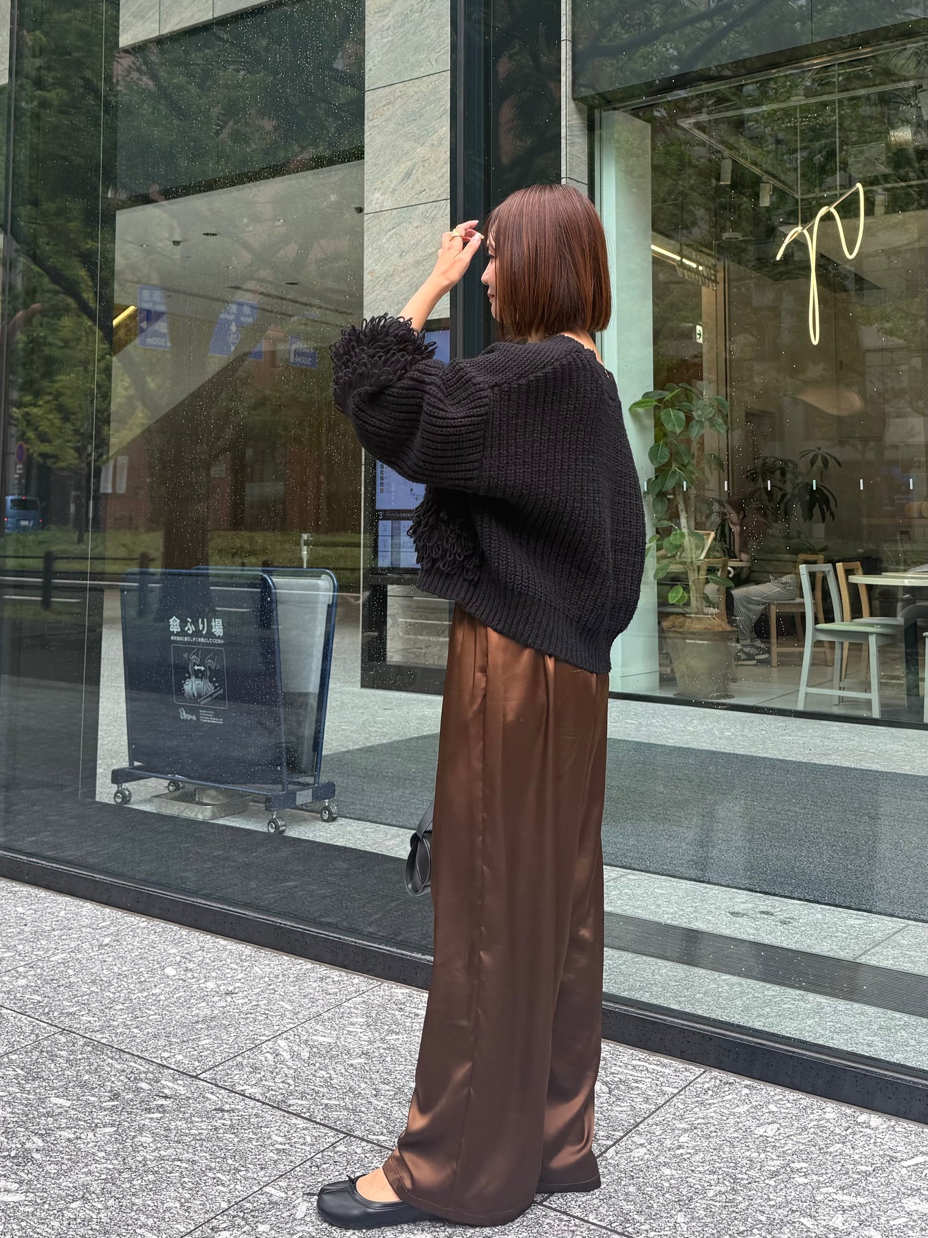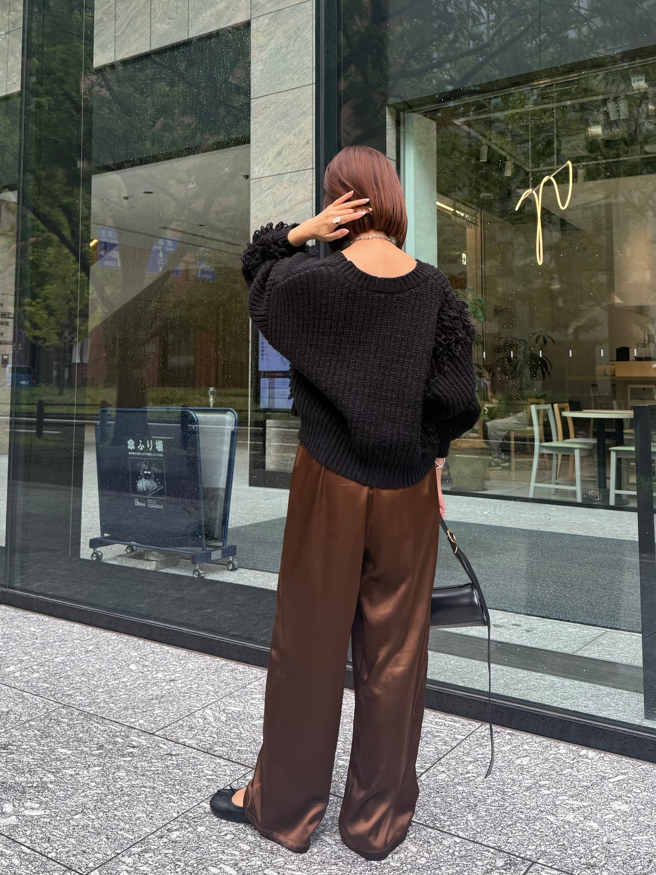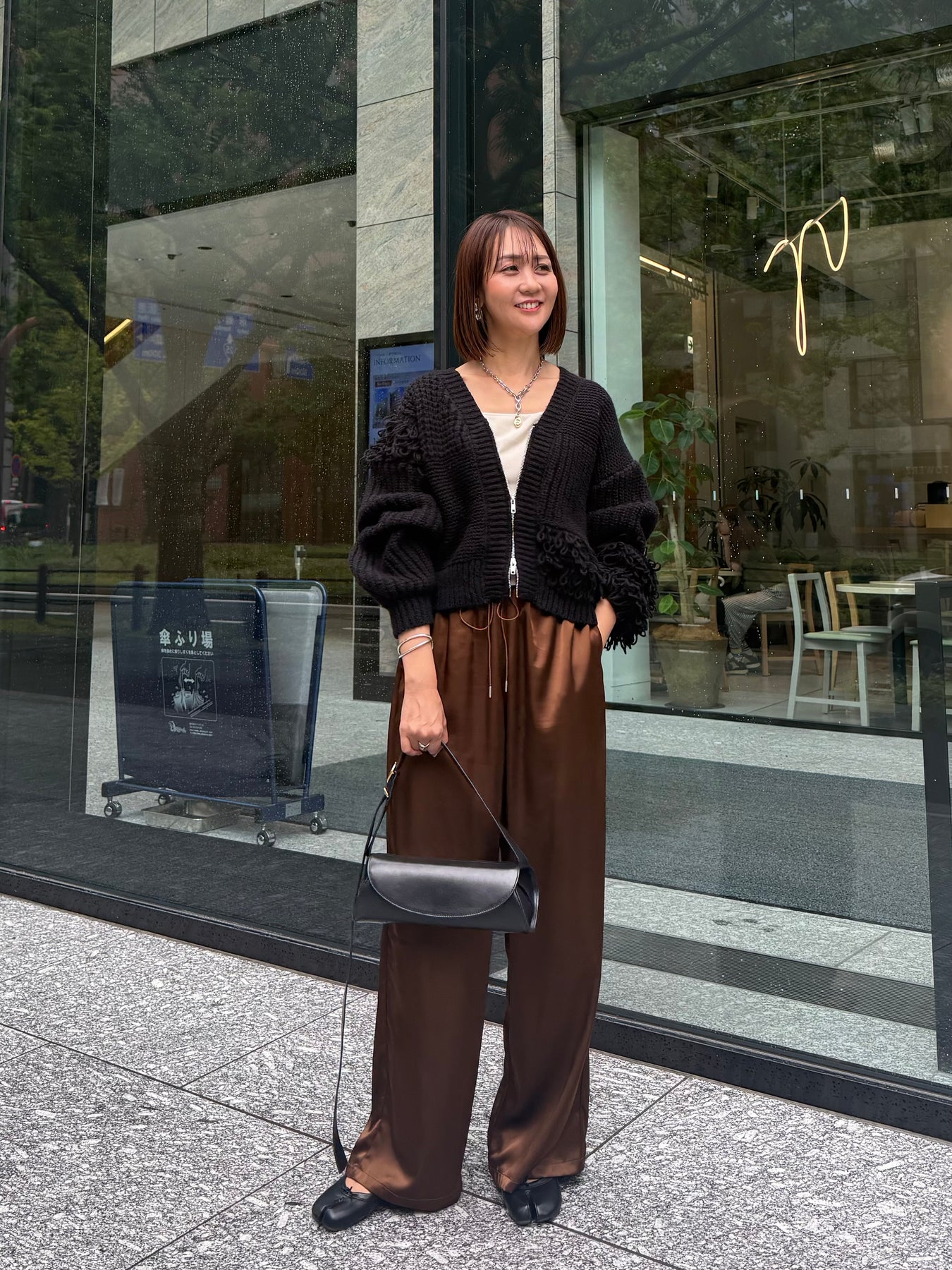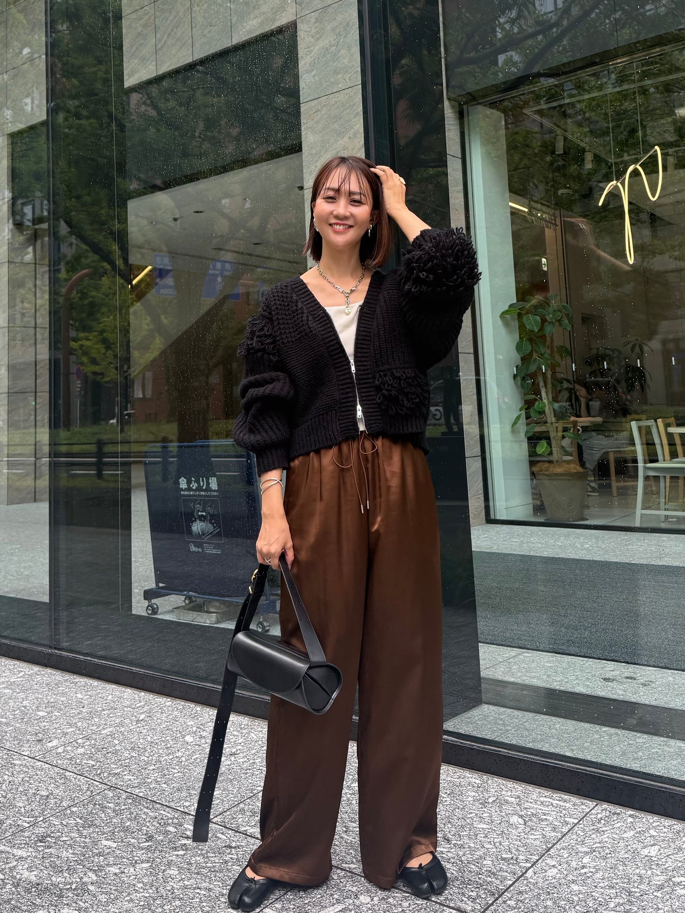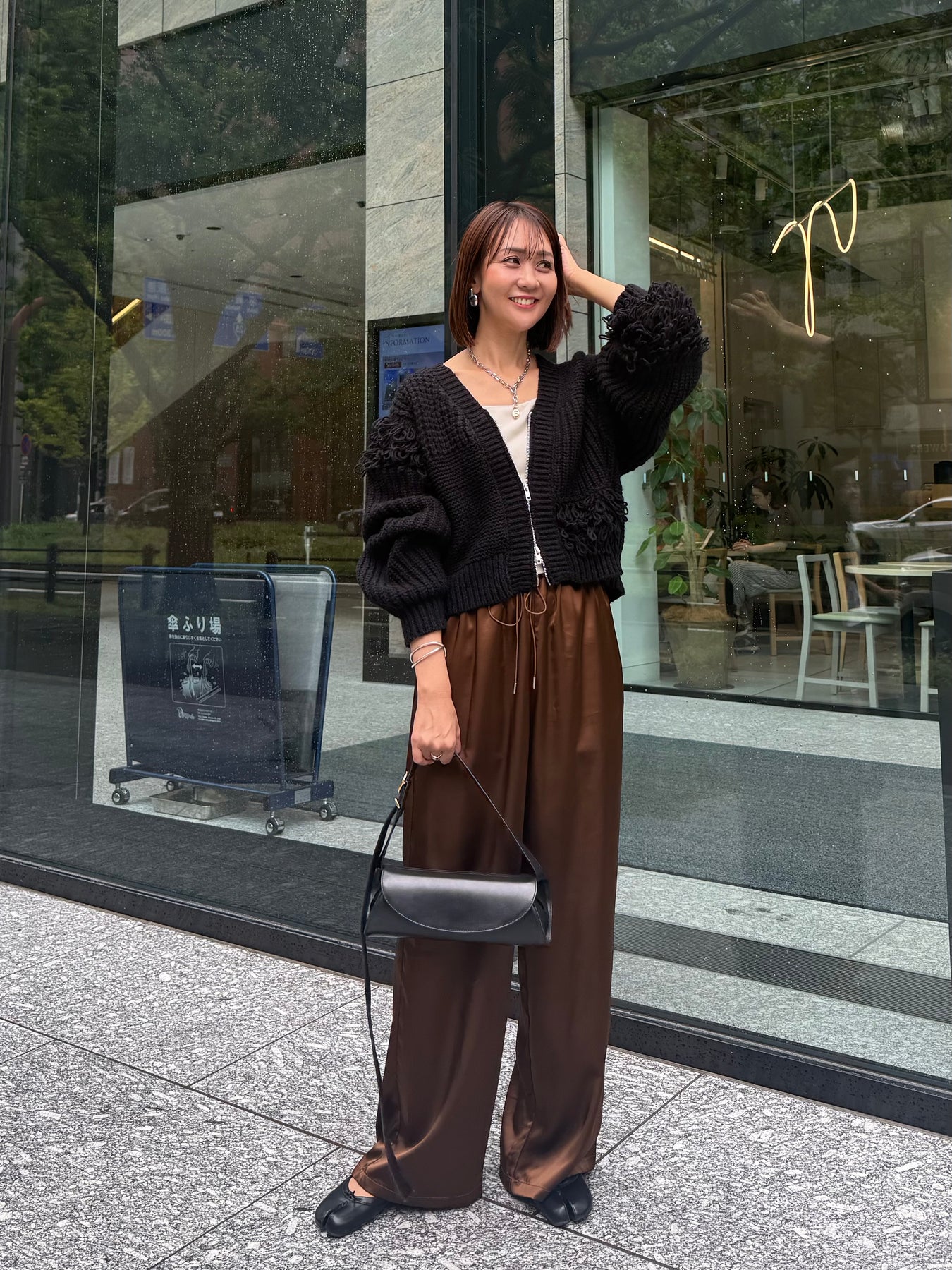 【予約】[SET] フリンジジップカーディガン / ブラック + サテンイージーパンツ / ブラウン(11月下旬発送予定)