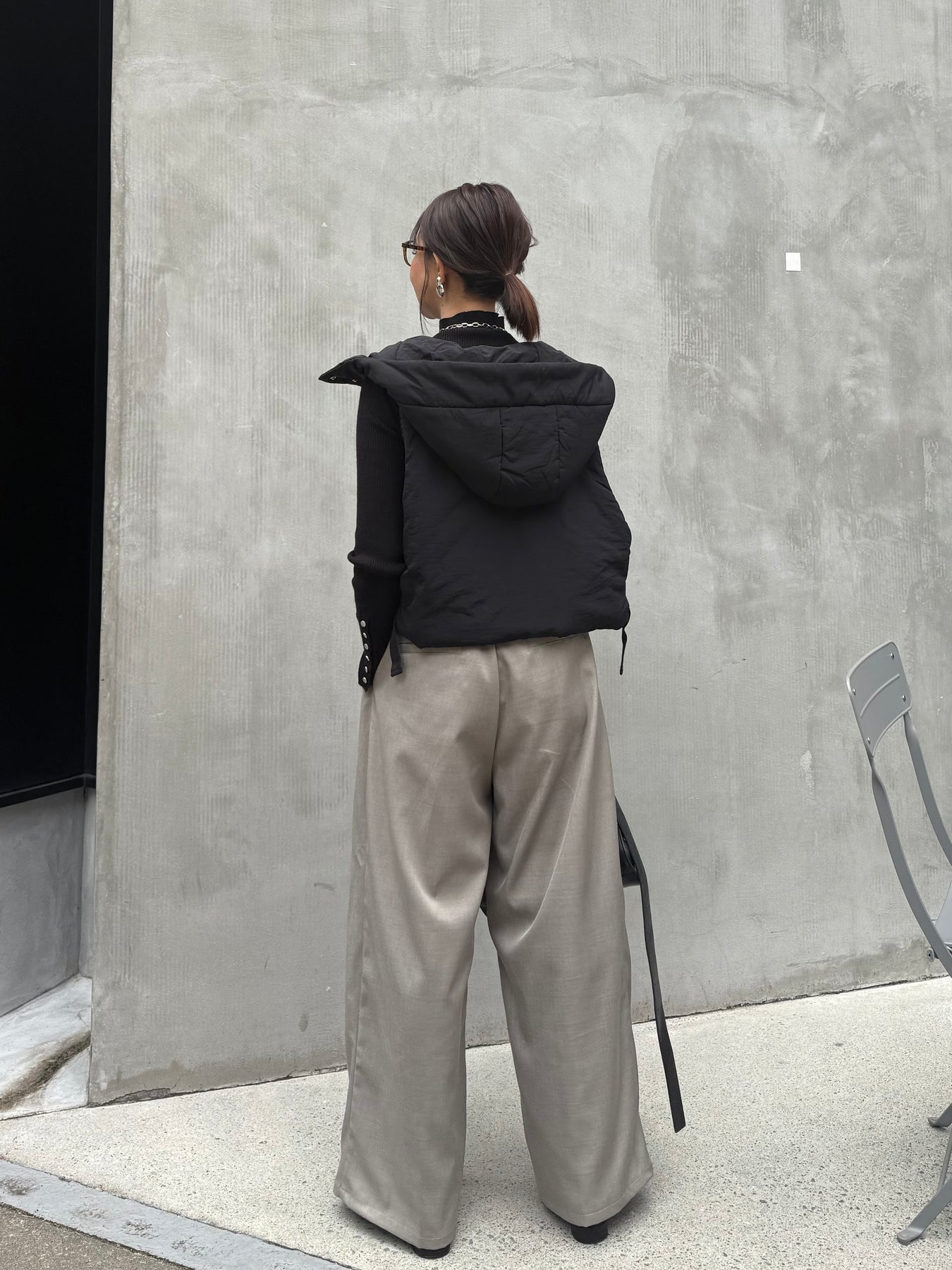 [SET] 中綿フードベスト / ブラック + ツイルタックパンツ / グレージュ