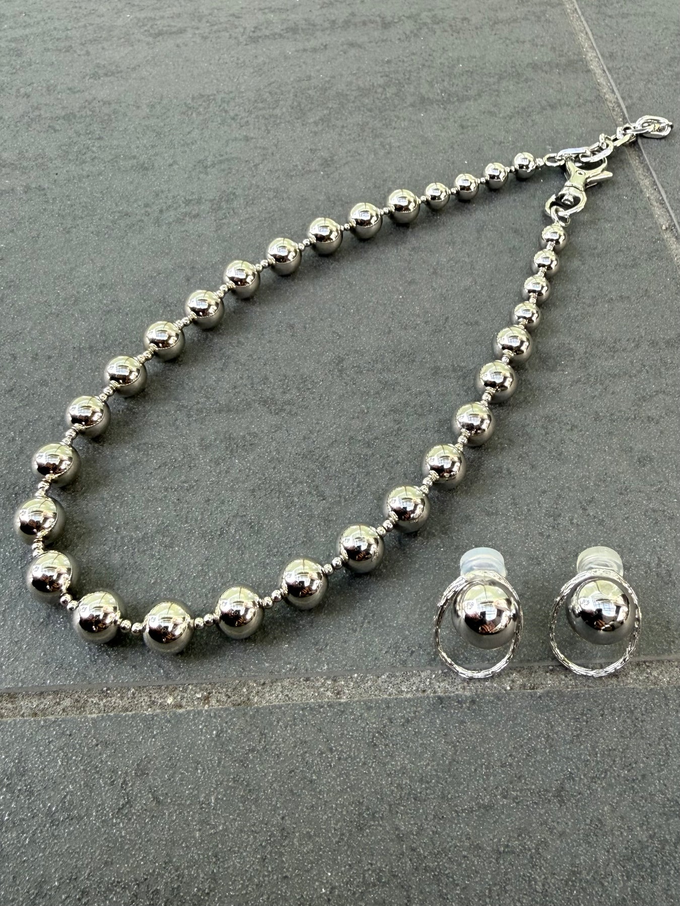 【予約】[SET] ボールピアス・イヤリング  / シルバー + ボールネックレス / シルバー(4月上旬発送予定)
