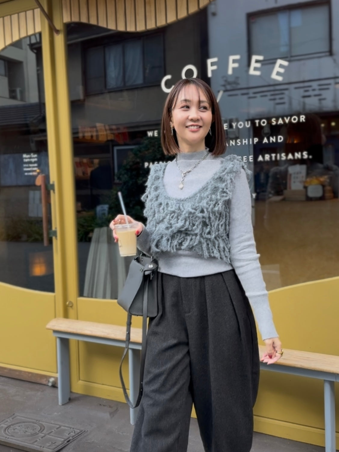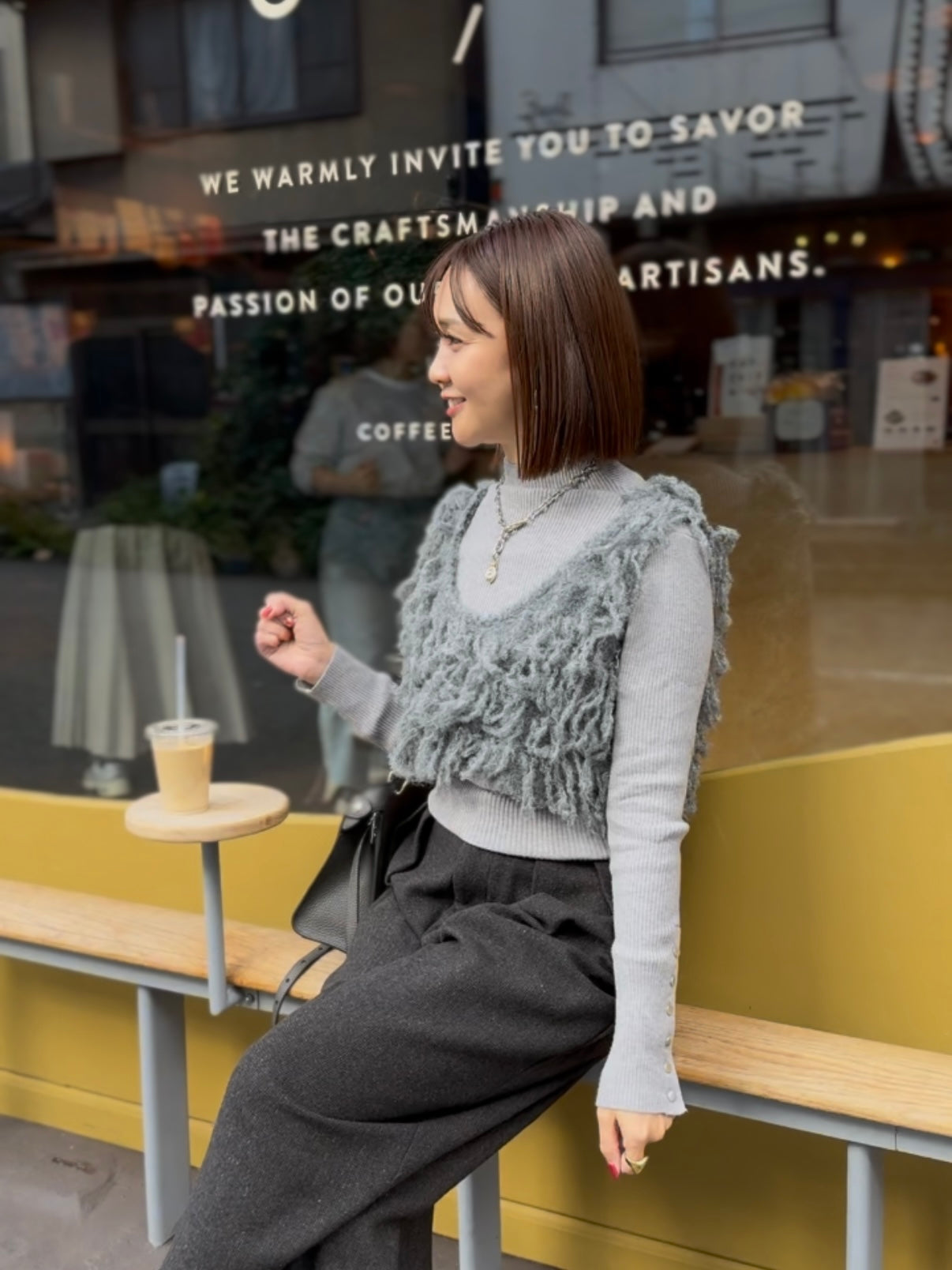 【予約】[SET] フリンジビスチェ / グレー + 袖ボタンハイネックニット / グレー(1月上旬発送予定)