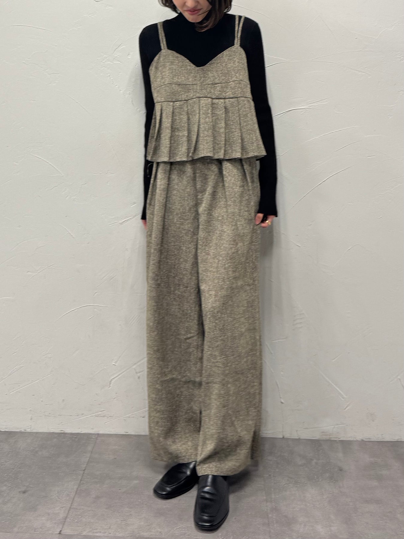 【予約】[SET]サマーツイードプリーツキャミ / ブラウン + サマーツイードタックパンツ / ブラウン(3月下旬発送予定)
