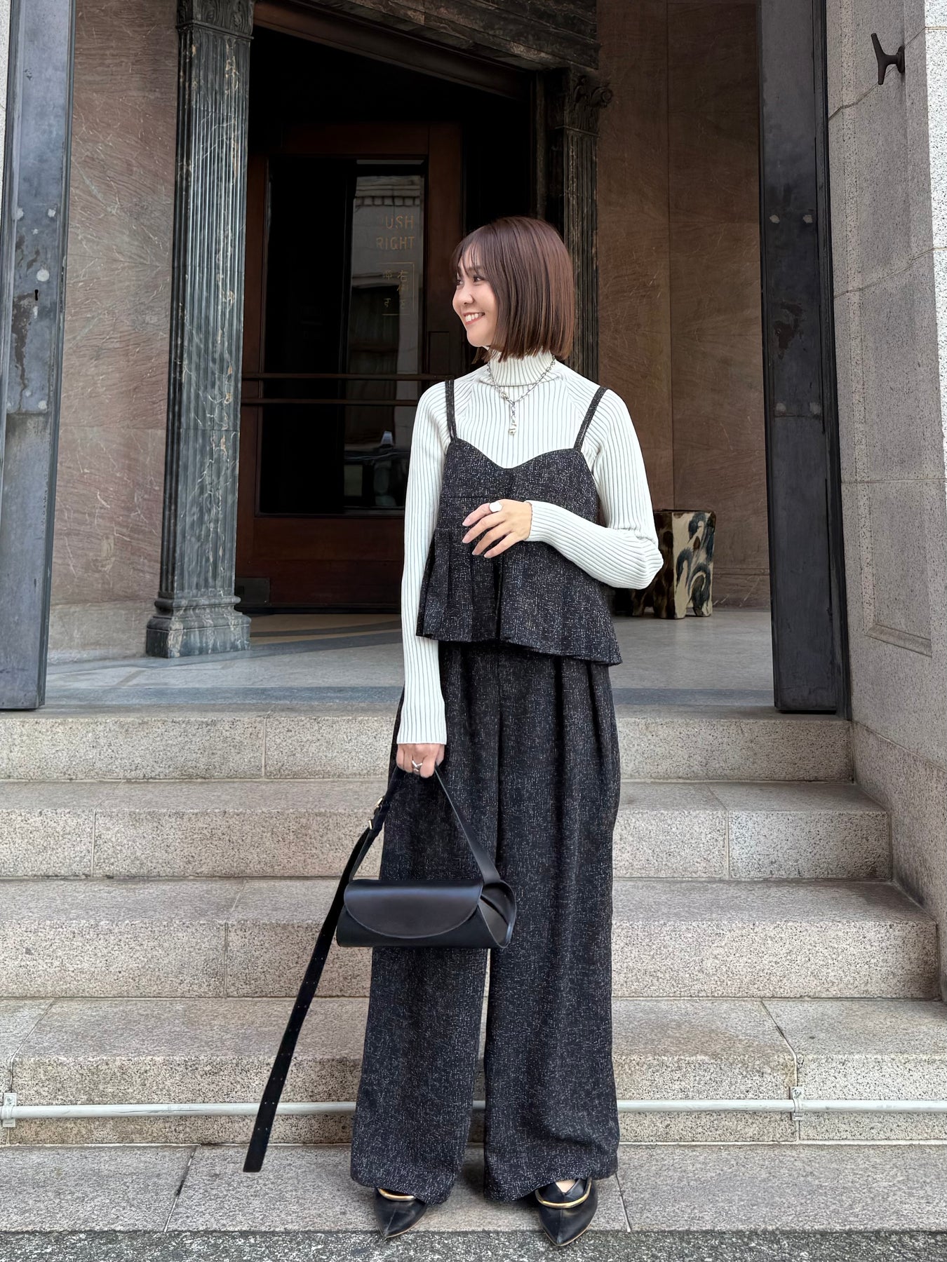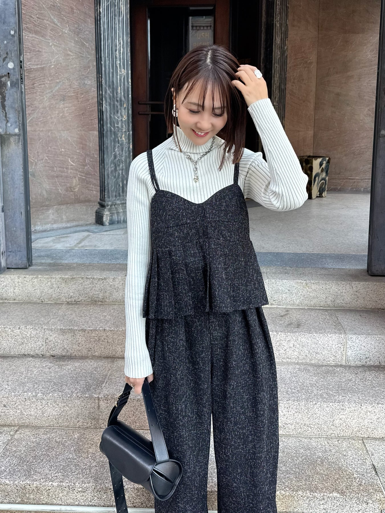 【予約】[SET] サマーツイードプリーツキャミ / ブラック + サマーツイードタックパンツ / ブラック(2月中旬頃発送予定)
