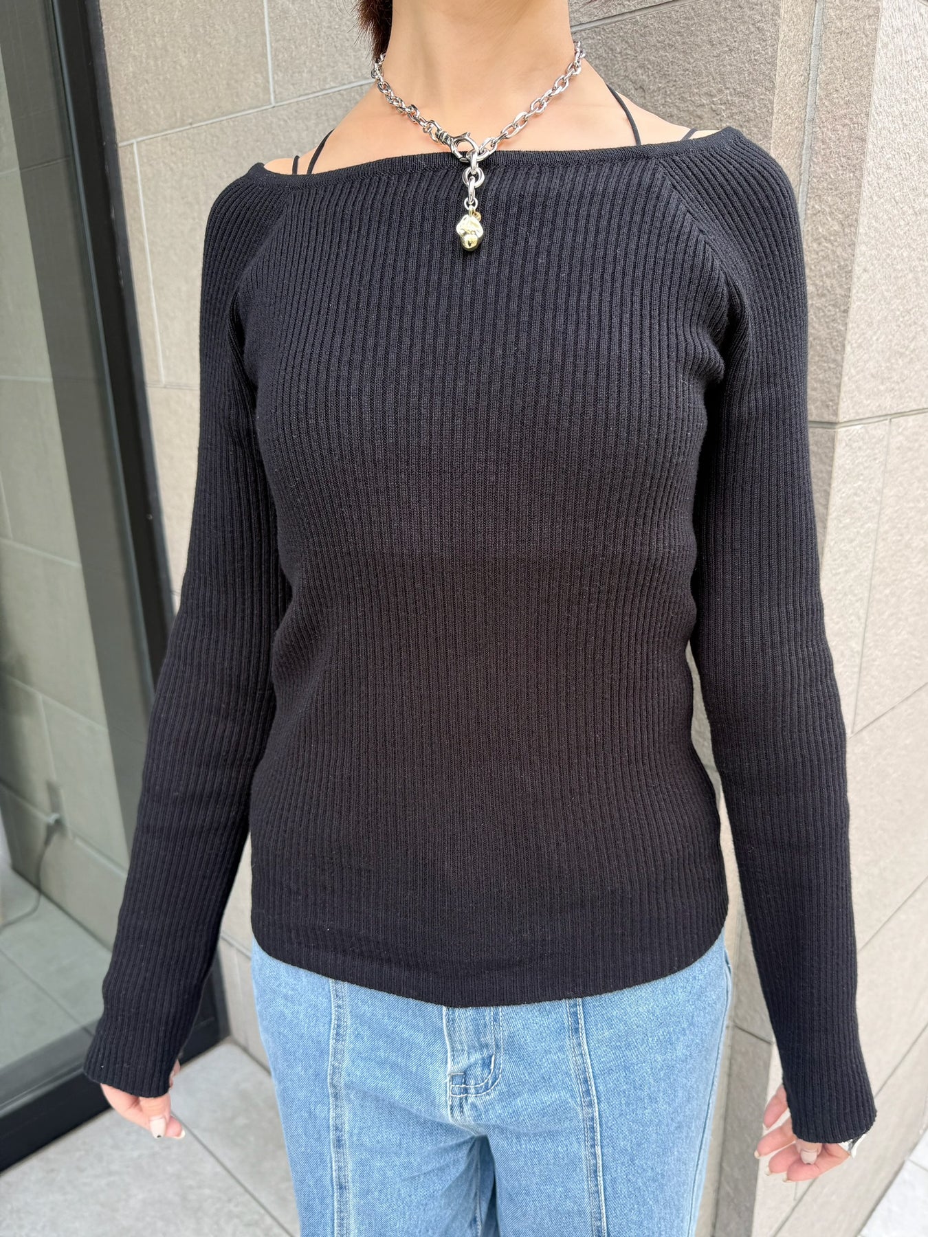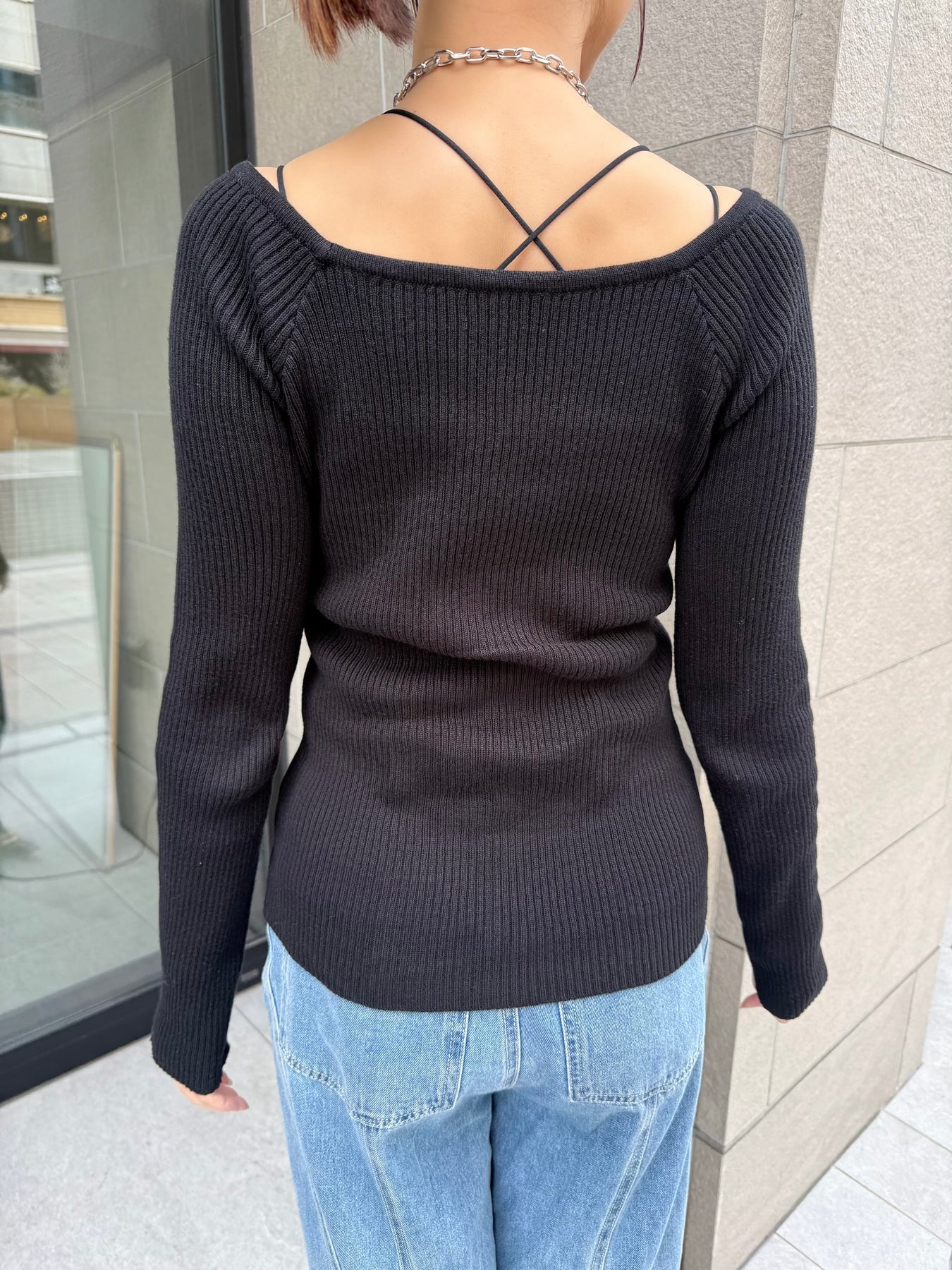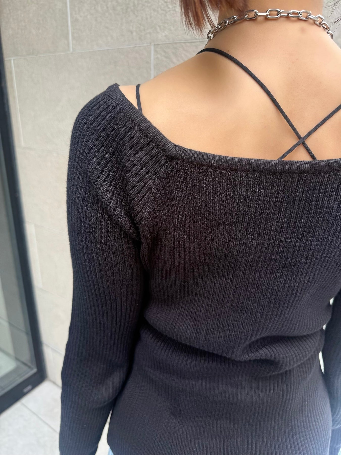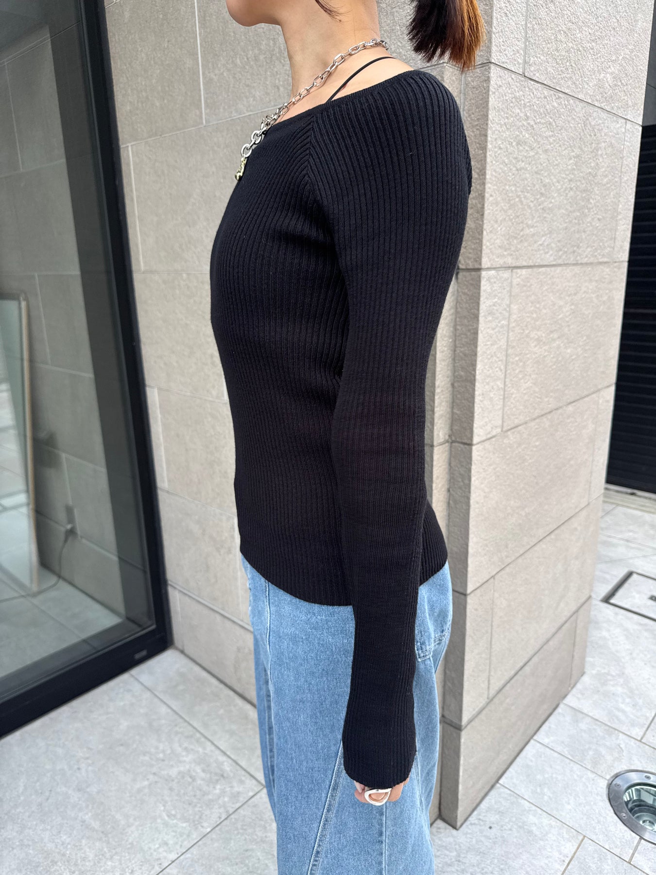 スクエアネックリブニットプルオーバー / ブラック