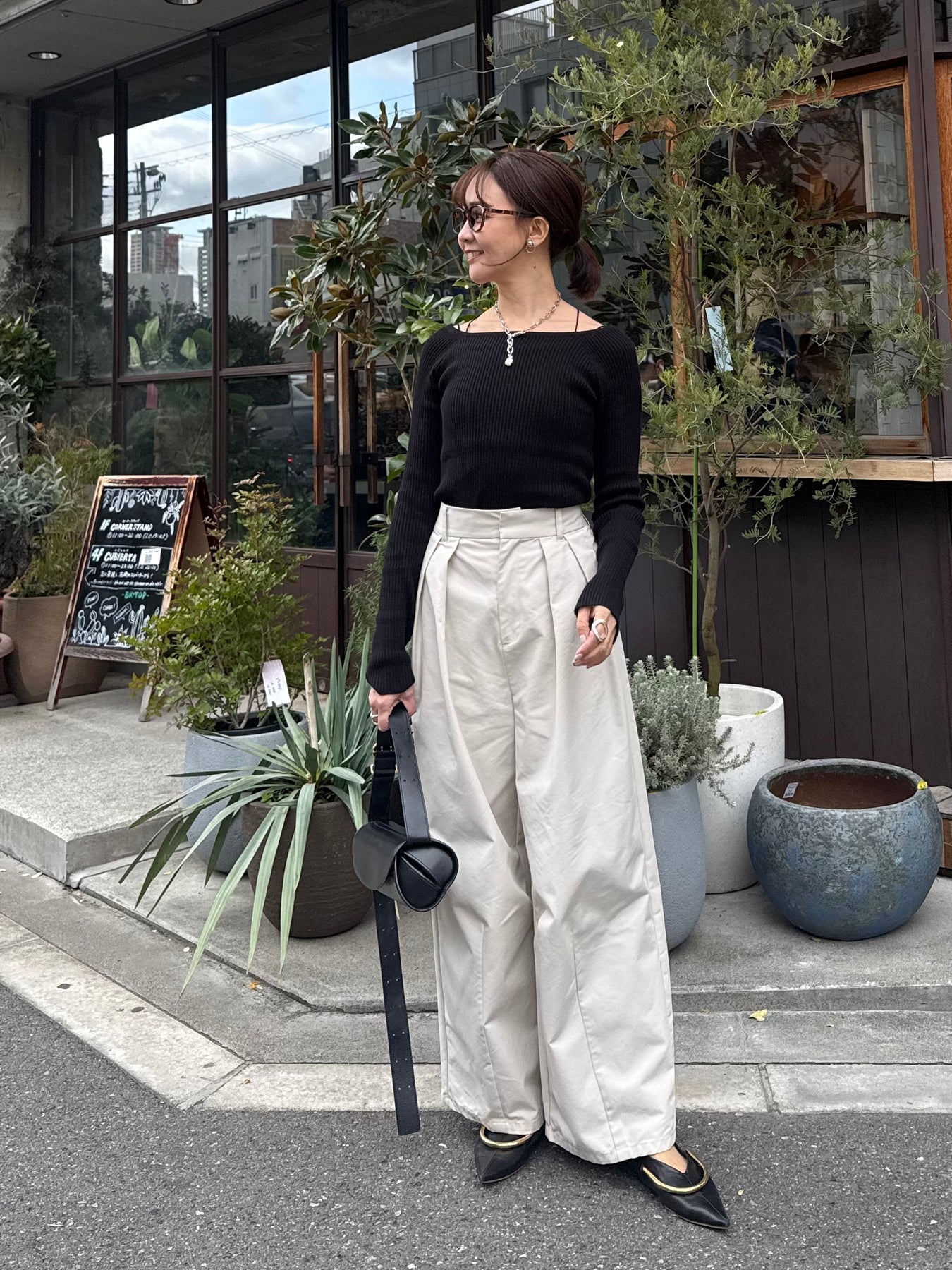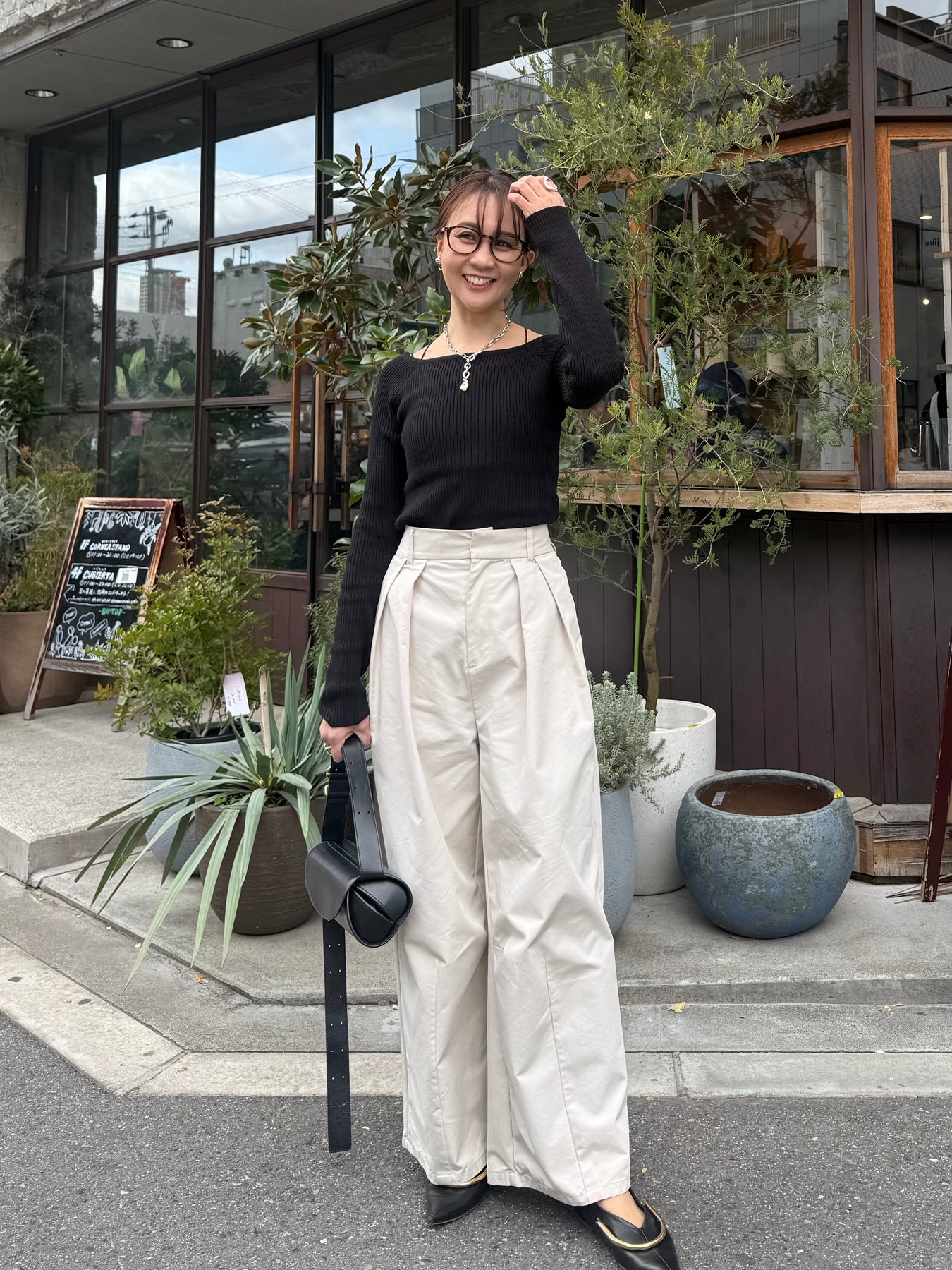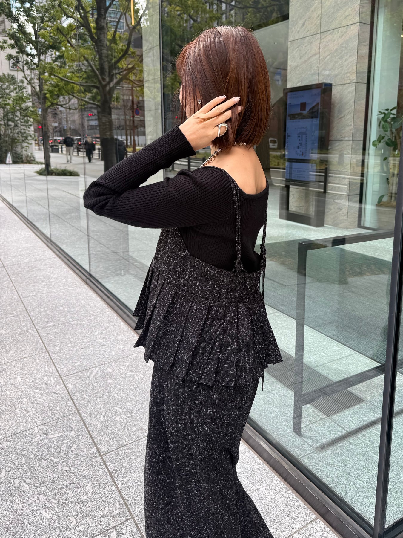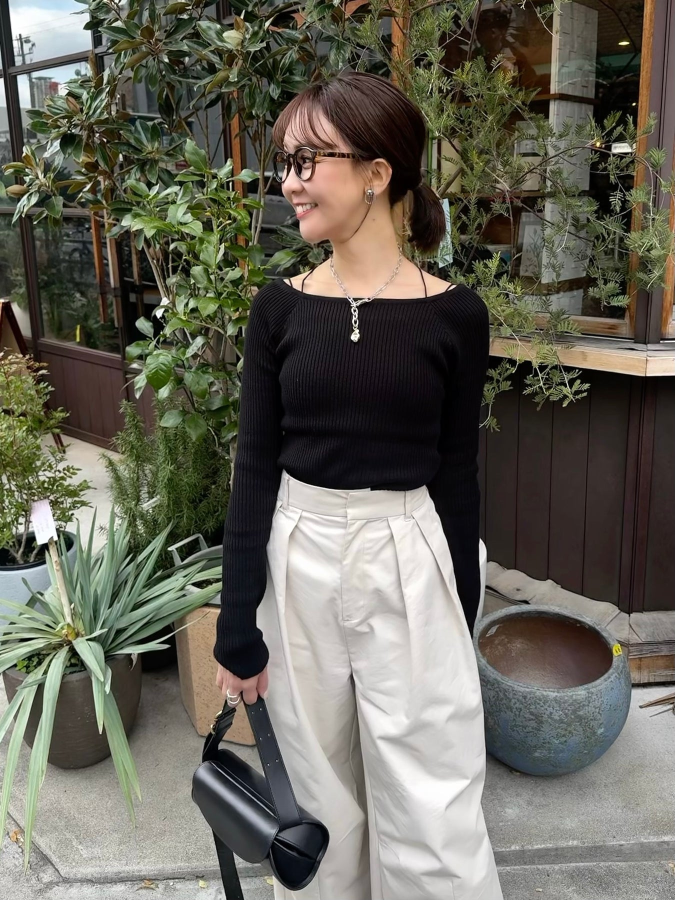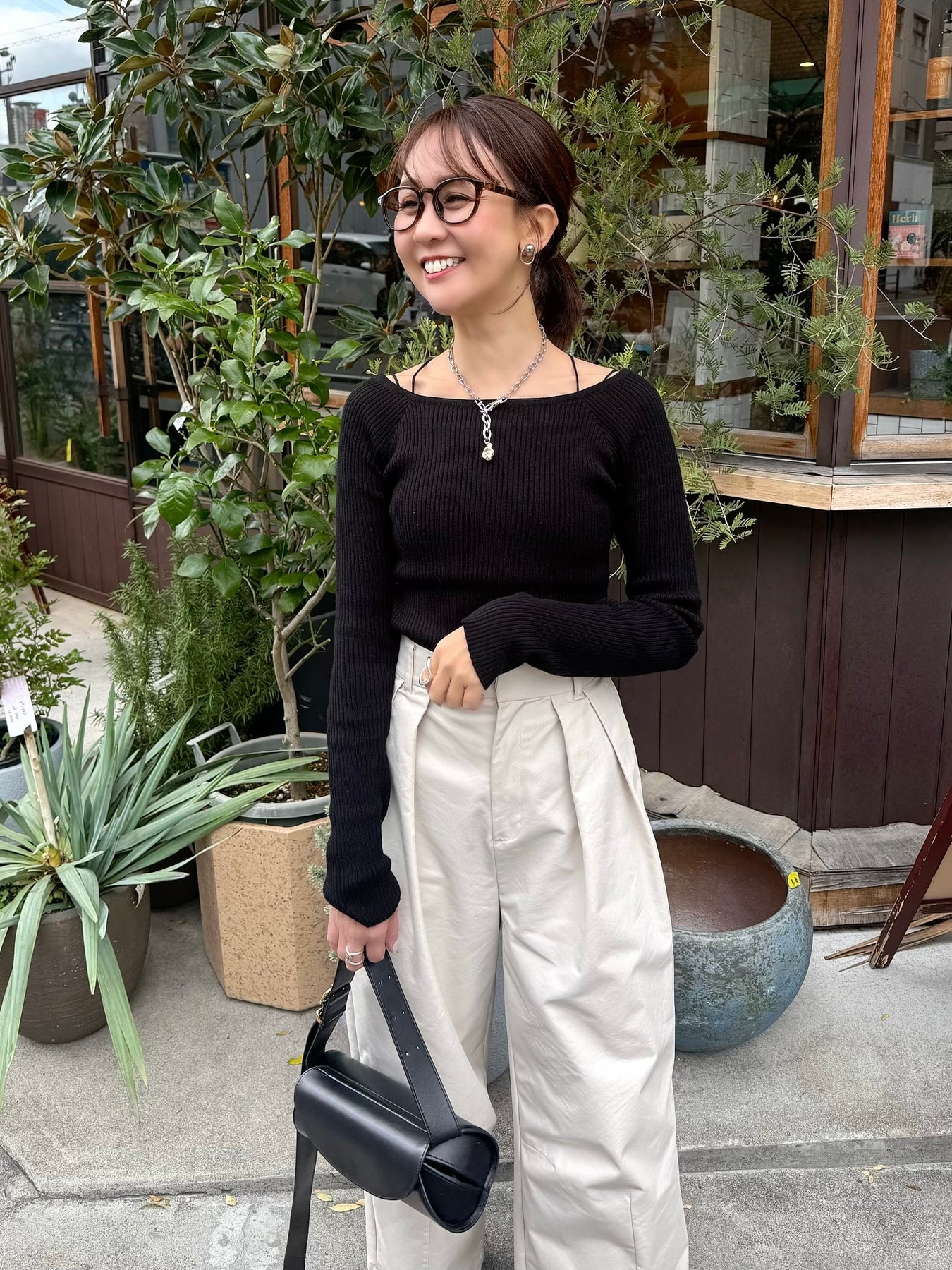スクエアネックリブニットプルオーバー / ブラック